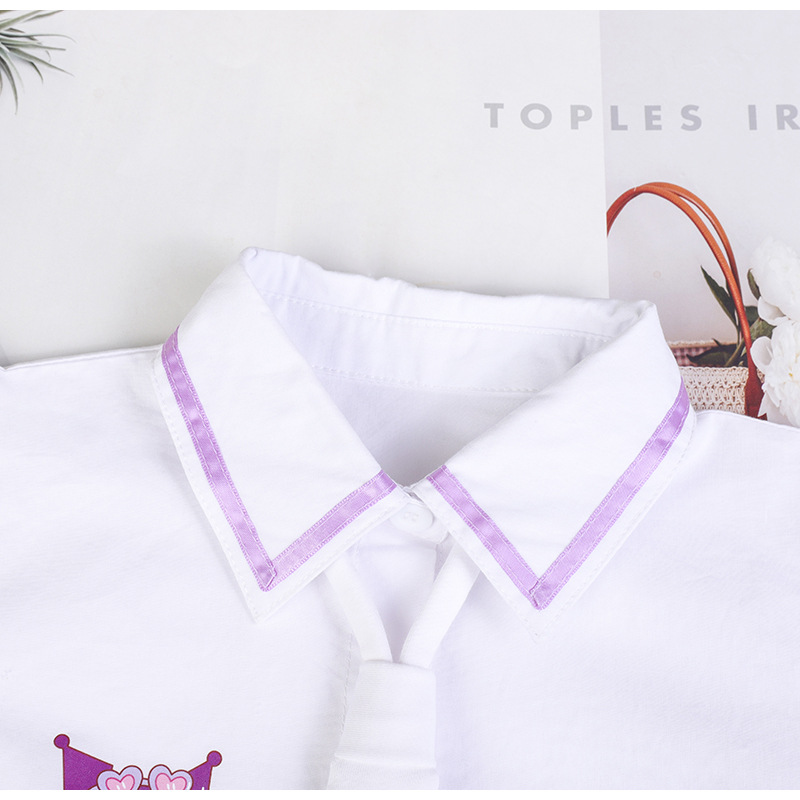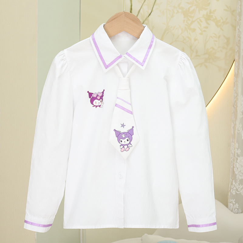 2024 년 새 가을 캐주얼 코튼 긴팔 화이트 셔츠 소녀 옷깃 탑 스타일라인 한국식 어린이 올매치 셔츠 트렌디스토어 가기