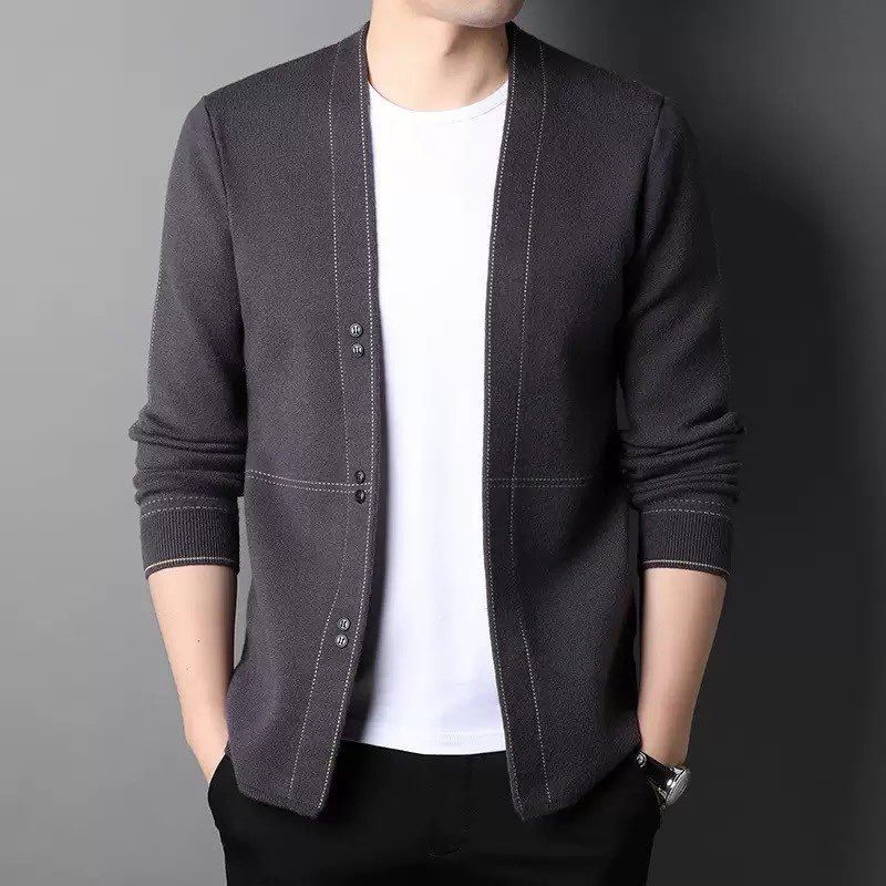 2024 봄과 가을 새로운 남자 니트 카디건 느슨한 캐주얼 겉옷 버클 올 매치 남자 스웨터 재킷