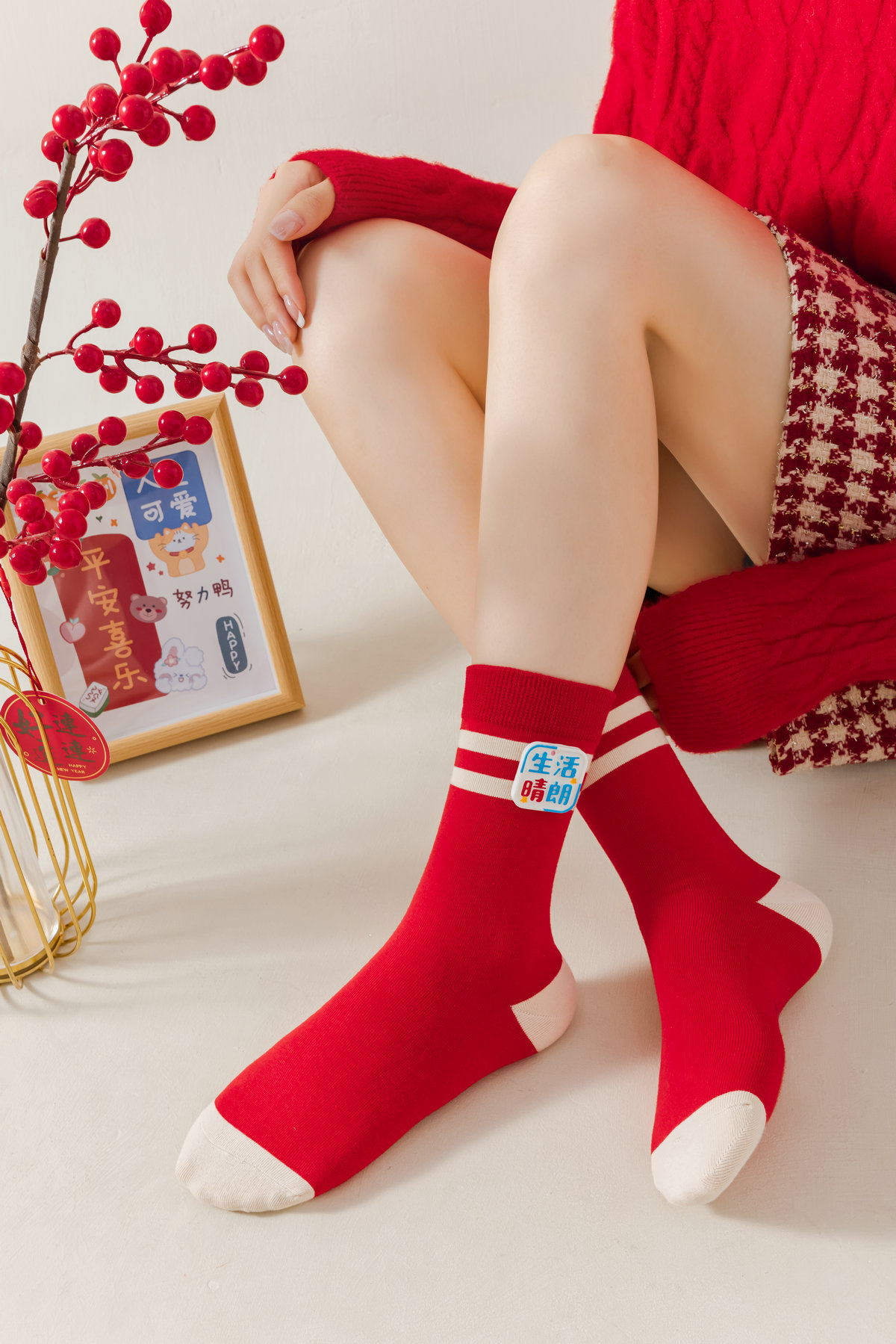 7A 항균 및 항 냄새 양말 뱀 남자와 여자의 중간 크기 양말 큰 빨간 양말 결혼식 설날 코튼 설날스토어 가기