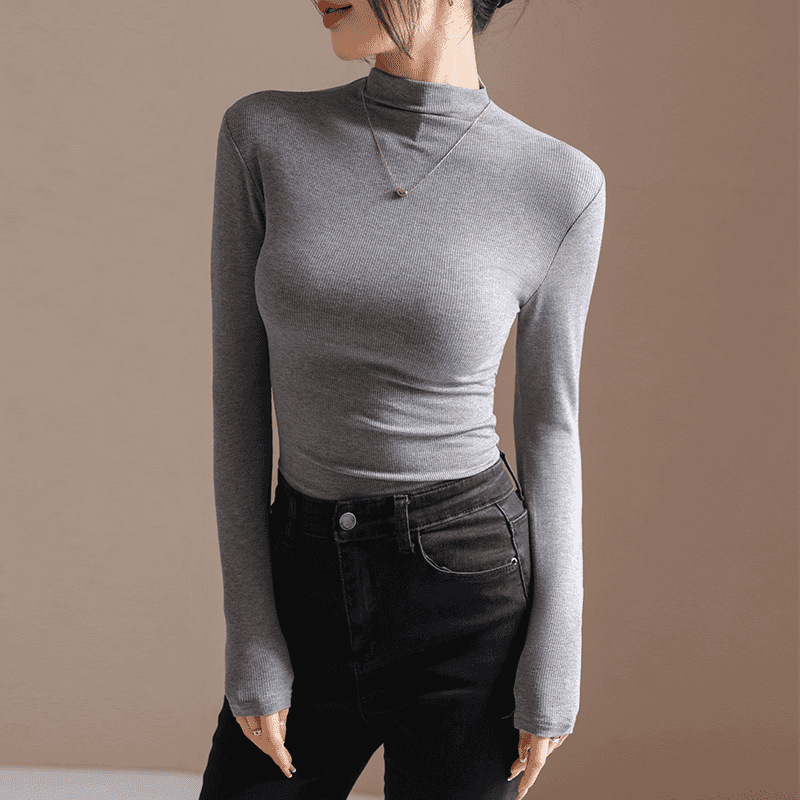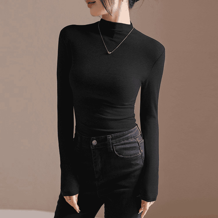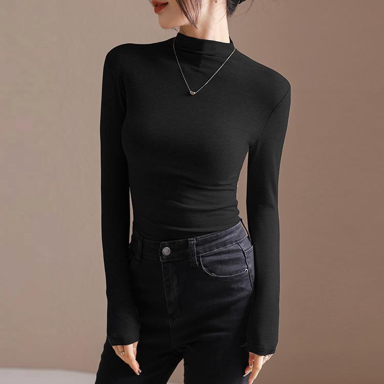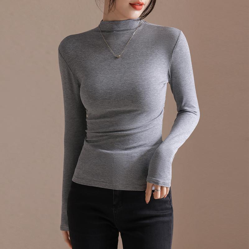하프 하이 칼라 디자인 주름 서양식 긴팔 여성용 티셔츠 가을과 겨울 새로운 슬림 핏 벨벳 내베이스 셔츠 탑스토어 가기