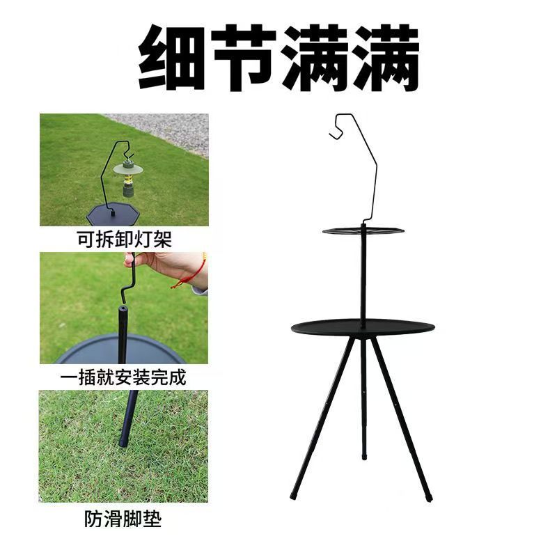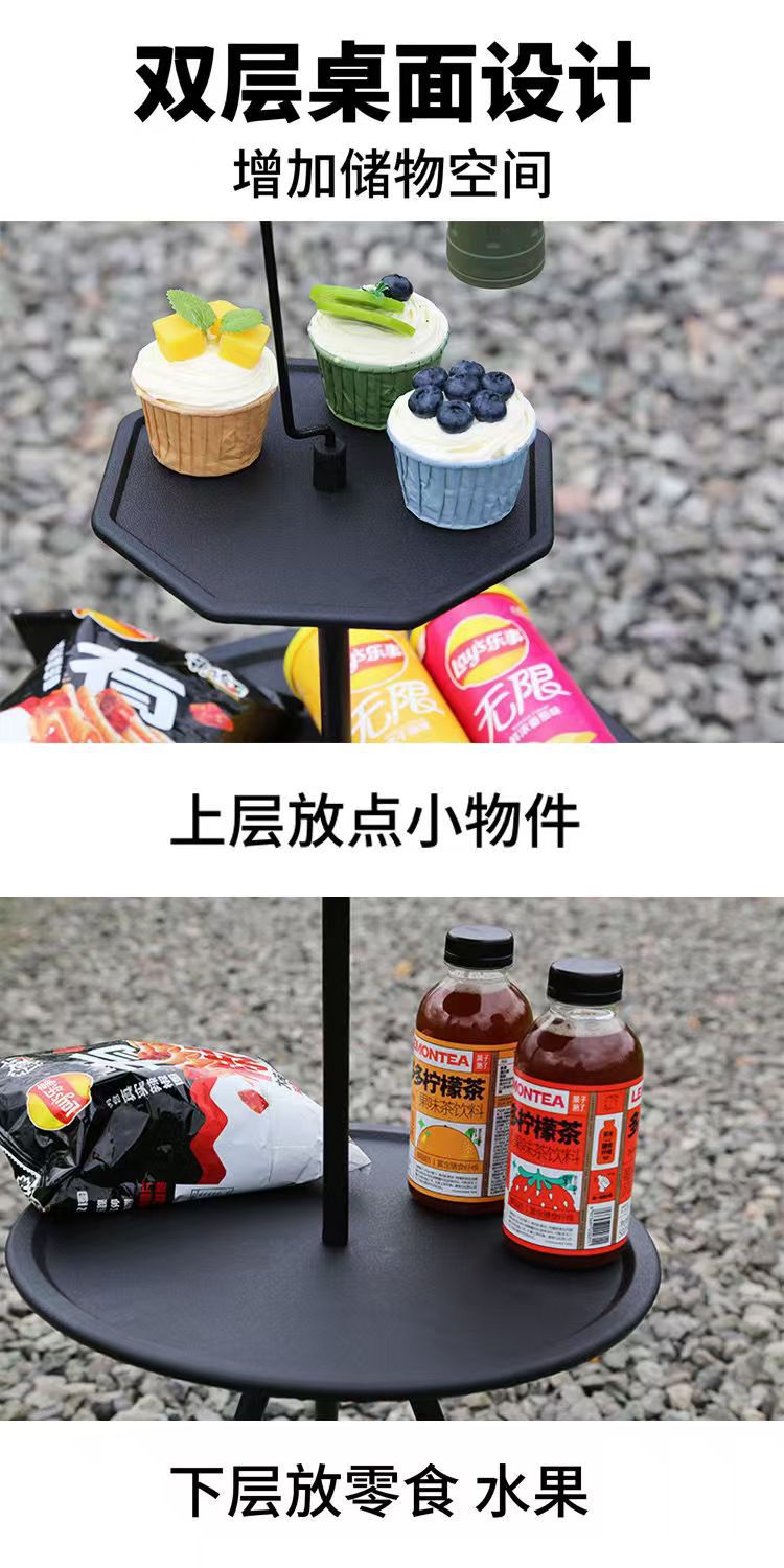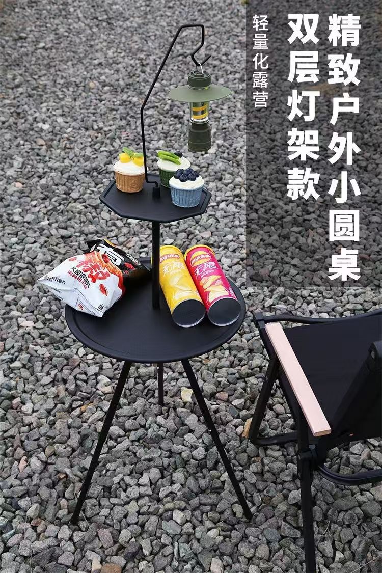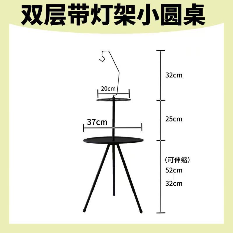 야외 접이식 캠핑 테이블 휴대용 작은 라운드 테이블 피크닉 캠핑 장비 커피 테이블 더블 레이어 리프팅 라이트 랙