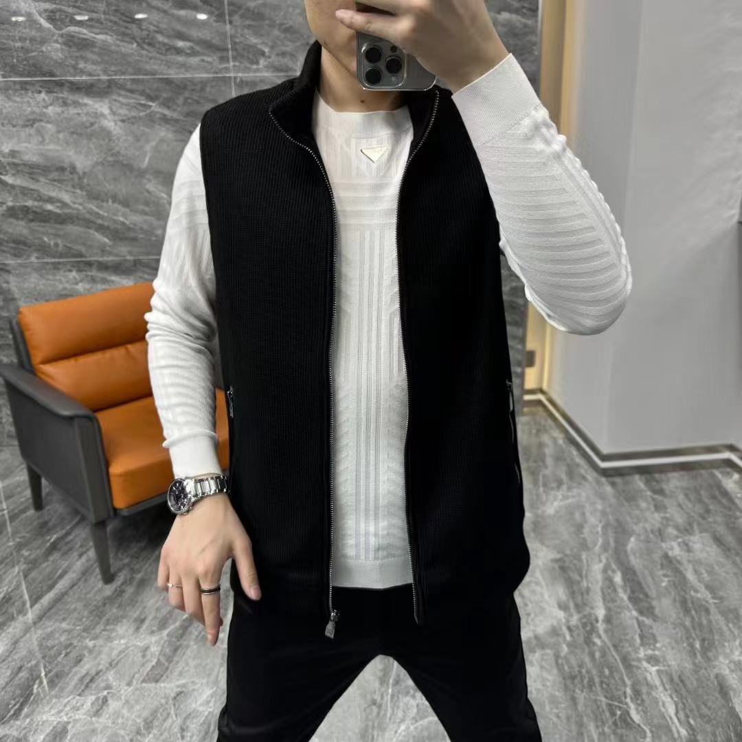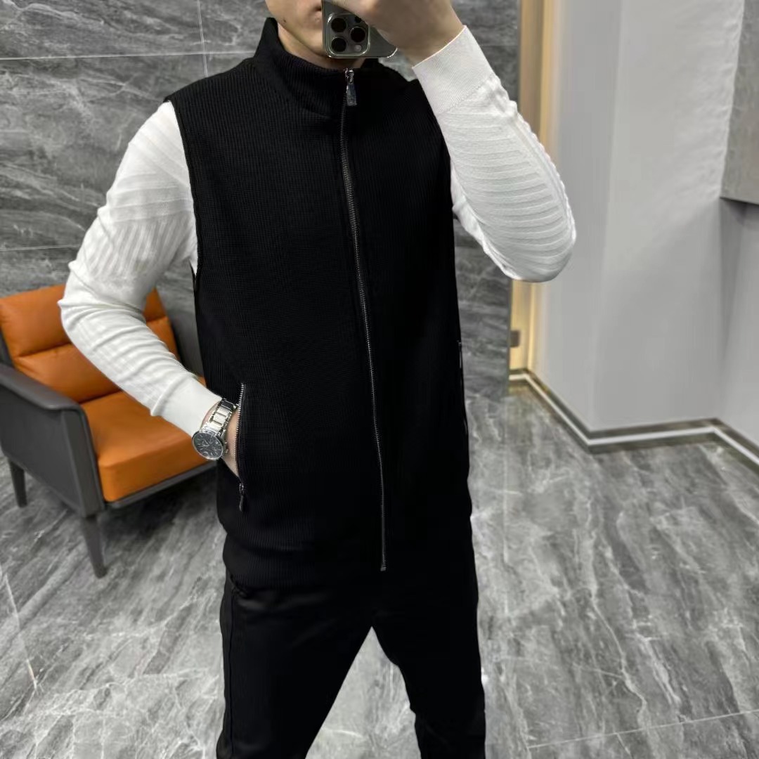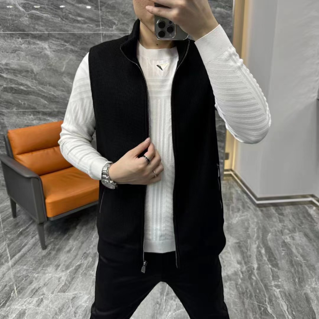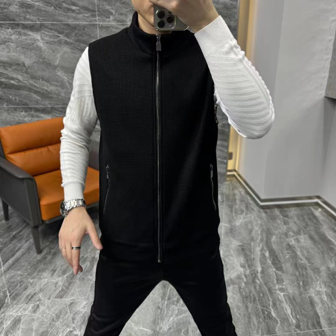 66229 가을과 겨울 새로운 남자 수직 칼라 니트 조끼 어깨 허리 코트 패션 하이 엔드 올 매치 간단한 핸섬 트렌디스토어 가기
