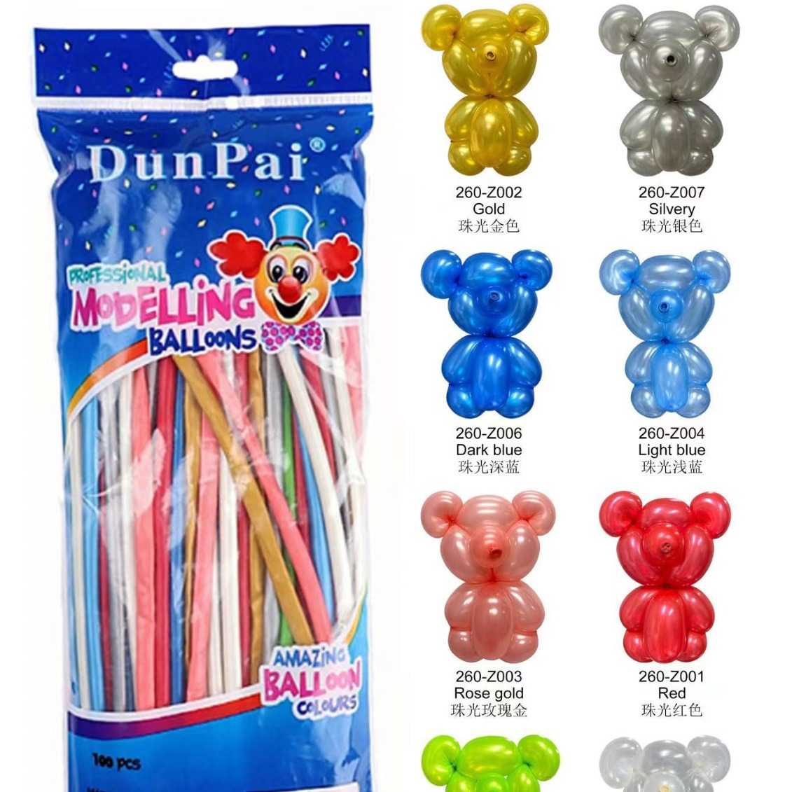 둔파이 방패 마술 풍선 260 진주빛 마카롱 메탈릭 컬러 어린이 장난감 뜨개질 긴 풍선스토어 가기