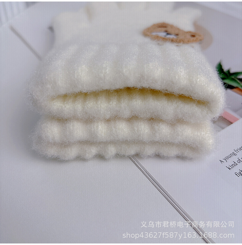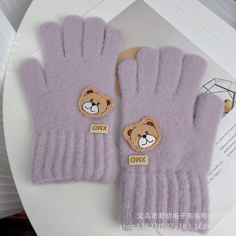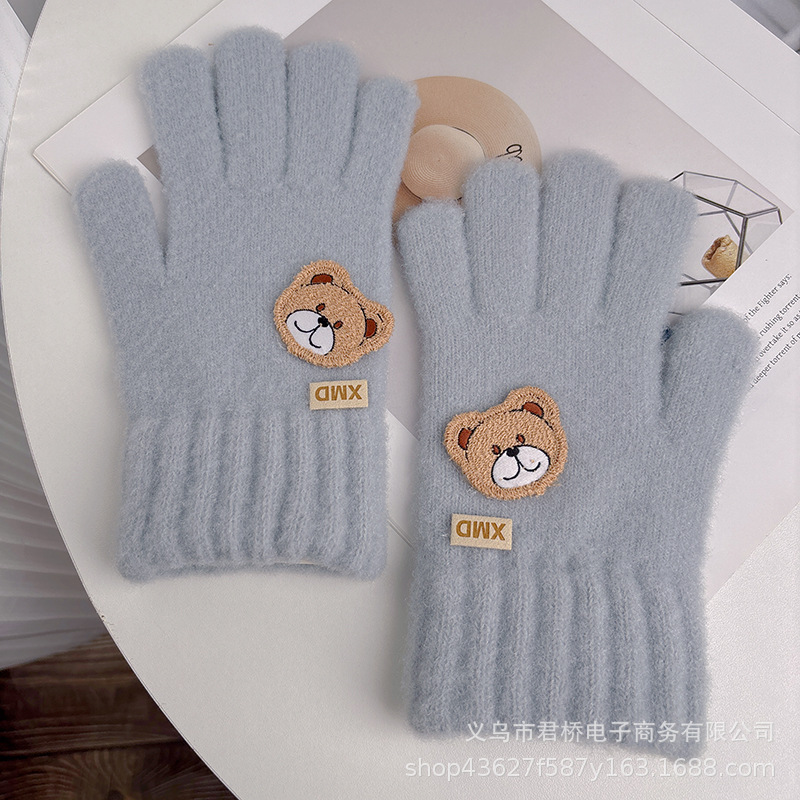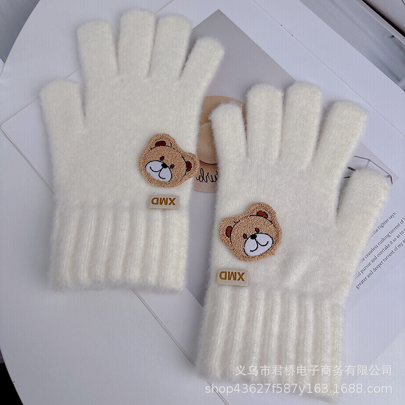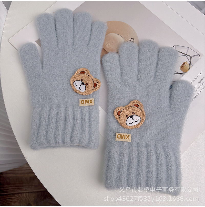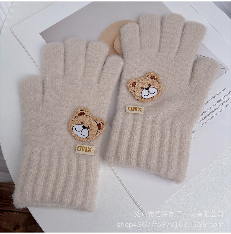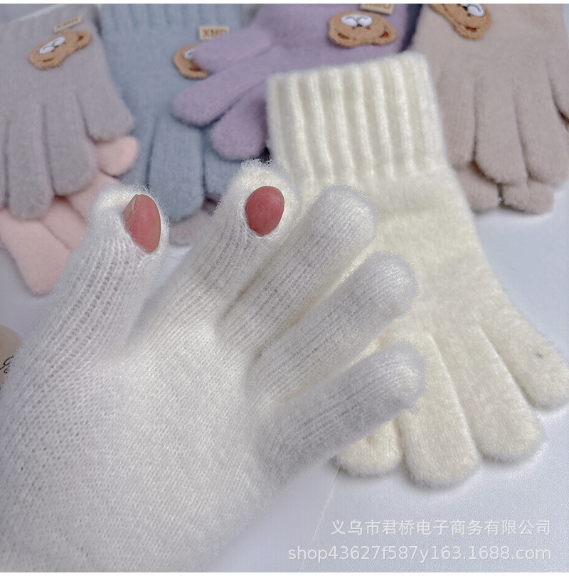 다섯 손가락 장갑 여성의 가을과 겨울 사이클링 따뜻한 니트 두꺼운 손가락 학생 귀여운 만화 곰 터치 스크린