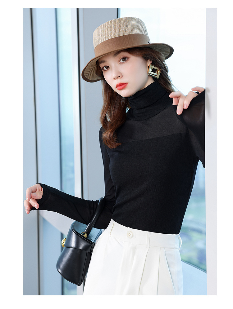 이른 가을 메쉬베이스 셔츠 최고의 여성의 가을과 겨울 새로운 반쪽 높은 칼라 슬림-안쪽 긴팔 티셔츠 작은 셔츠