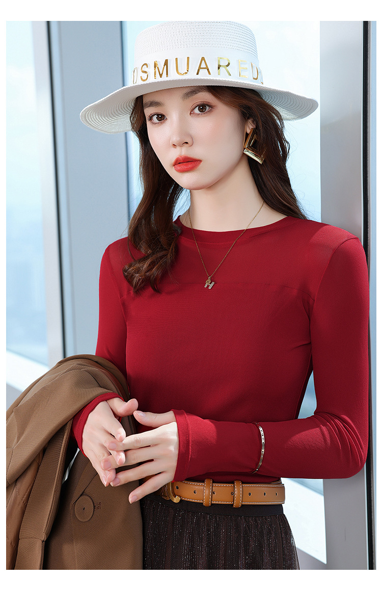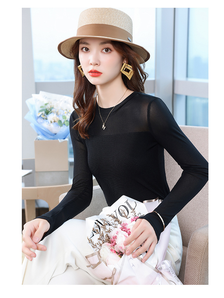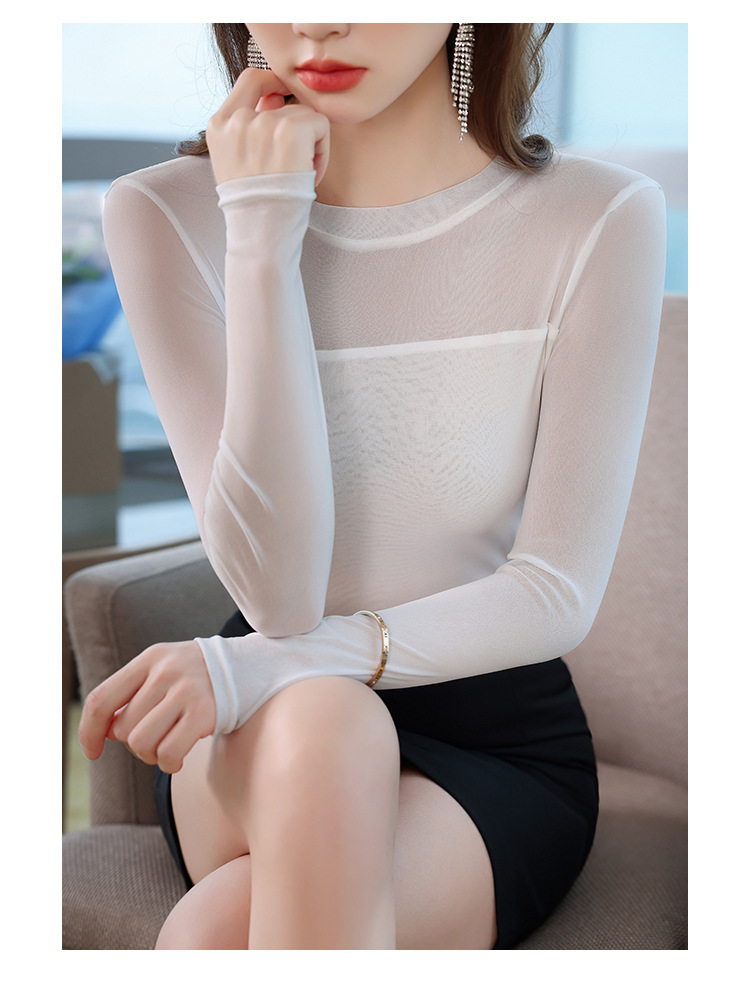 이른 가을 메쉬베이스 셔츠 최고의 여성의 가을과 겨울 새로운 반쪽 높은 칼라 슬림-안쪽 긴팔 티셔츠 작은 셔츠스토어 가기