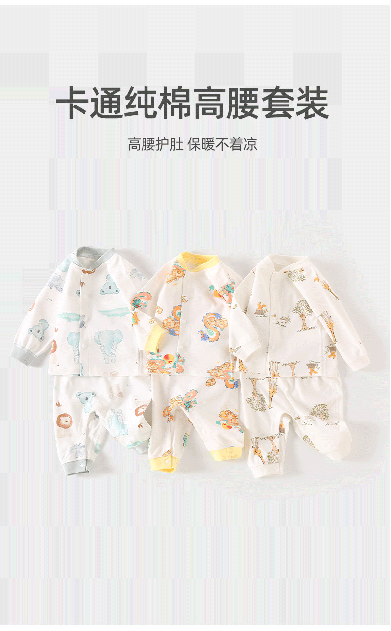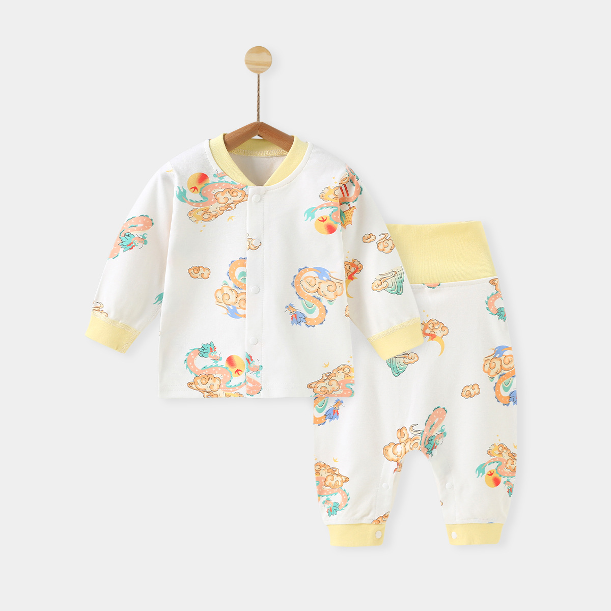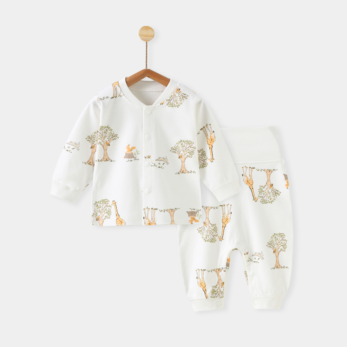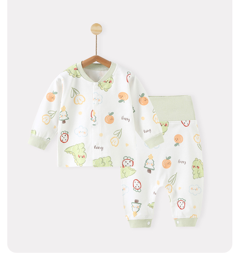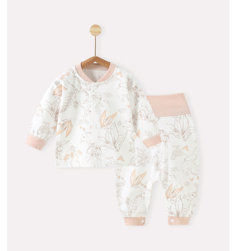 아기의 가을 옷과 바지 면화 높은 허리 분할 아기 속옷 세트 배꼽 보호 기본 어린이 따뜻한 카디건 잠옷
