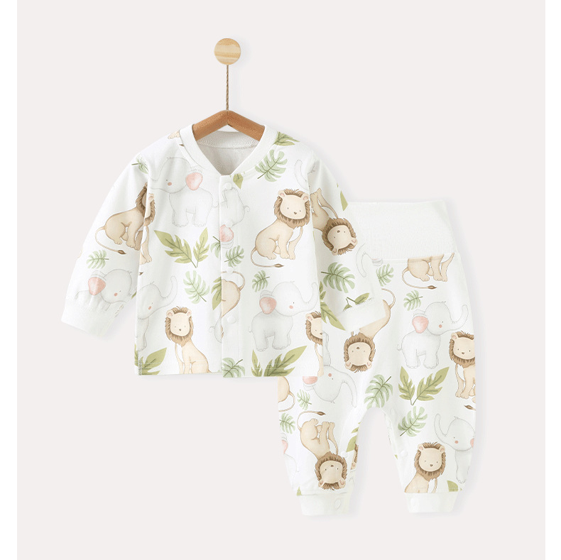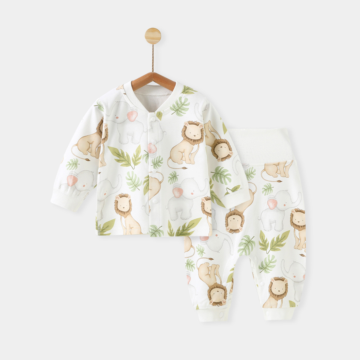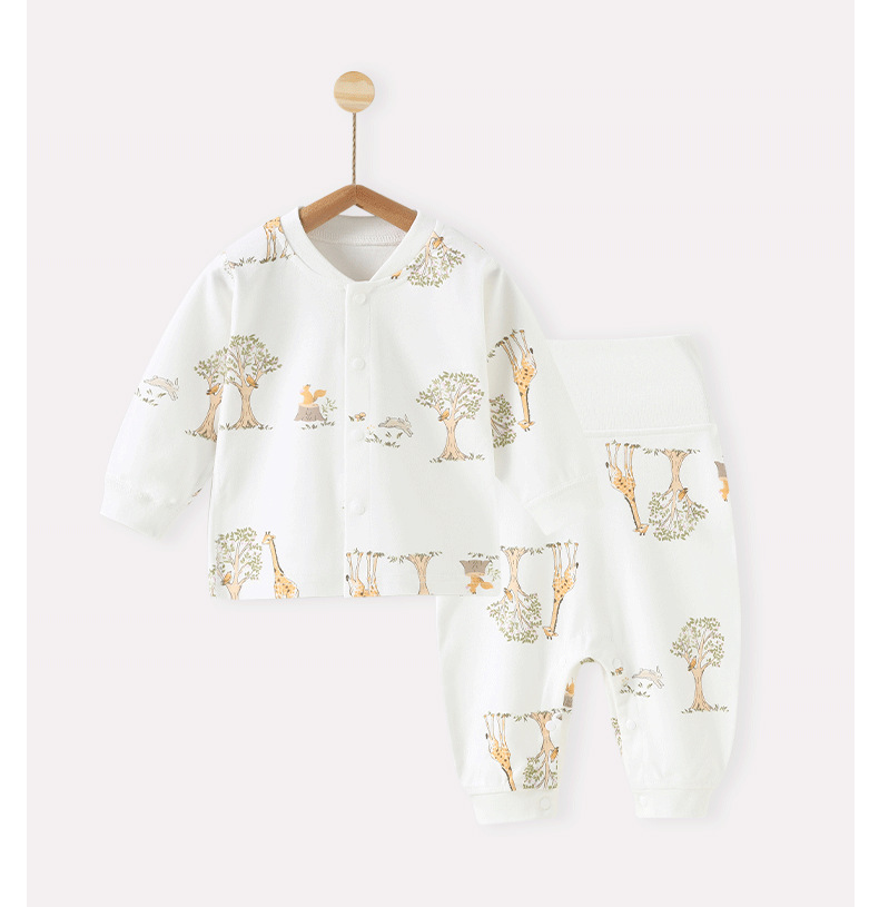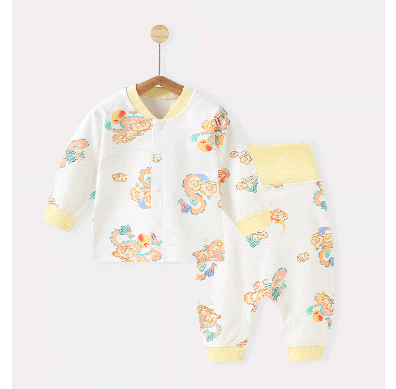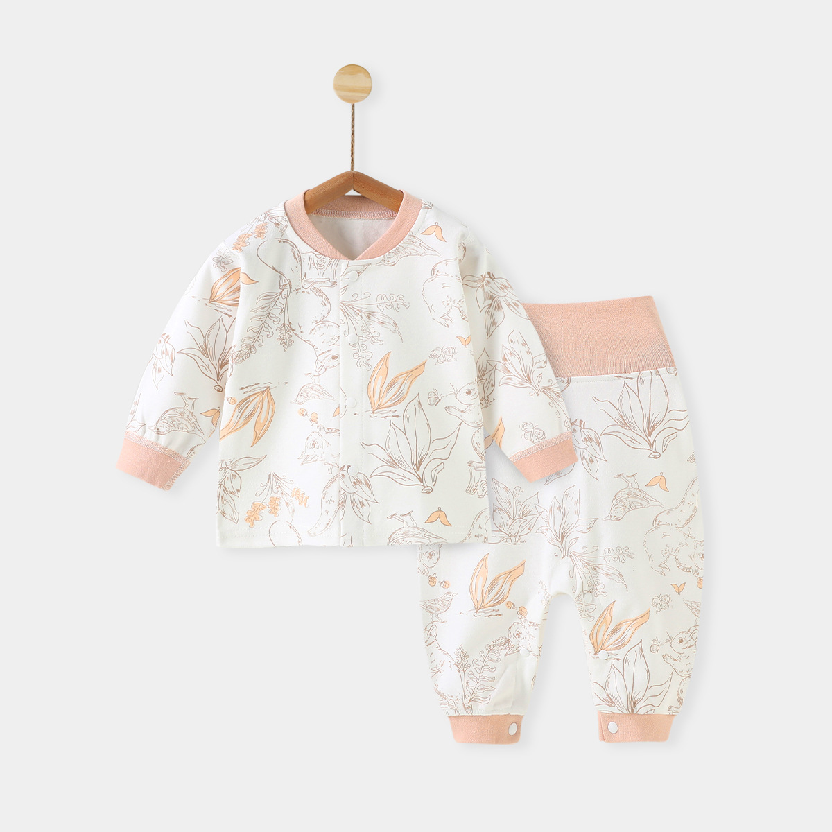 아기의 가을 옷과 바지 면화 높은 허리 분할 아기 속옷 세트 배꼽 보호 기본 어린이 따뜻한 카디건 잠옷
