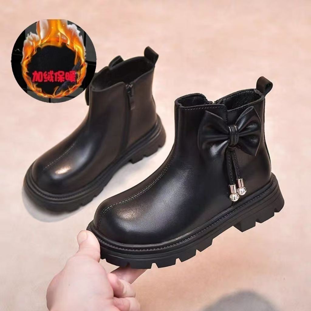 여아용 세련된 신발, 아동용 마틴 부츠, 2025년 신상 가을 겨울 모델, 중대형 어린이용 여아 가죽 부츠, 블랙 숏부츠, 트렌디스토어 가기