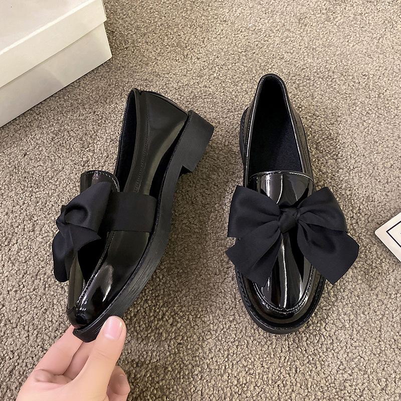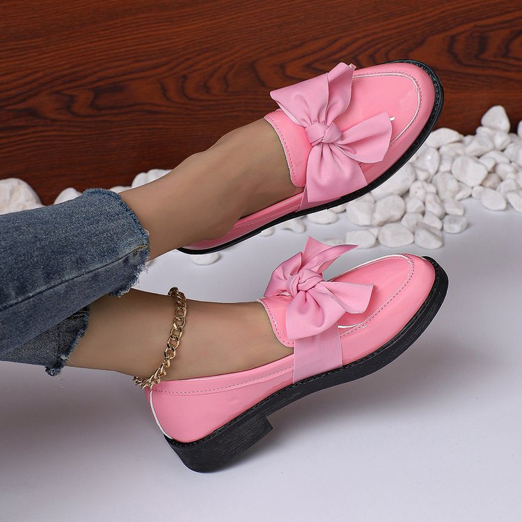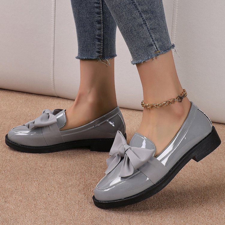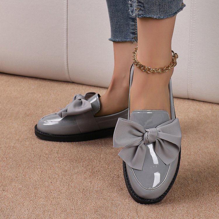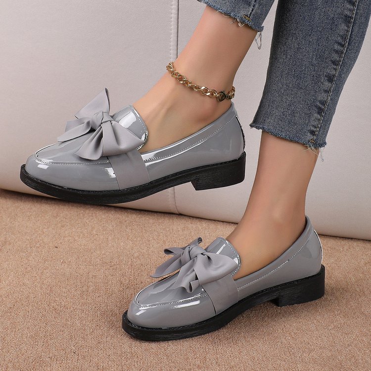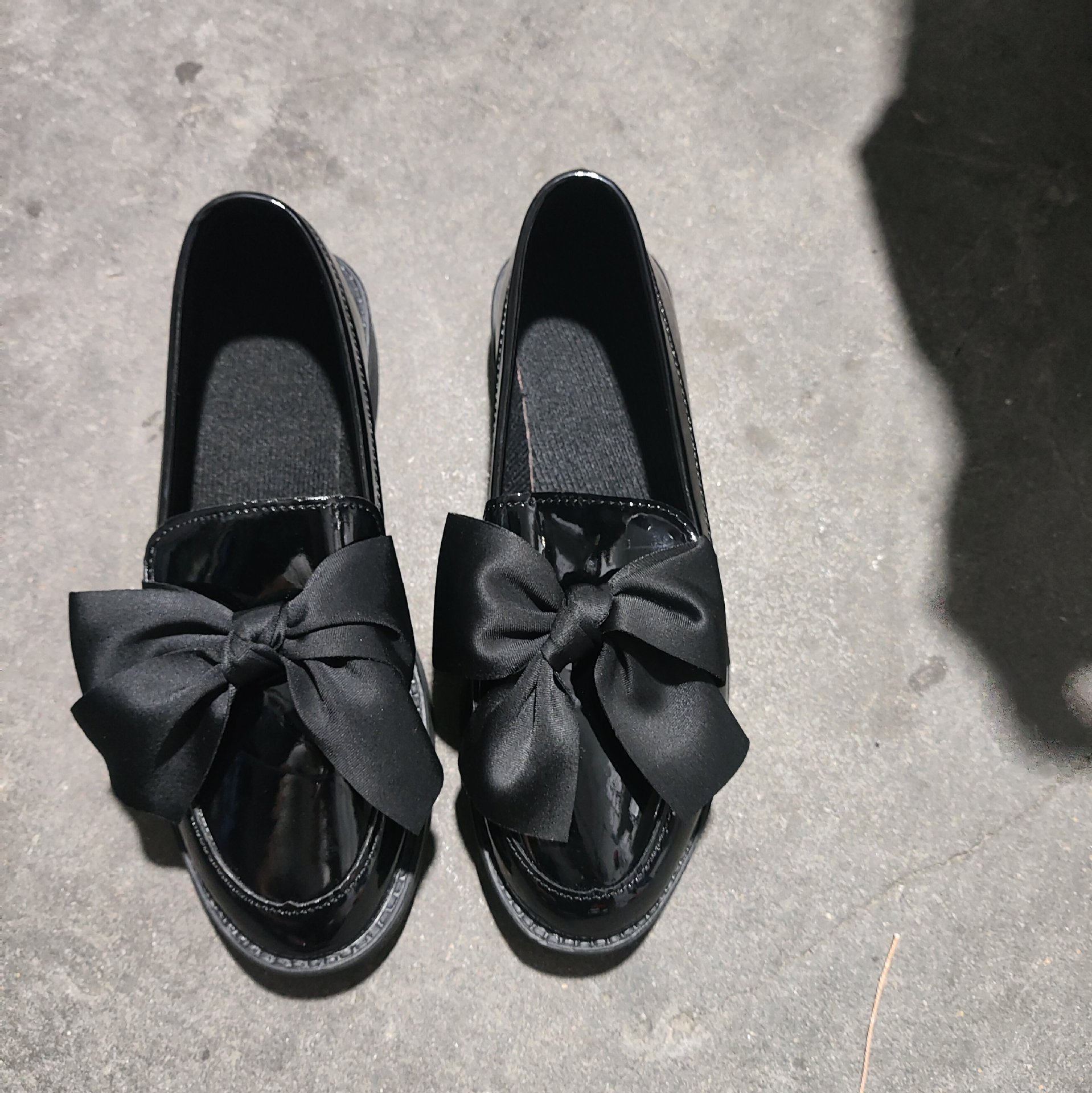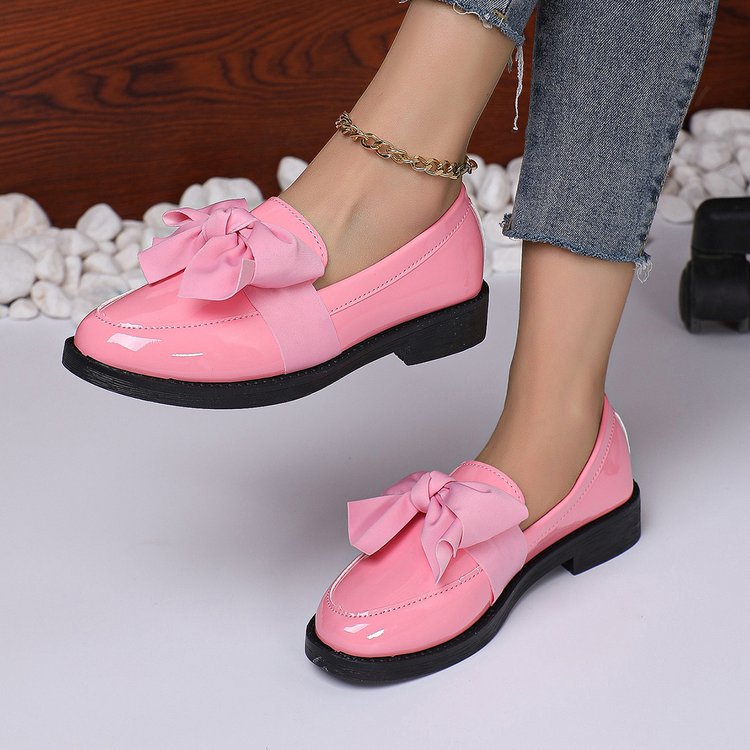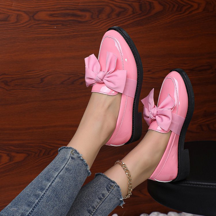소형 가죽 신발 대외 무역 크로스 보더 대형 라운드 발가락 캐주얼 슬립 온 패션 두꺼운 굽 나비 매듭 신발 도매 재고 있음스토어 가기