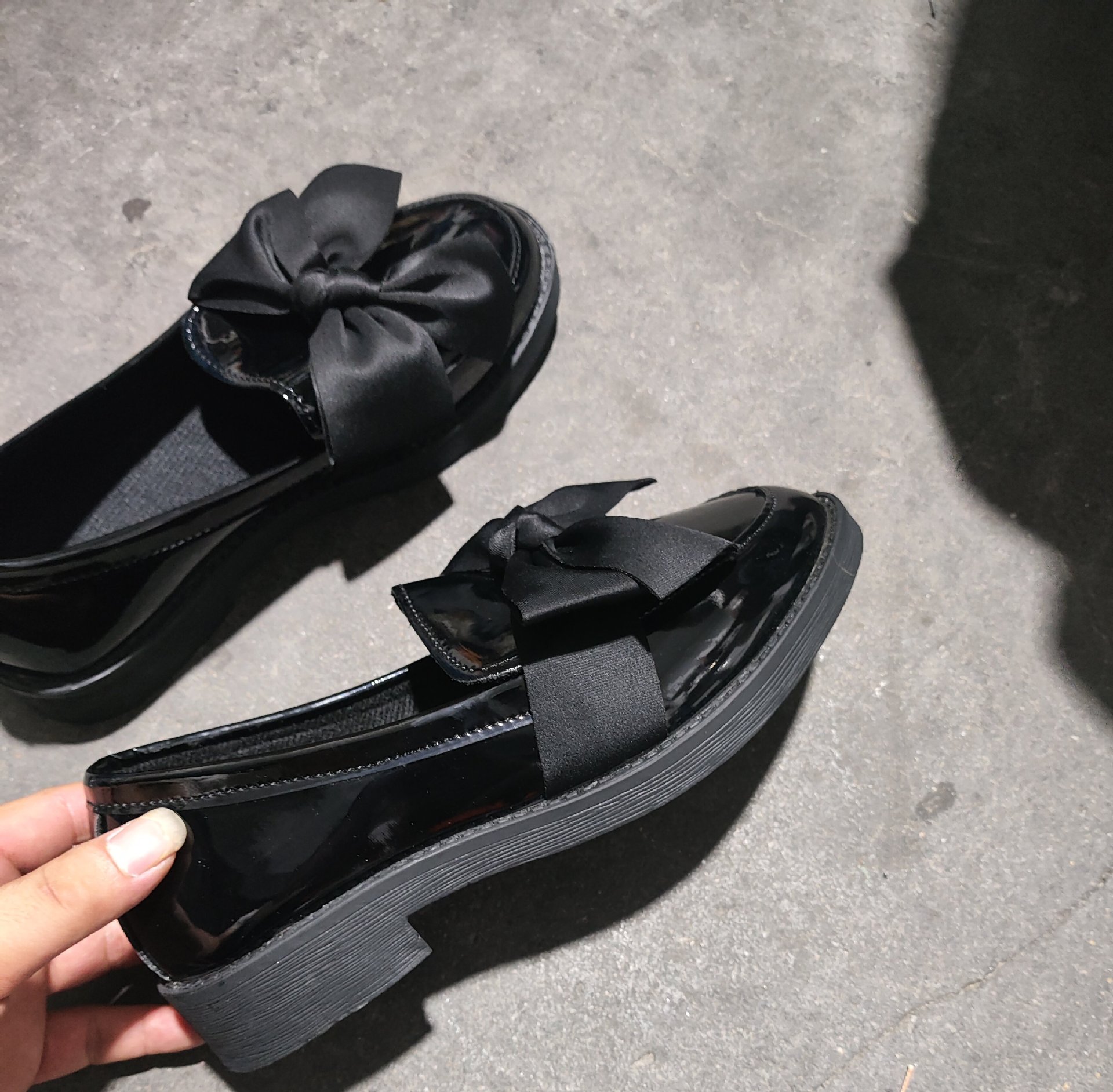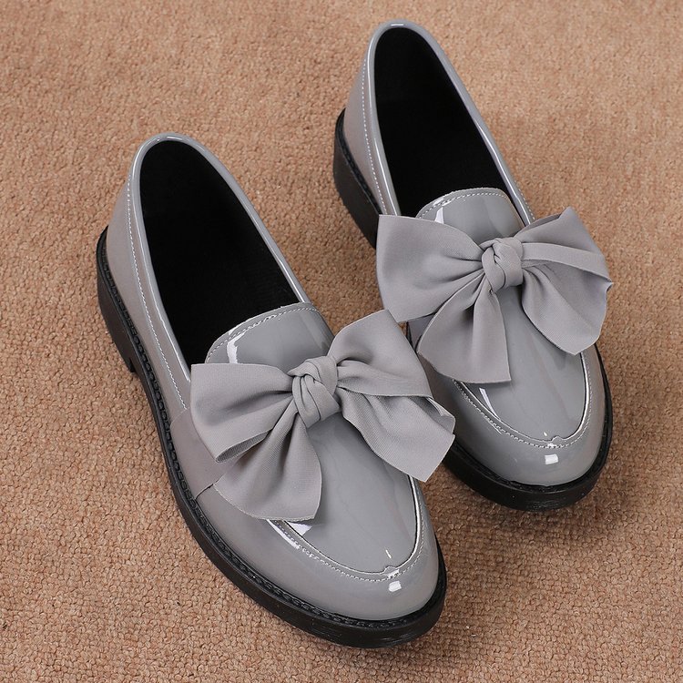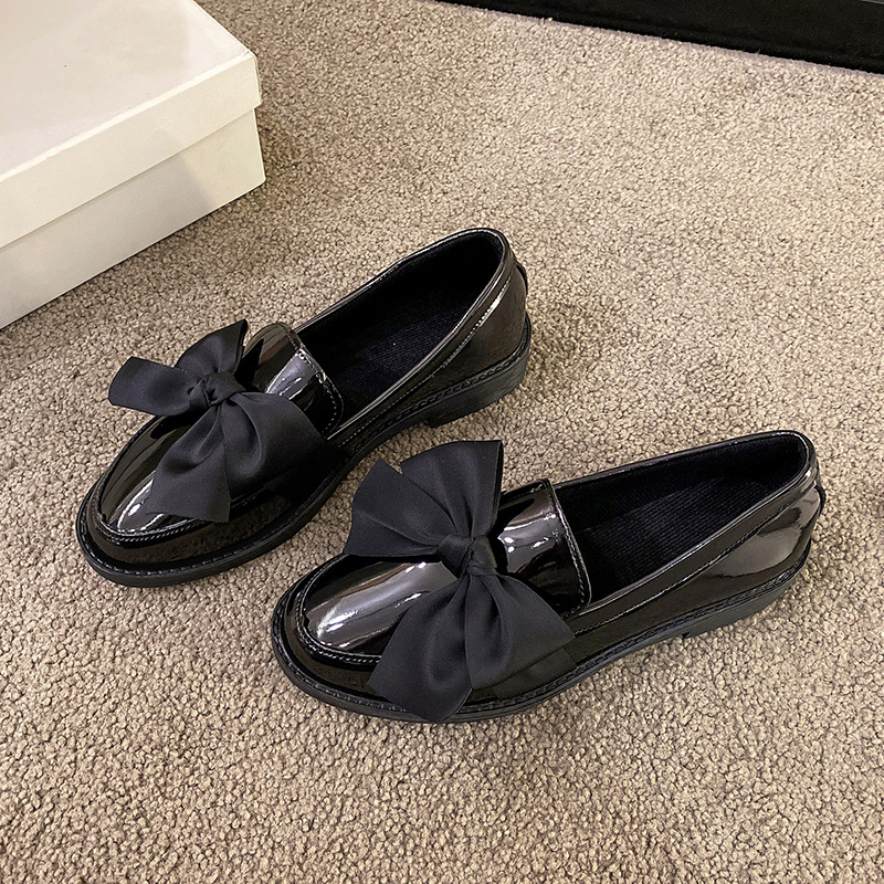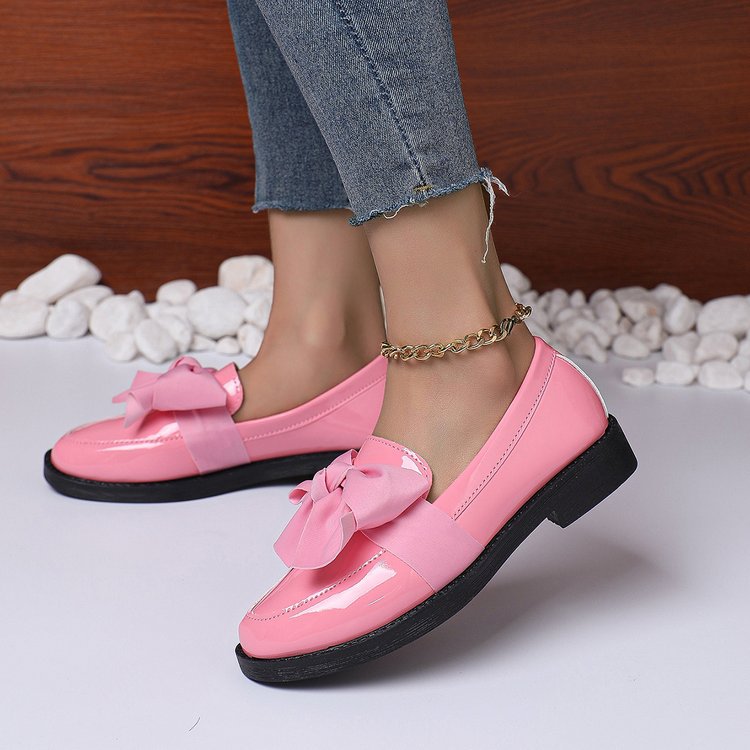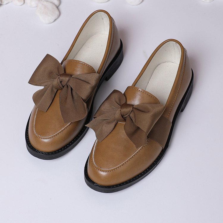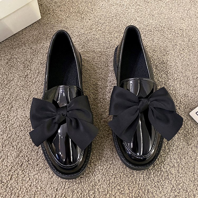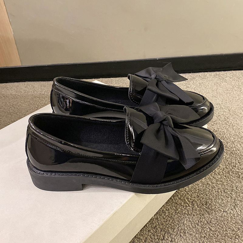소형 가죽 신발 대외 무역 크로스 보더 대형 라운드 발가락 캐주얼 슬립 온 패션 두꺼운 굽 나비 매듭 신발 도매 재고 있음스토어 가기