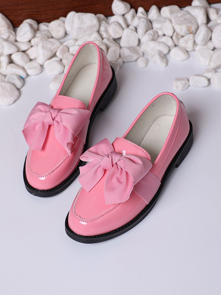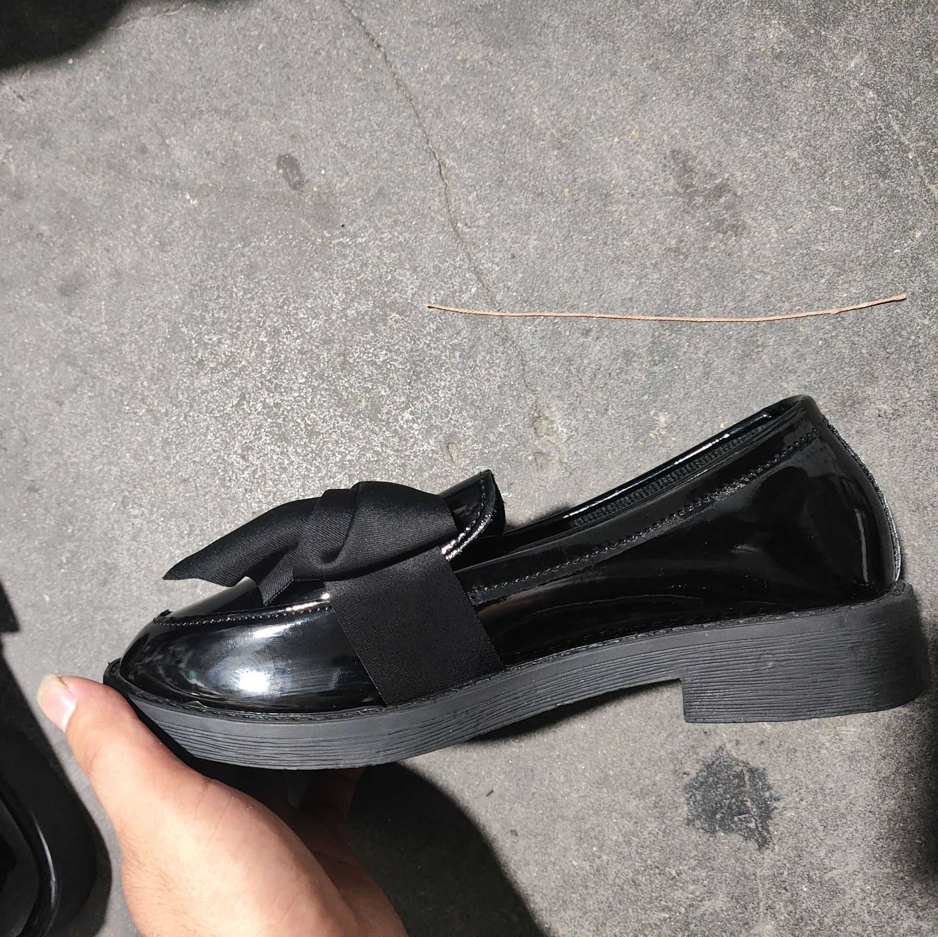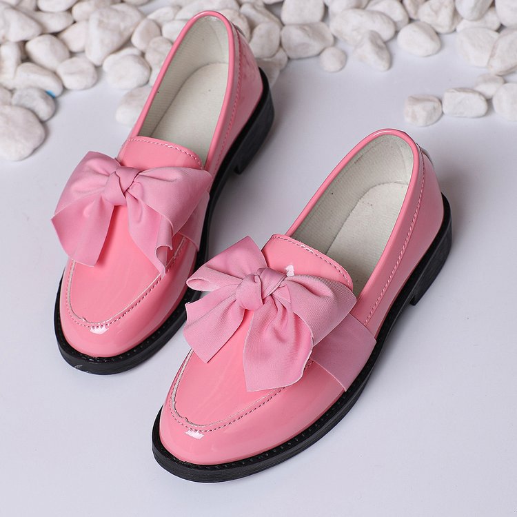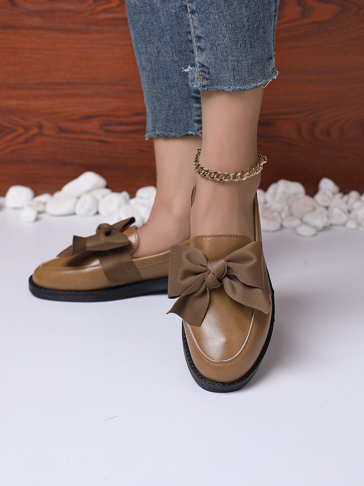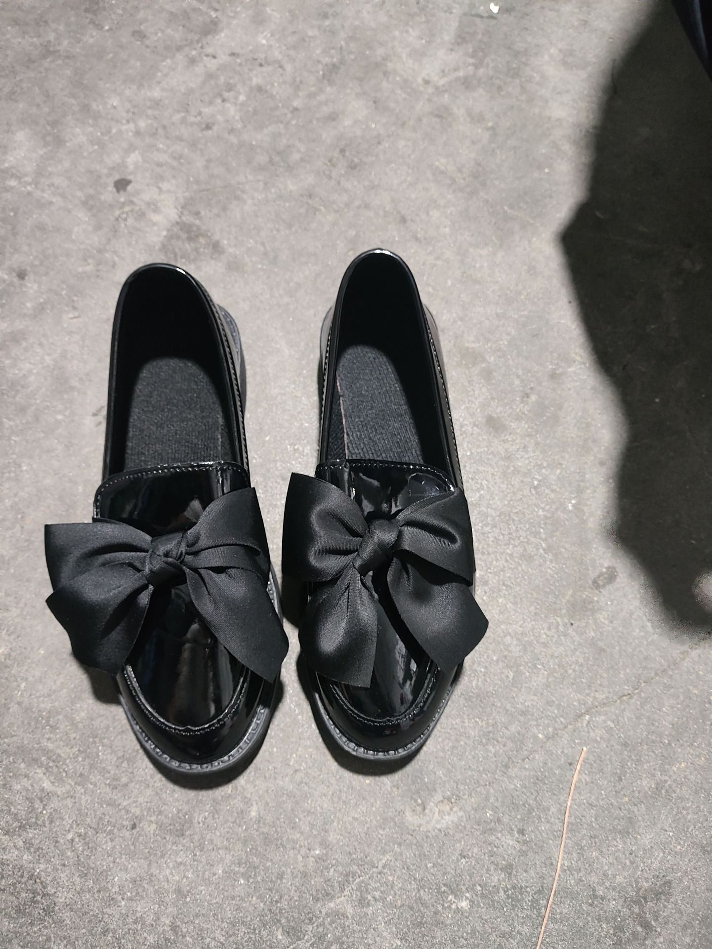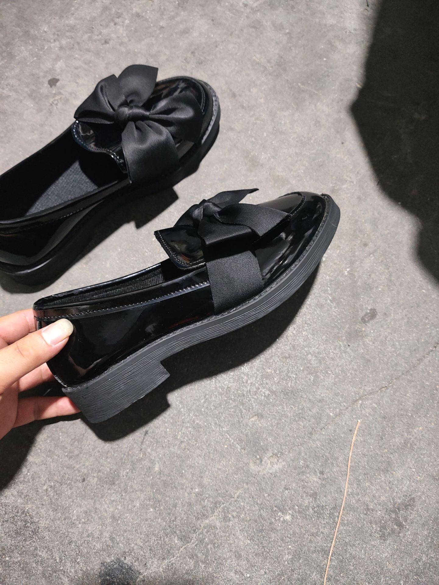 소형 가죽 신발 대외 무역 크로스 보더 대형 라운드 발가락 캐주얼 슬립 온 패션 두꺼운 굽 나비 매듭 신발 도매 재고 있음스토어 가기
