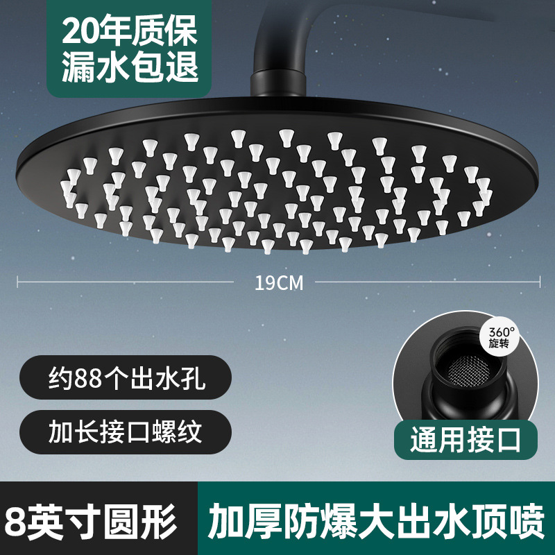 • 라운드【블랙 8inch 】●슈퍼차지 대형 물 배출구 304 스테인레스 스틸 탑 스프레이