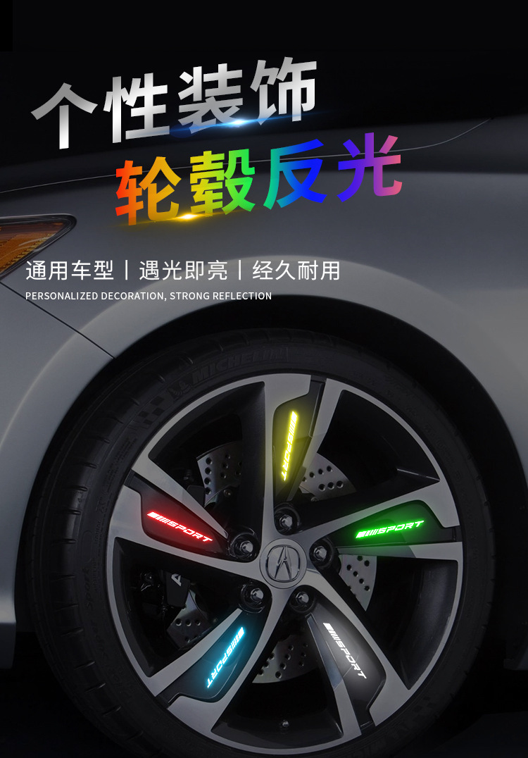 자동차 반사 휠 스티커 전기 자동차 오토바이 림 스포츠 스티커 다채로운 개조 스포츠 발광 자동차 스티커