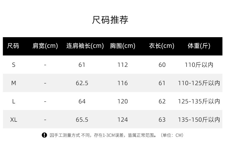 长袖尺码表