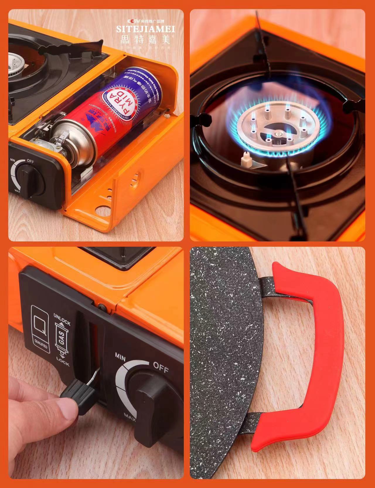 Sitejiamei 휴대용 야외 카세트 스토브 세트 바베큐 캠핑 프라이팬 바베큐 올인원 그릴 스토브 가스 스토브