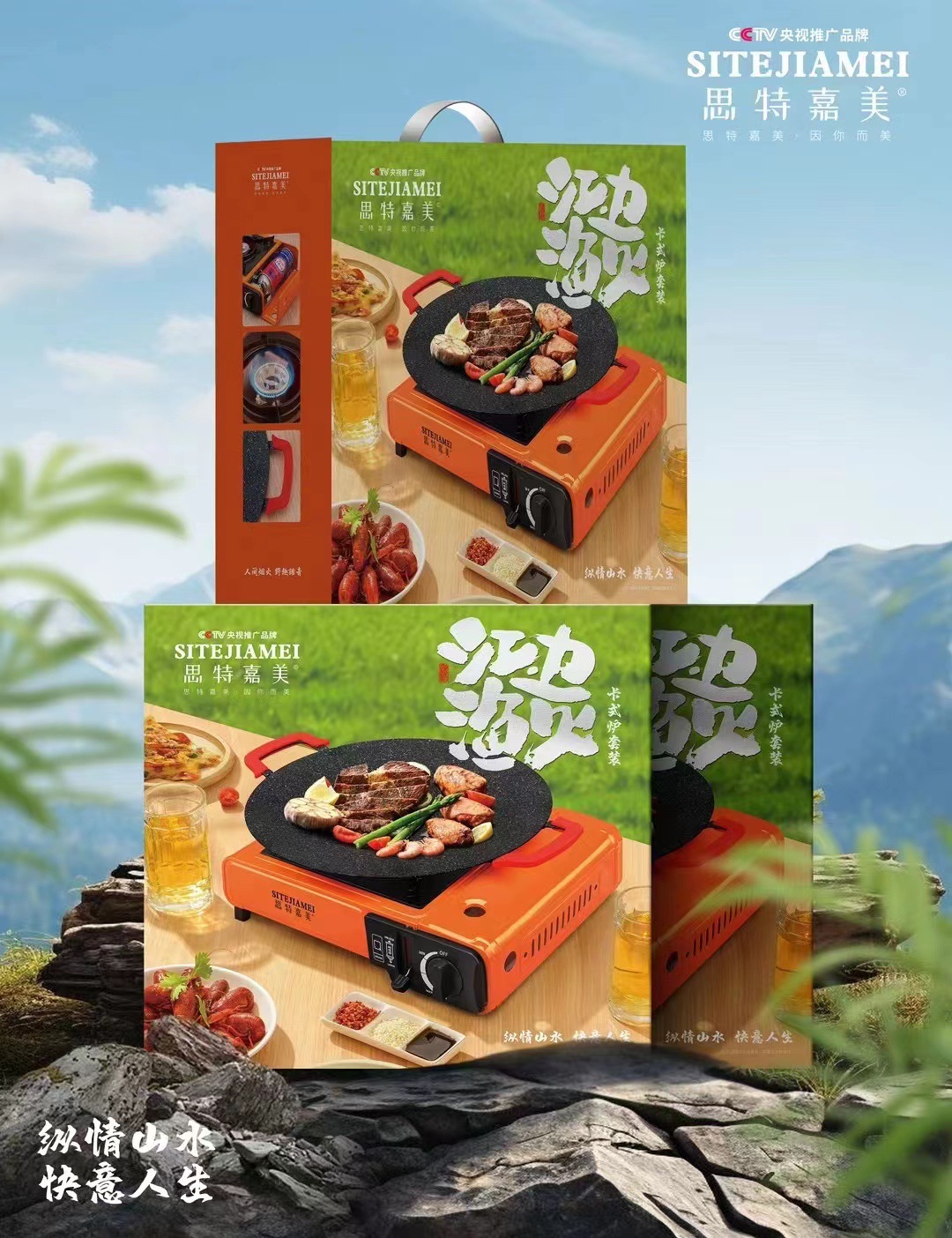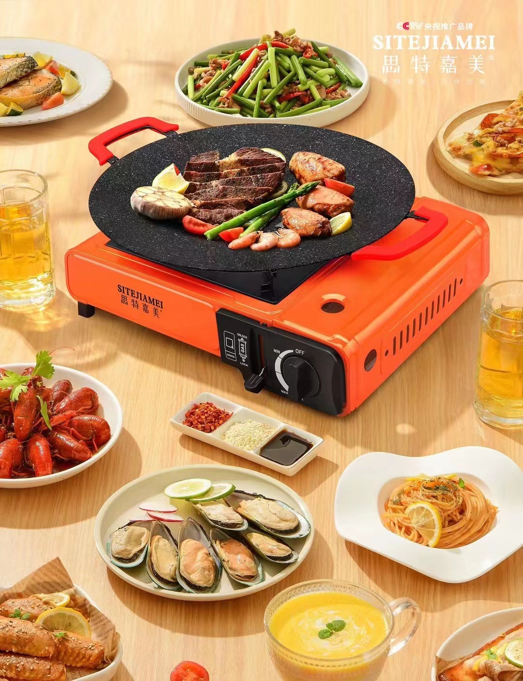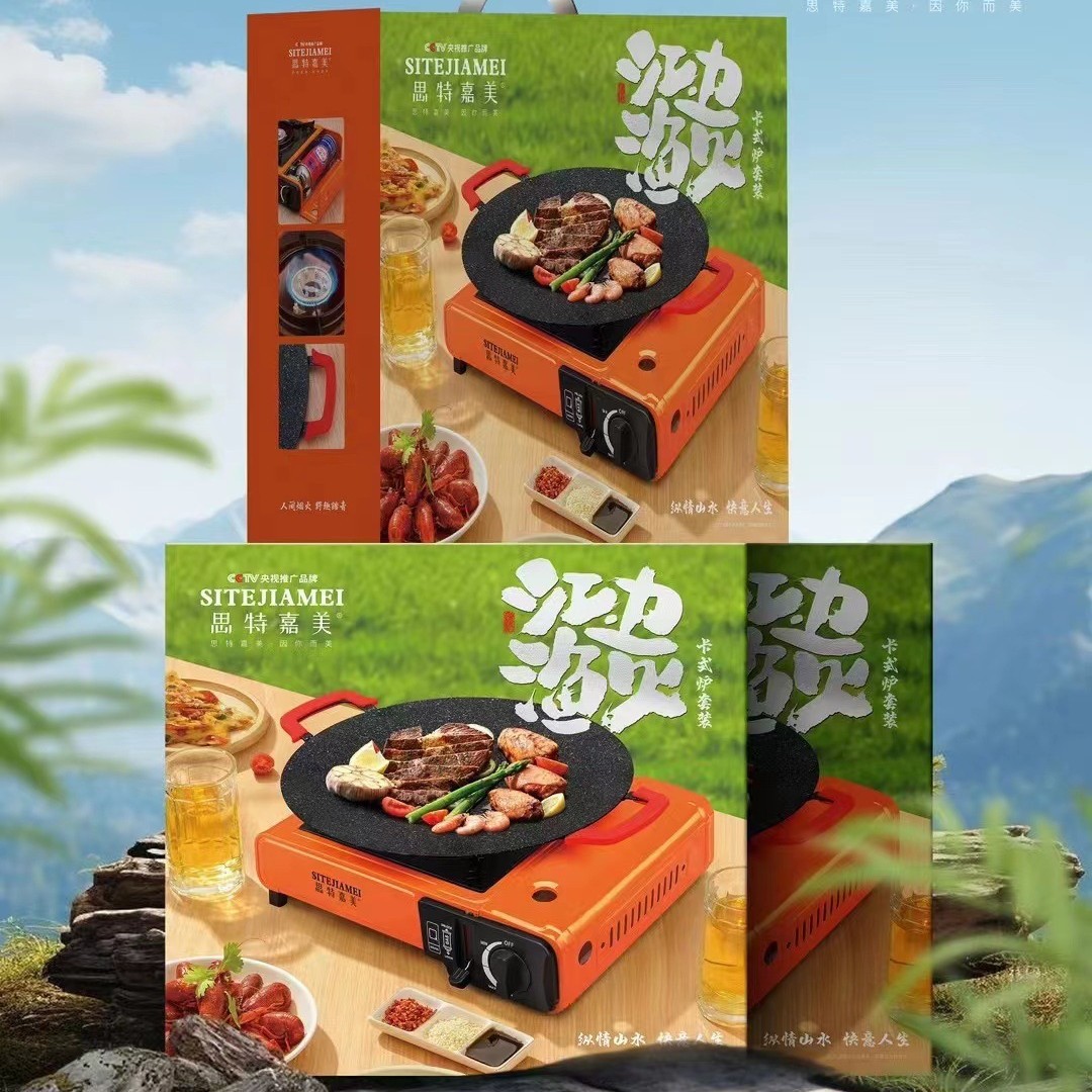 Sitejiamei 휴대용 야외 카세트 스토브 세트 바베큐 캠핑 프라이팬 바베큐 올인원 그릴 스토브 가스 스토브스토어 가기