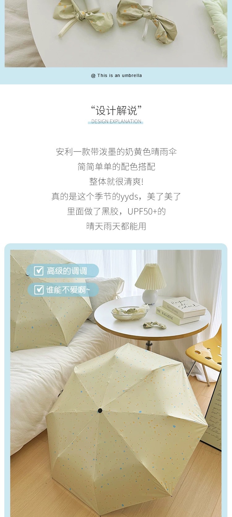 크림 스플래시 잉크 우산 태양 우산 맑고 비 이중 사용 높은 가치 검은 고무 선 스크린 UV 보호 햇살 우산 여성 Ins
