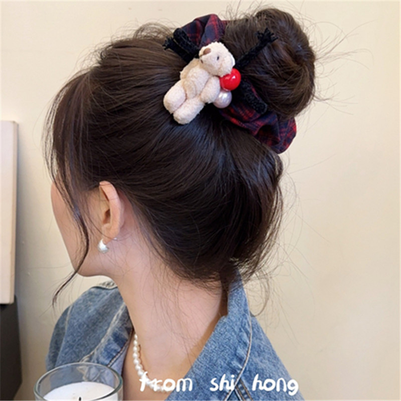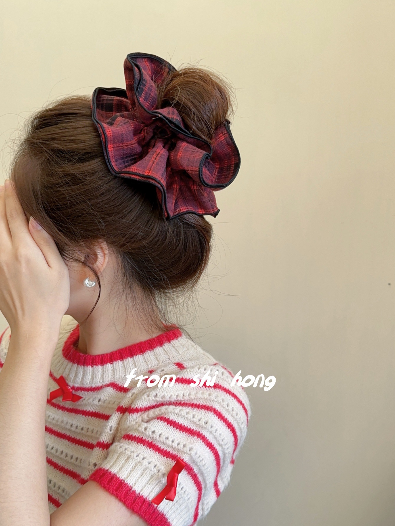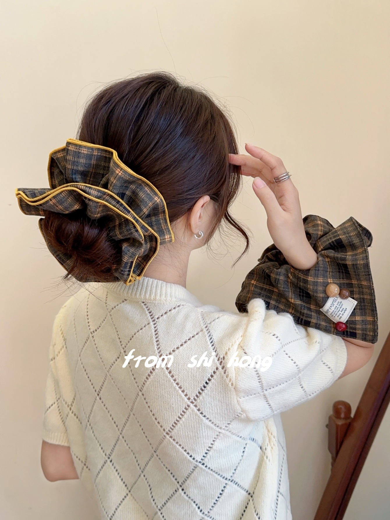 한국식 칼리지 스타일 레트로 플레이드 대형 직분 헤어 링 여성 고급 느낌 볼 헤드 로우 포니 테일 오버 헤드 헤드 헤드 헤드 헤드 헤드 헤드 헤드 헤드 헤드 헤드 헤드 헤어 액세서리