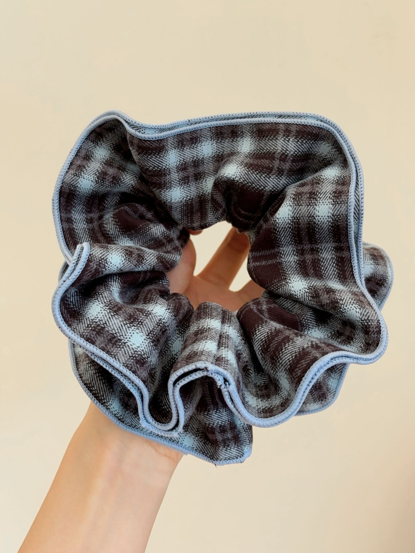 • 파란색 격자 무늬 사각 스카프 머리끈