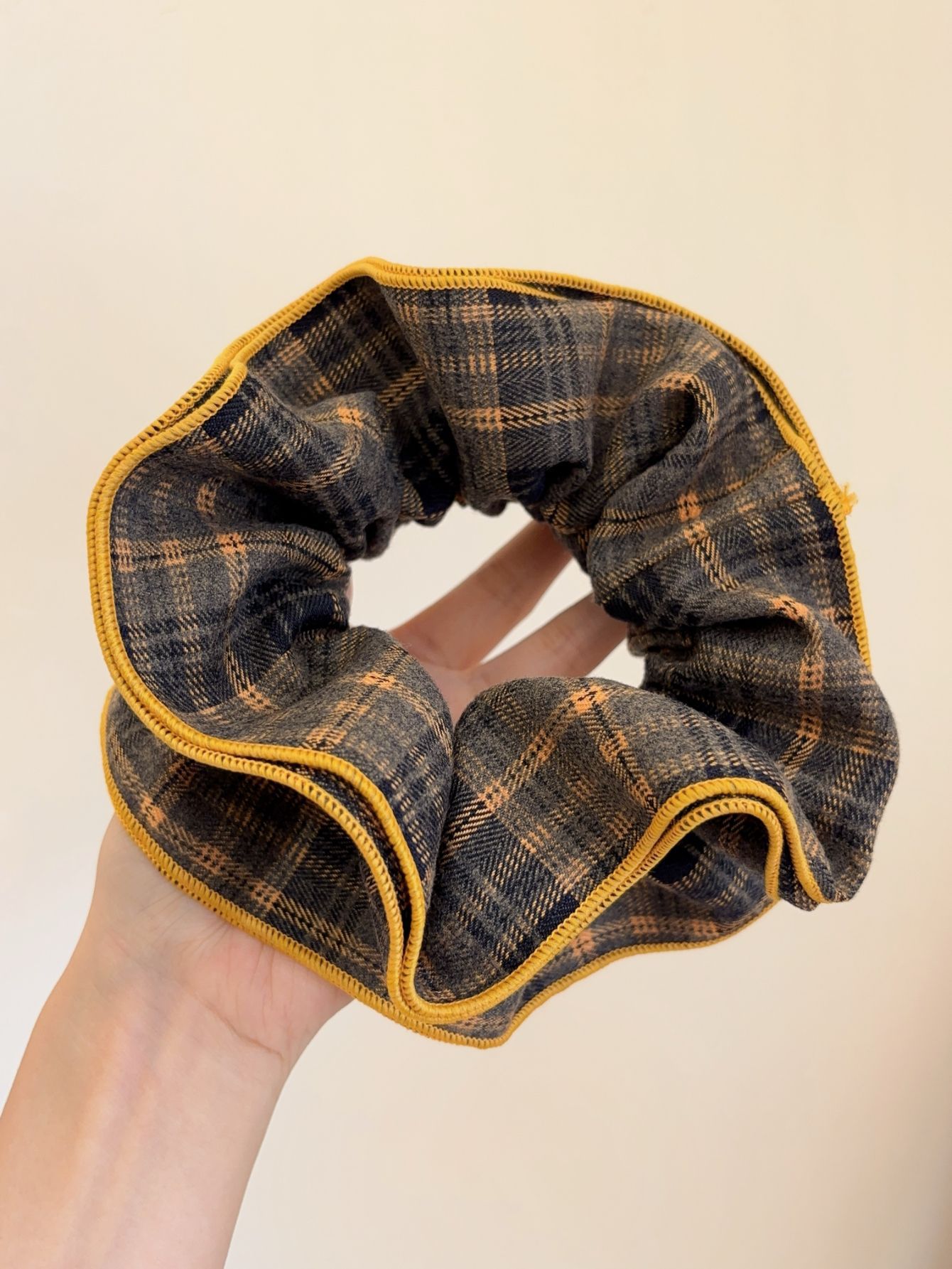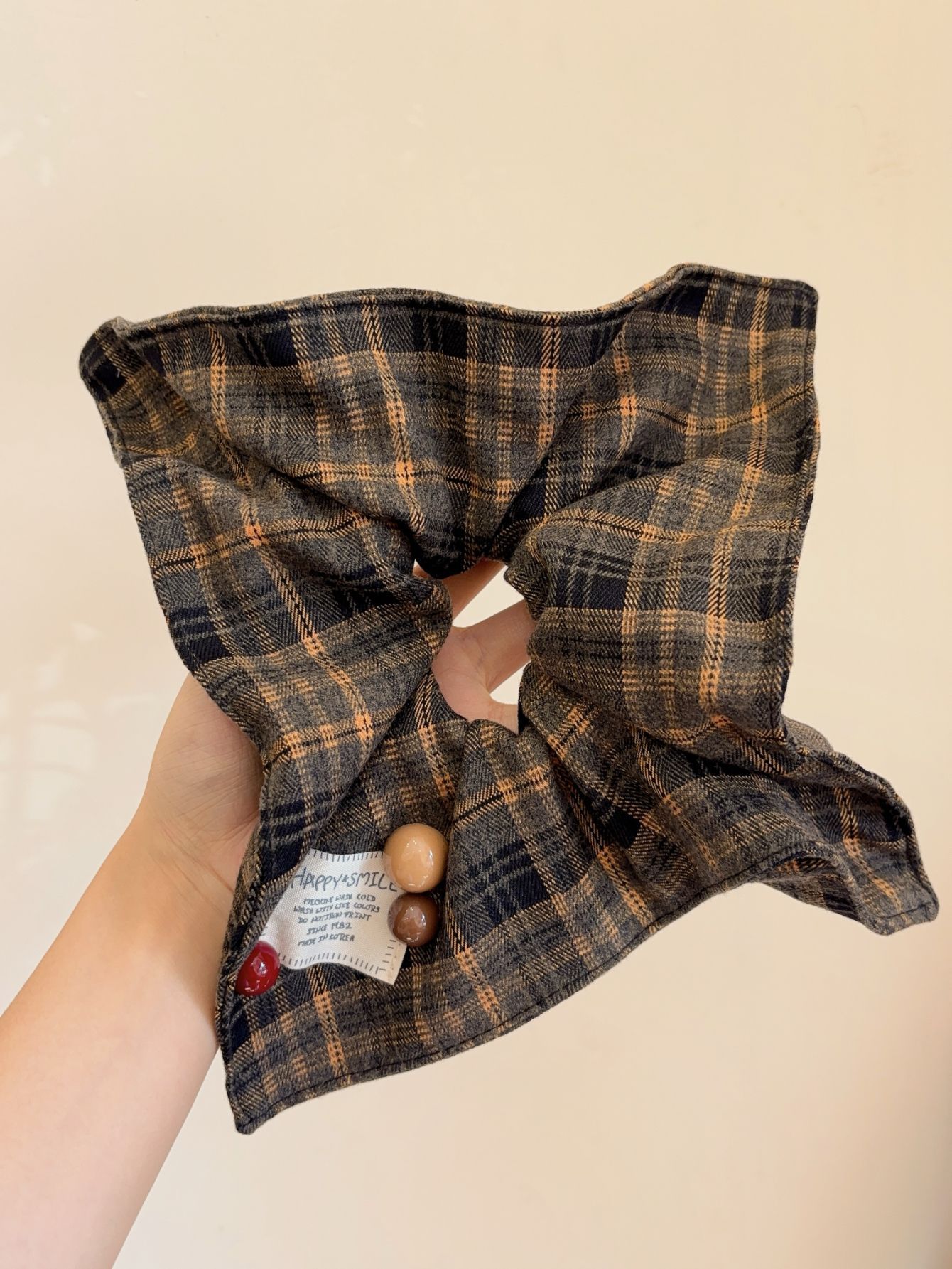 • 브라운 체크 무늬 사각 스카프 머리끈