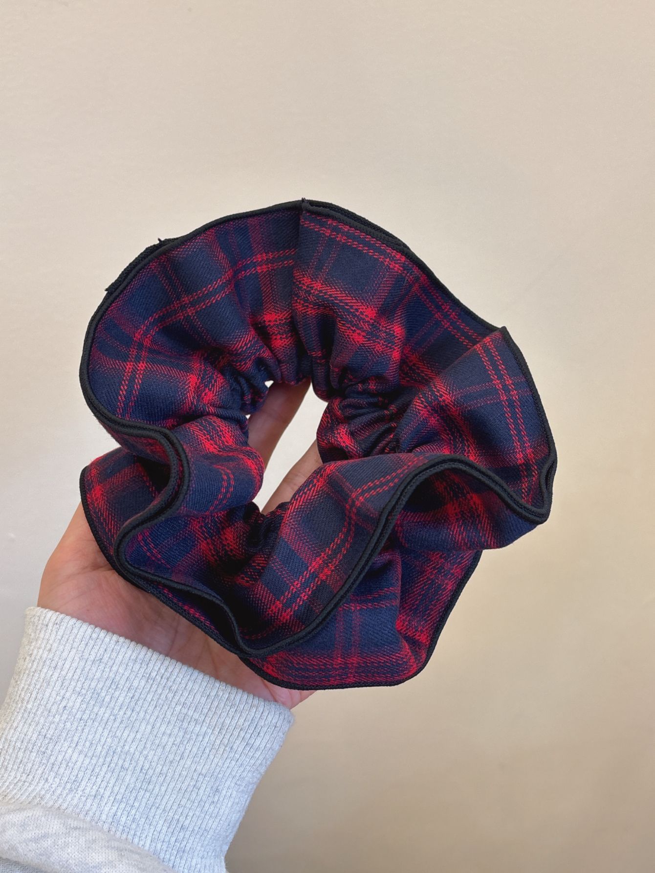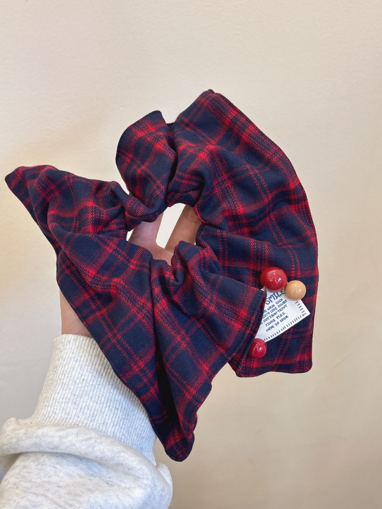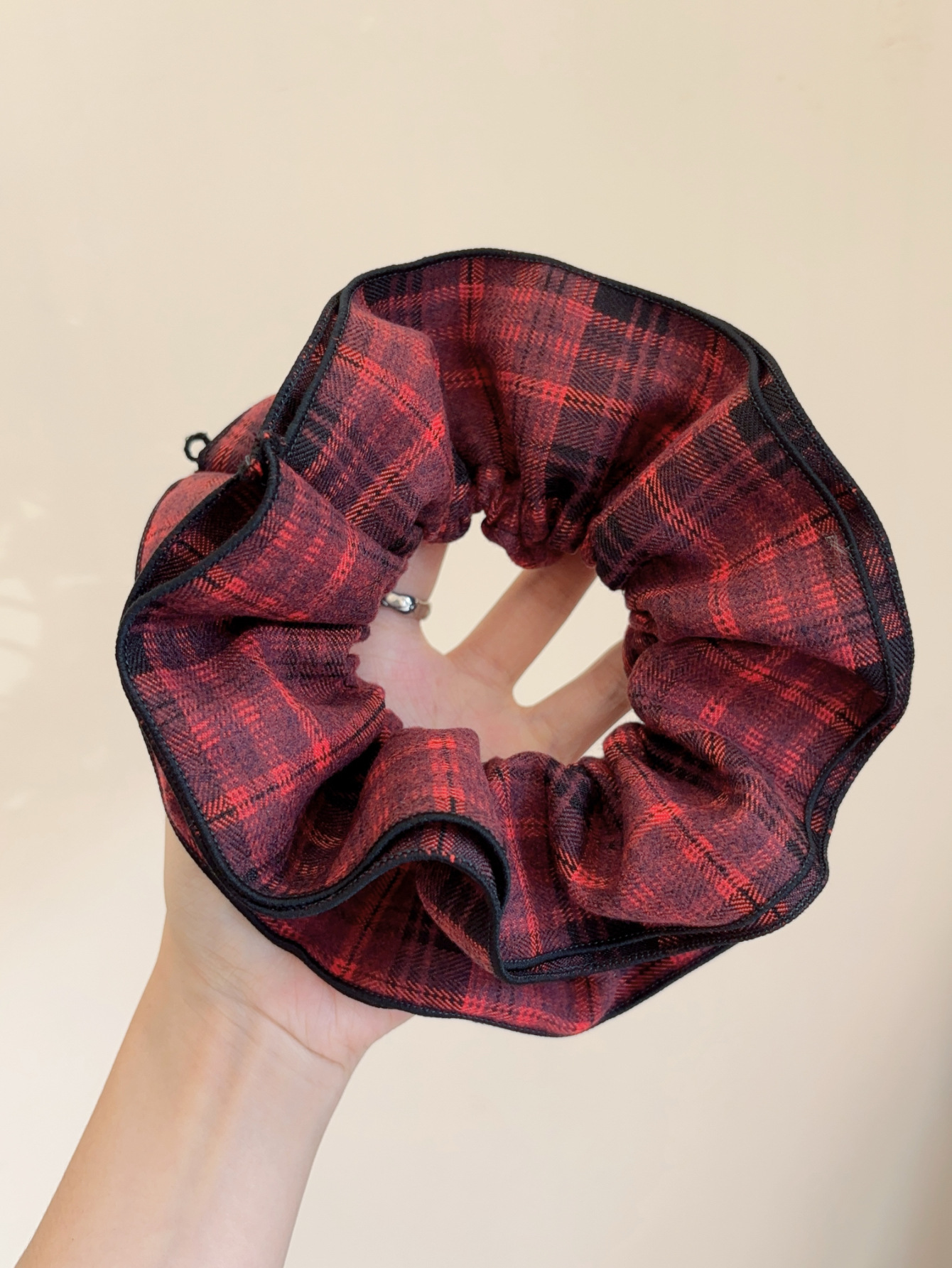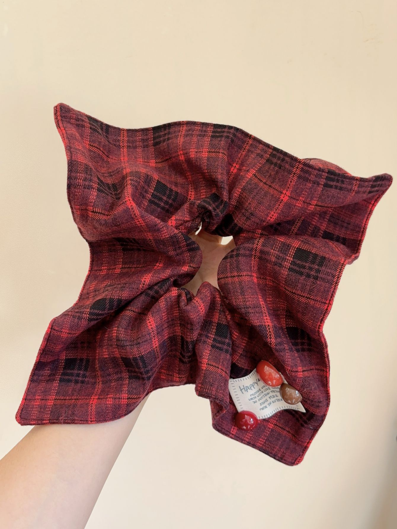 • 붉은 격자 무늬 사각 스카프 머리끈