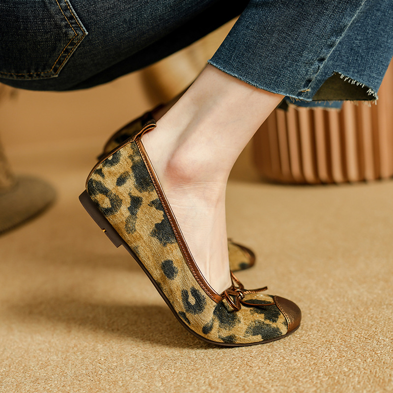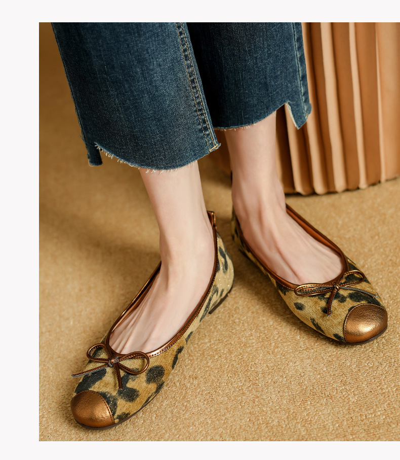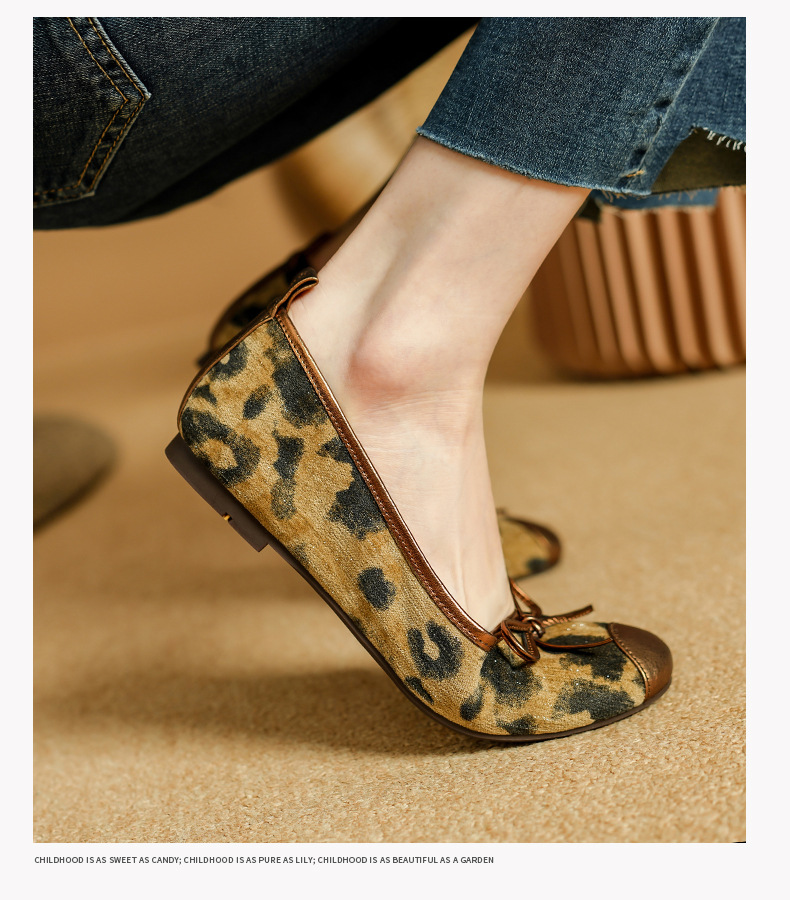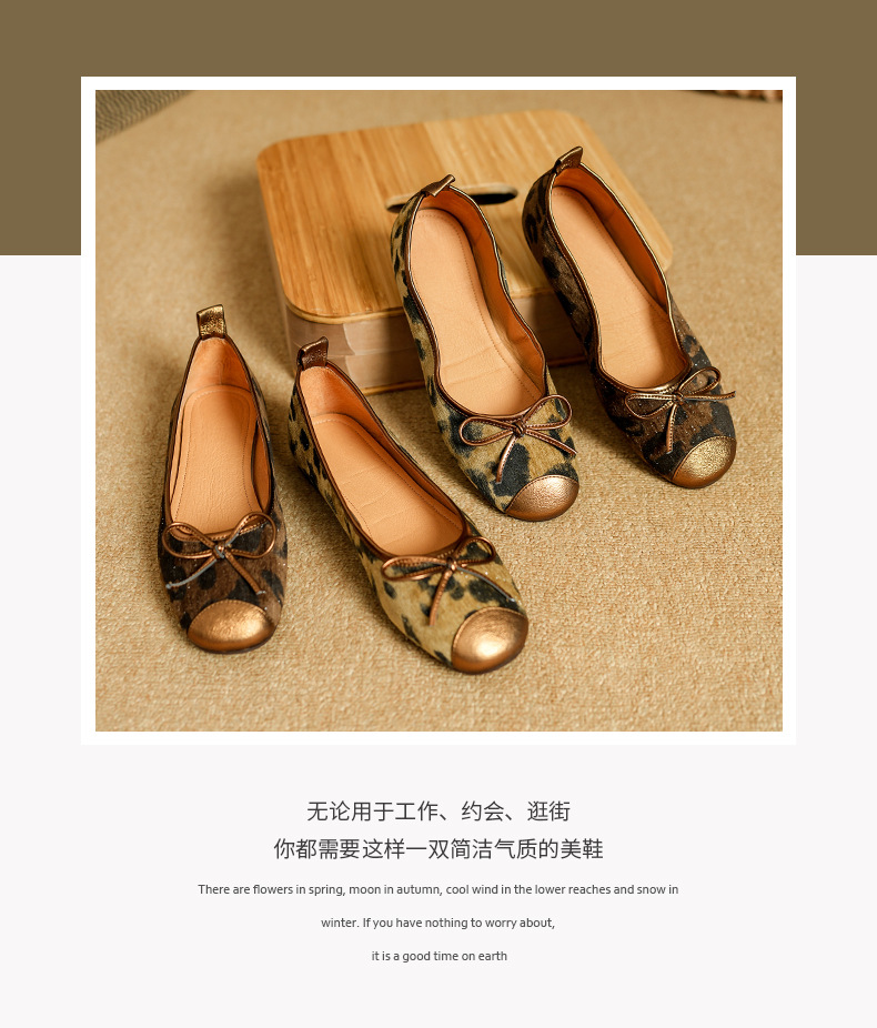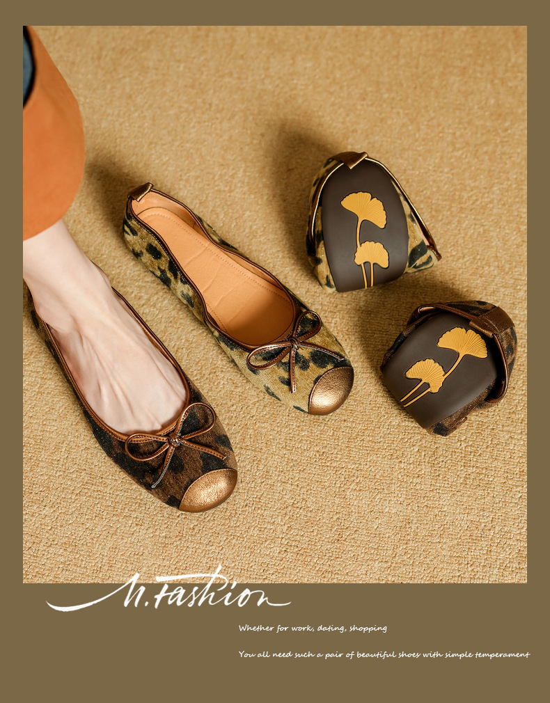 프랑스 레트로 레오파드 보우 얕은 입 신발 부드러운 가죽 부드러운 바닥 콩 신발 사계절 무당 신발 플랫 하단 레이크 레이크 신발 여성용