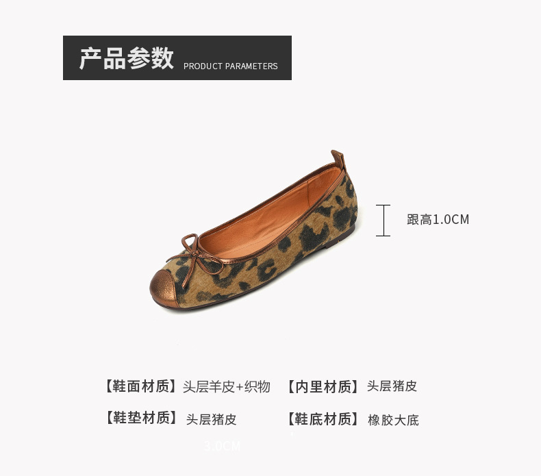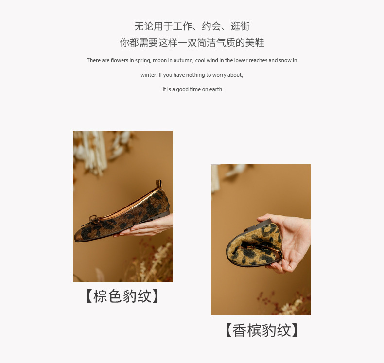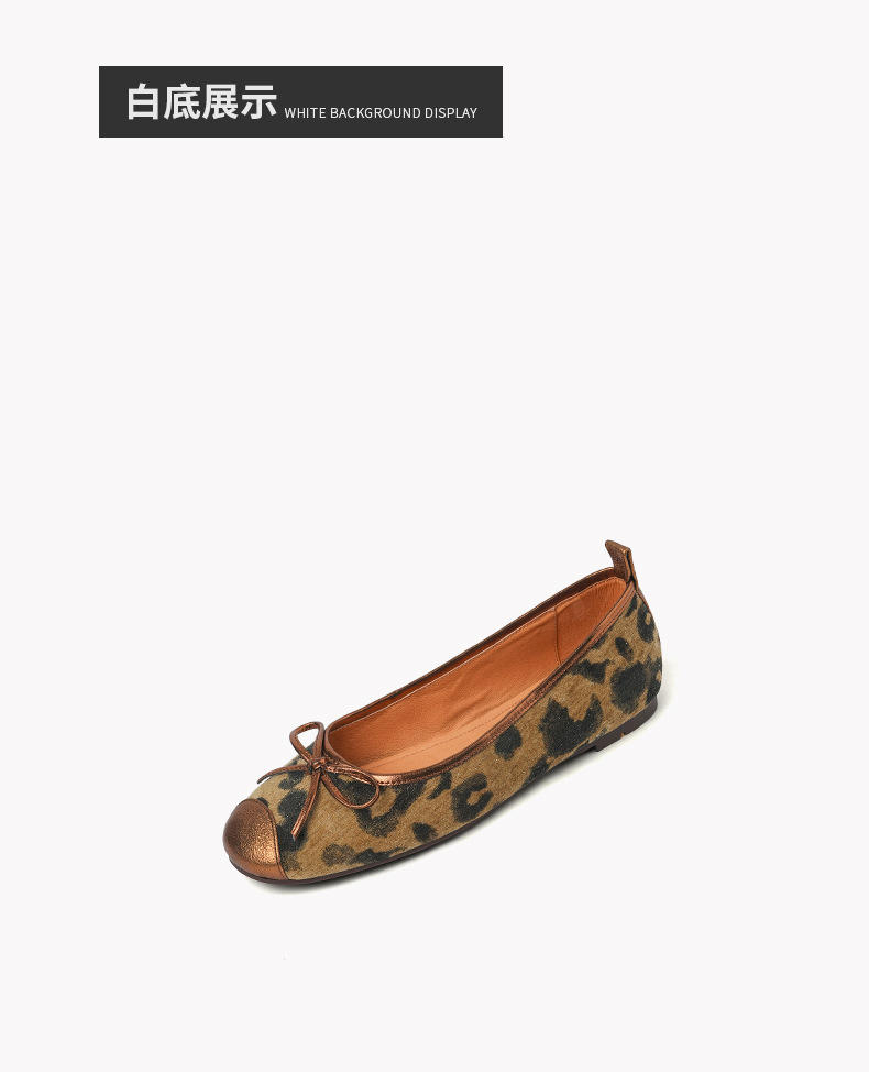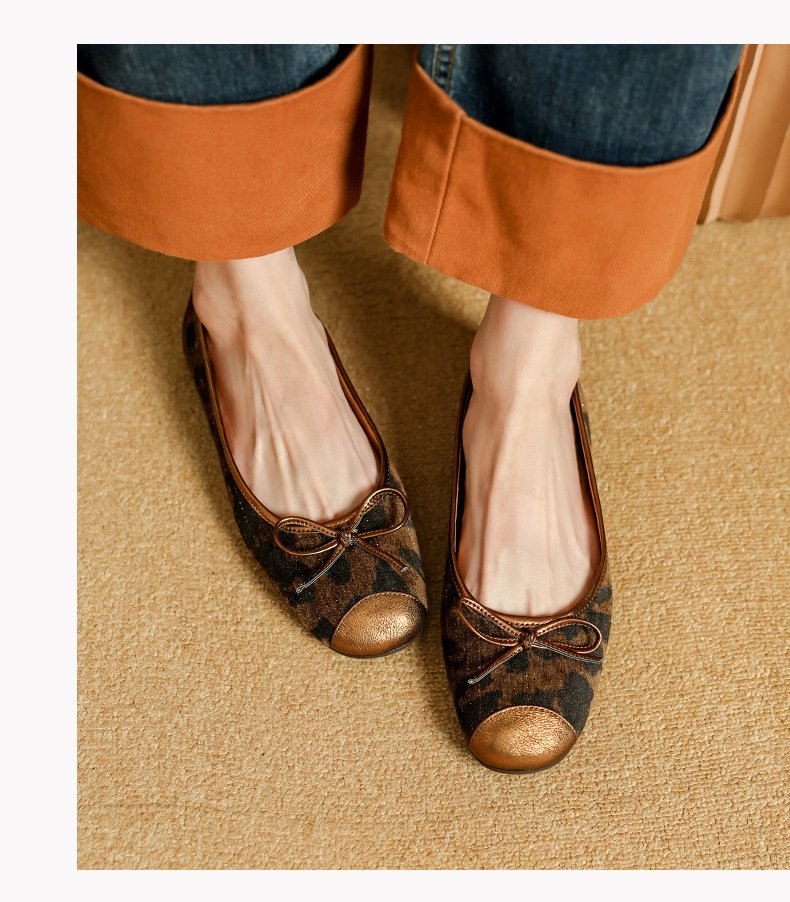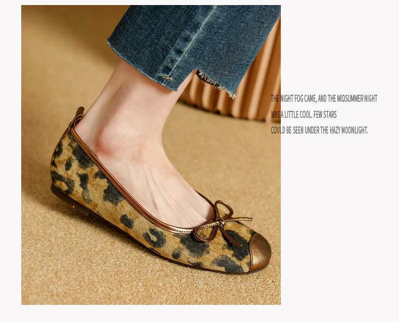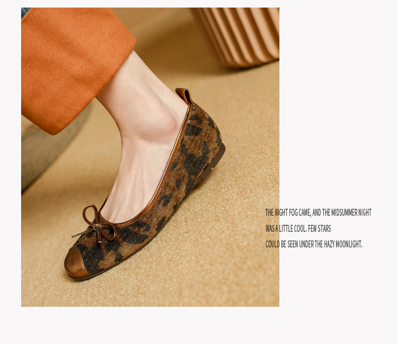 프랑스 레트로 레오파드 보우 얕은 입 신발 부드러운 가죽 부드러운 바닥 콩 신발 사계절 무당 신발 플랫 하단 레이크 레이크 신발 여성용