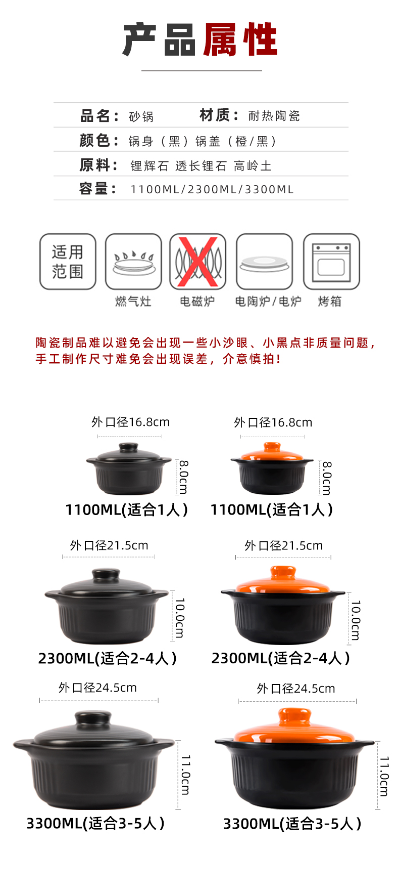 Kang Shu 고온 저항하는 세라믹 냄비 대용량 캐서롤 냄비 가정용 가스 스튜 냄비 냄비 작은 캐서롤 냄비 Heng Ming스토어 가기