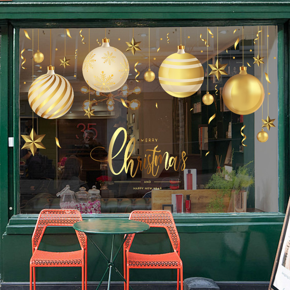 Yiyao JD4605 크리스마스 장식 골드 컬러 계란 유리 창 스티커 휴일 장면 레이아웃 창 문 정전기 스티커스토어 가기