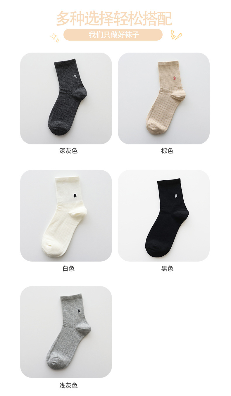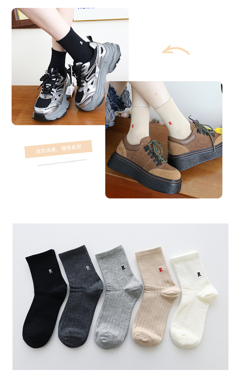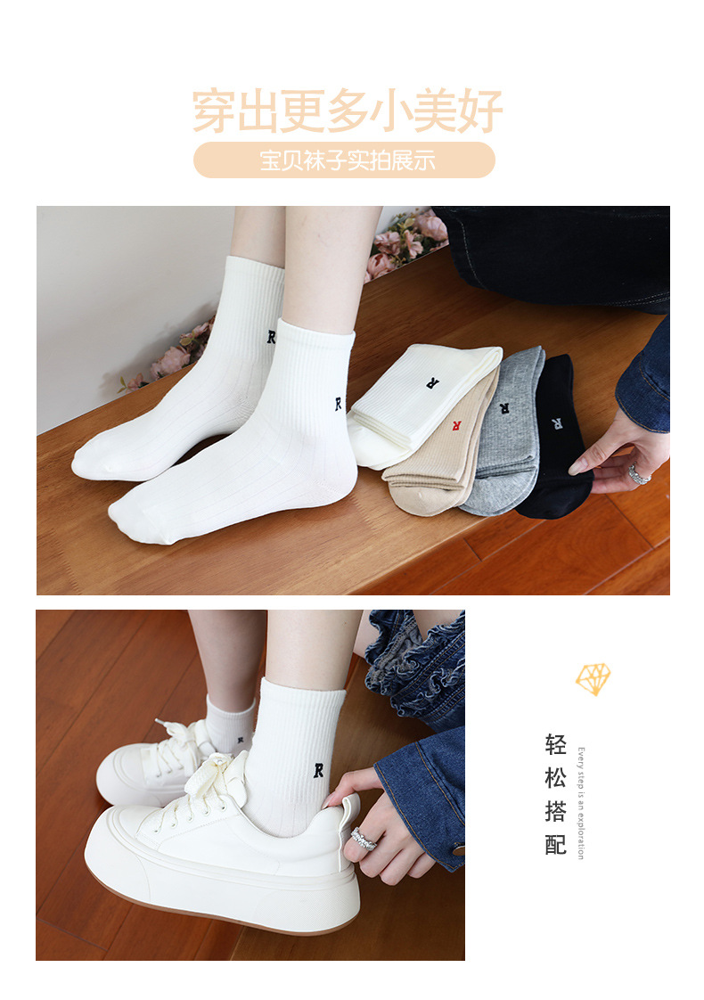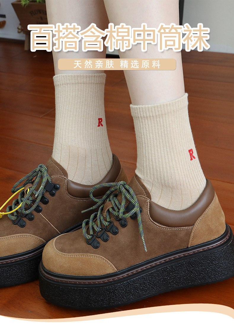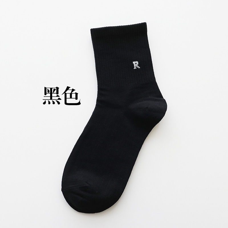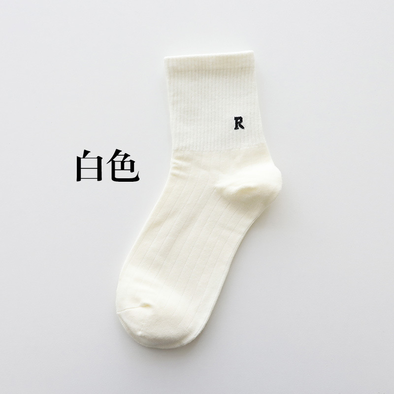 홍콩웨이시 심플 레터 양말 레트로 땀 흡수 스포츠 방취 봄 여름 면 다용도 여성 심플 중목 양말 도매
