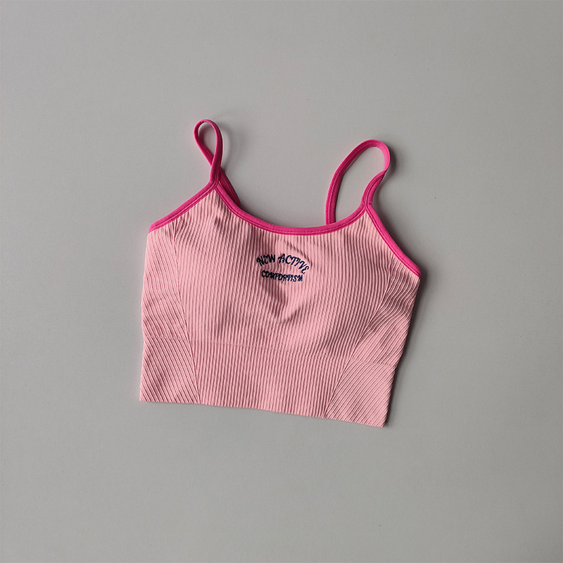 아메리칸 레트로 스포츠 콘트라스트 컬러 조끼 여성 원피스 가슴 패드 U 자형 뷰티 백 슬링 피트니스 트레이닝 아우터 속옷스토어 가기