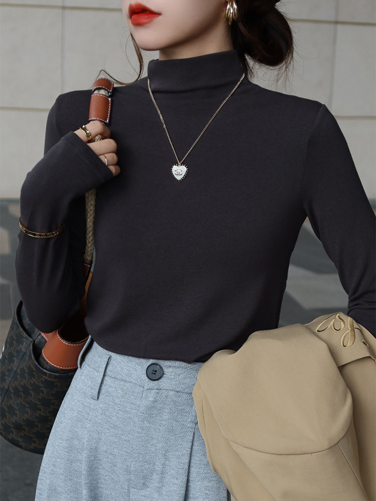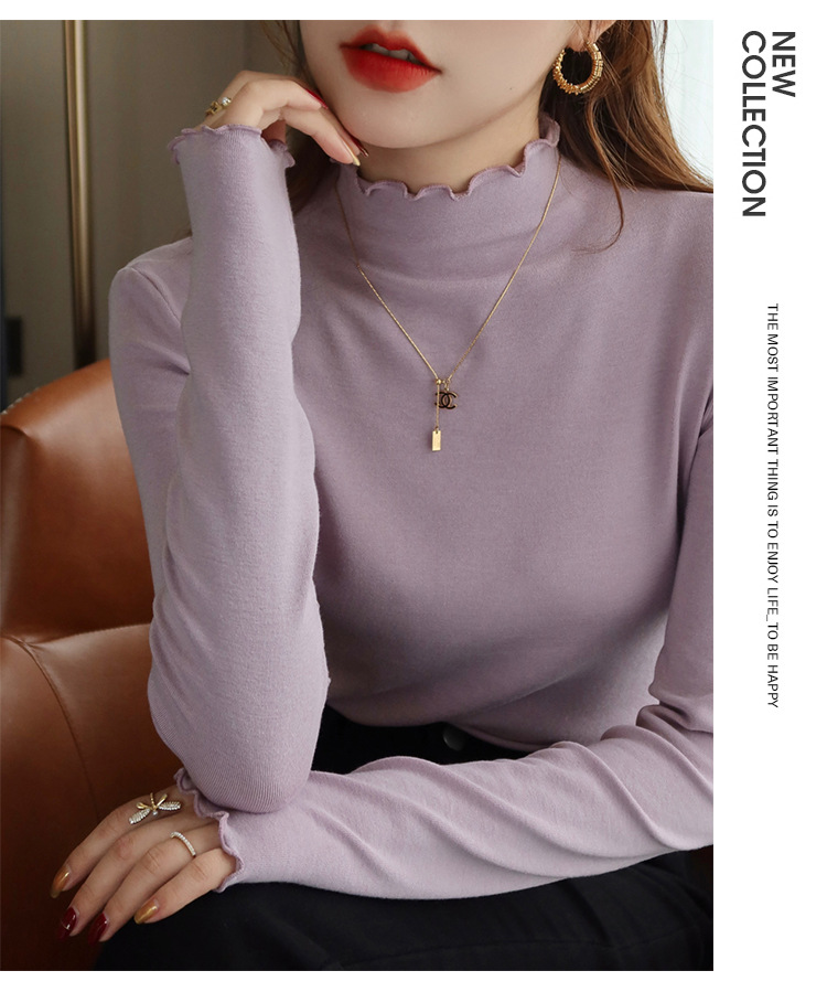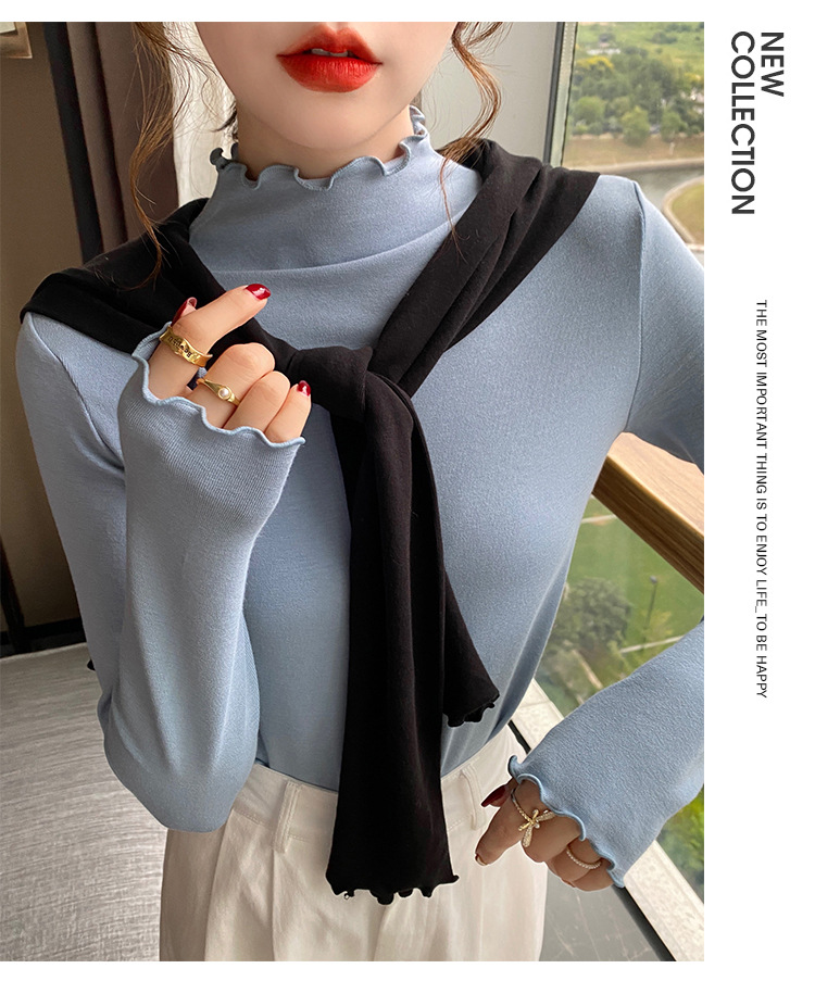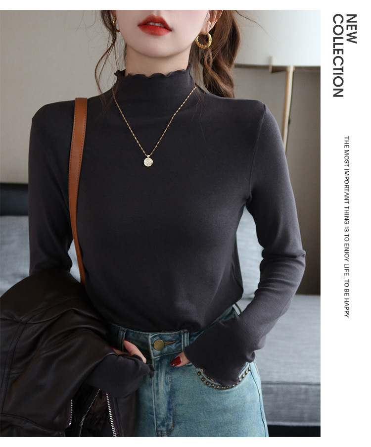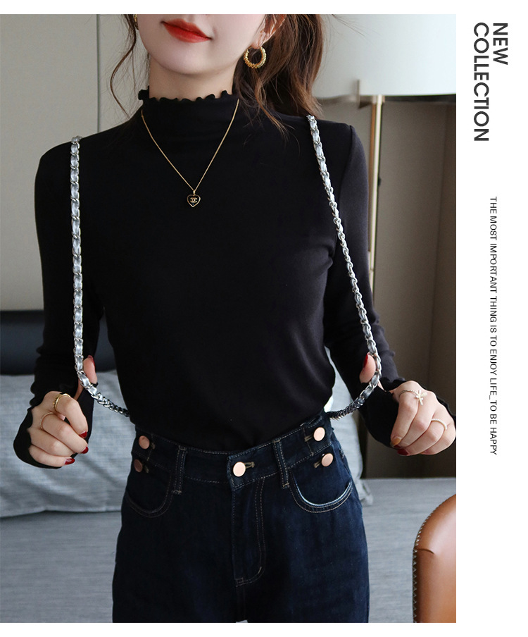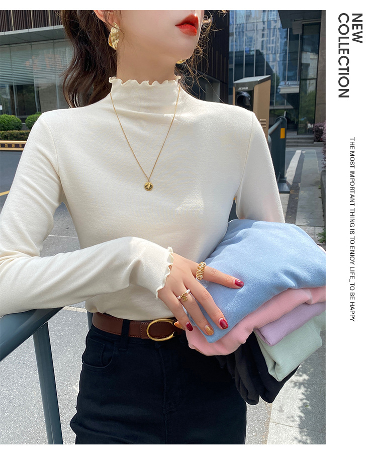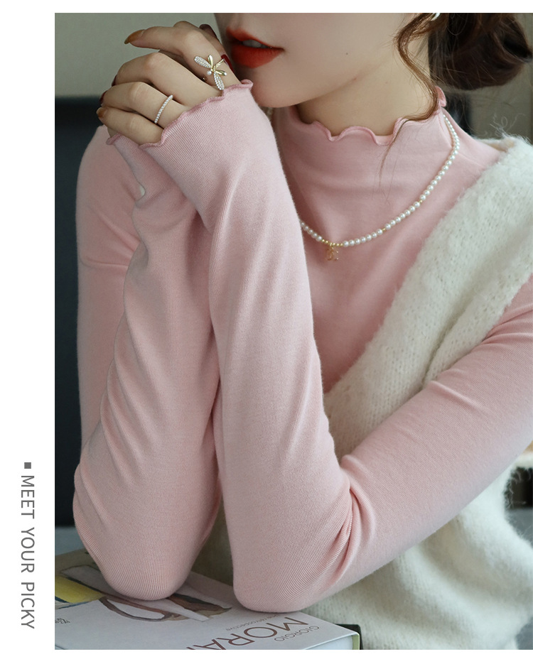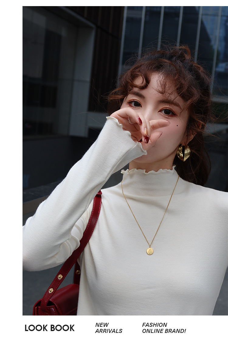 여성용 이너웨어 가을 겨울 하프 터틀넥 2025년 신상 고급스러운 러플 스타일 슬림핏 탑