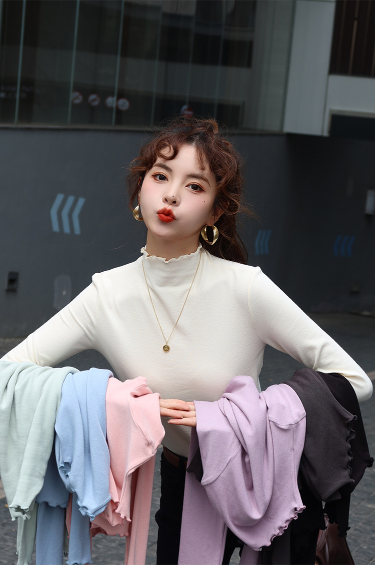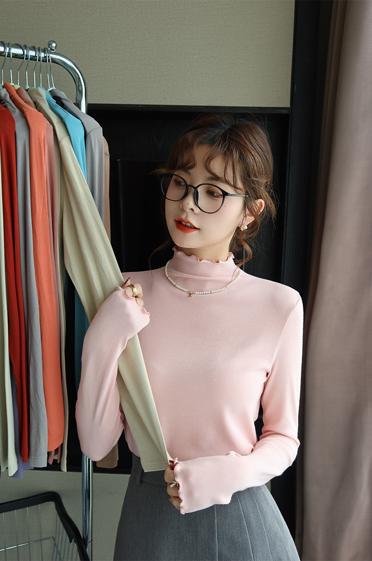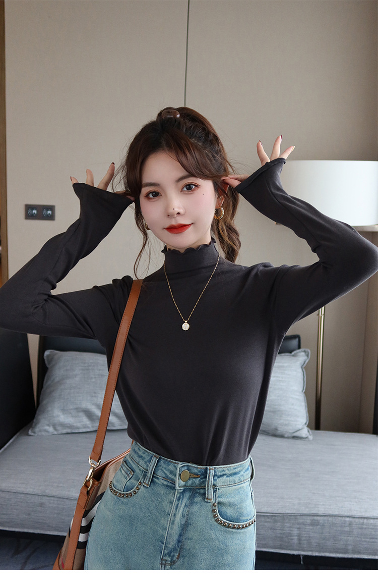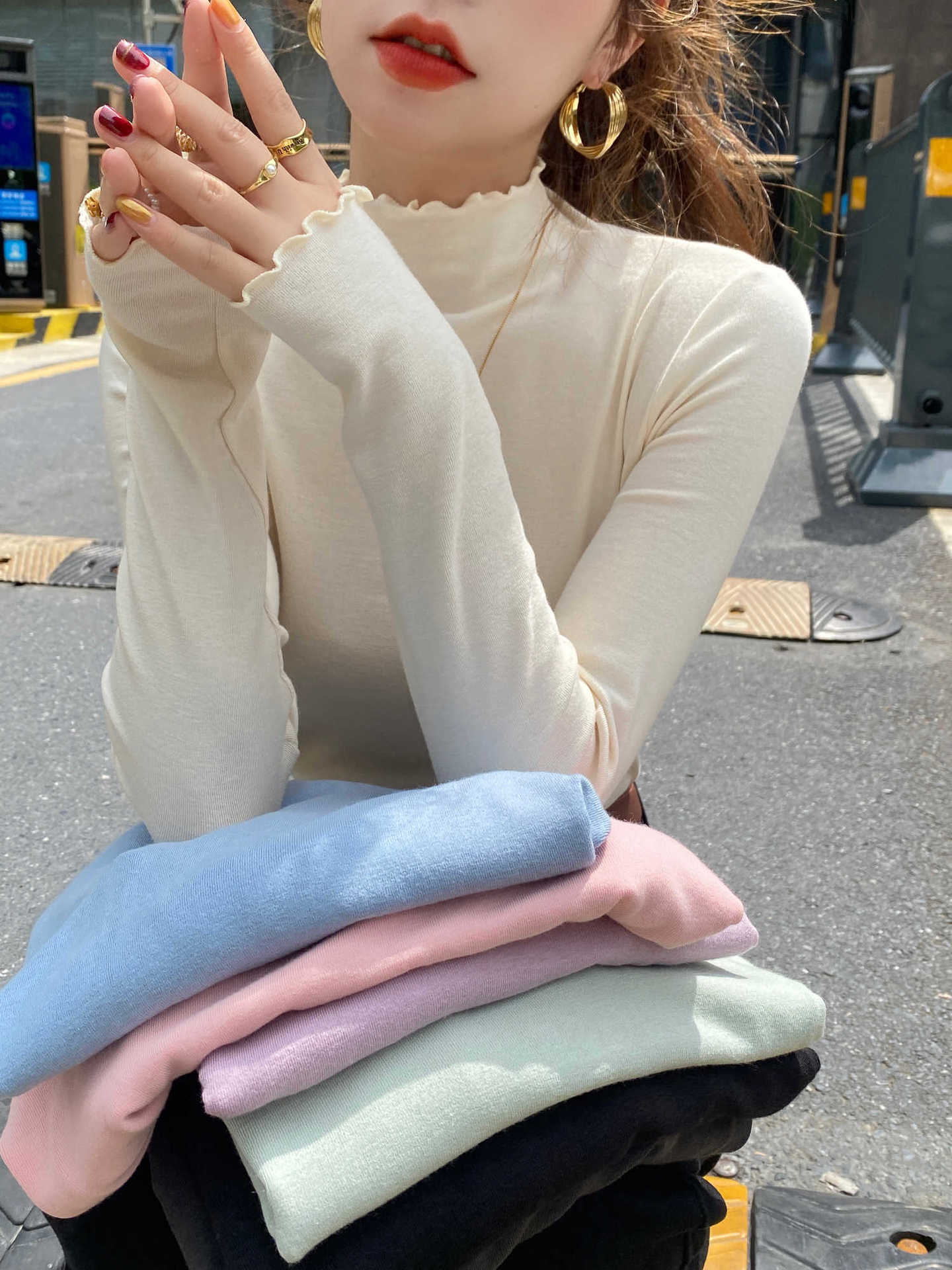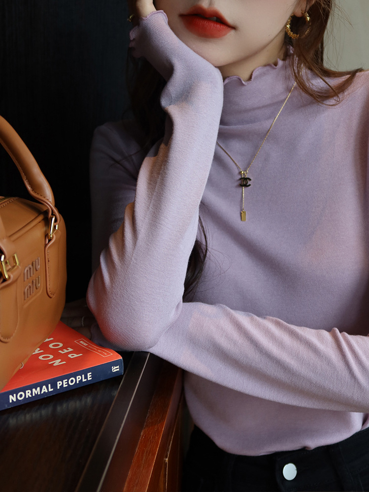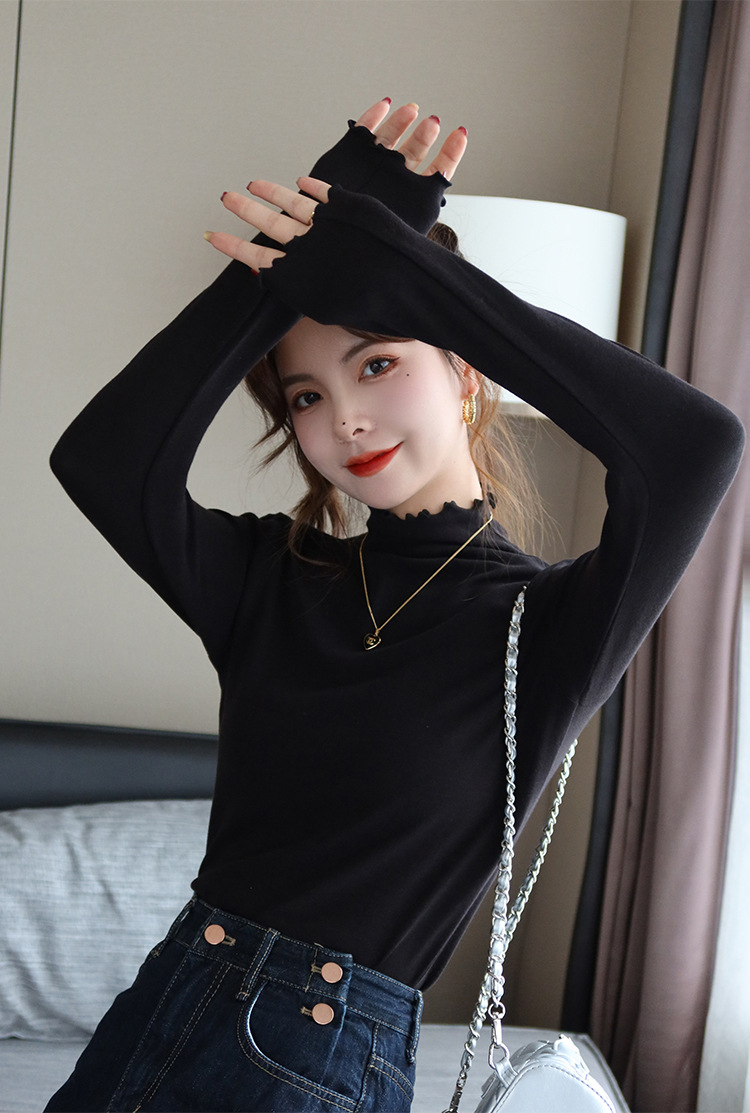 여성용 이너웨어 가을 겨울 하프 터틀넥 2025년 신상 고급스러운 러플 스타일 슬림핏 탑