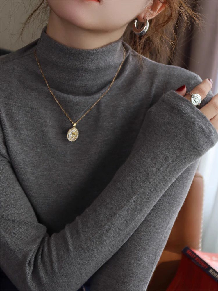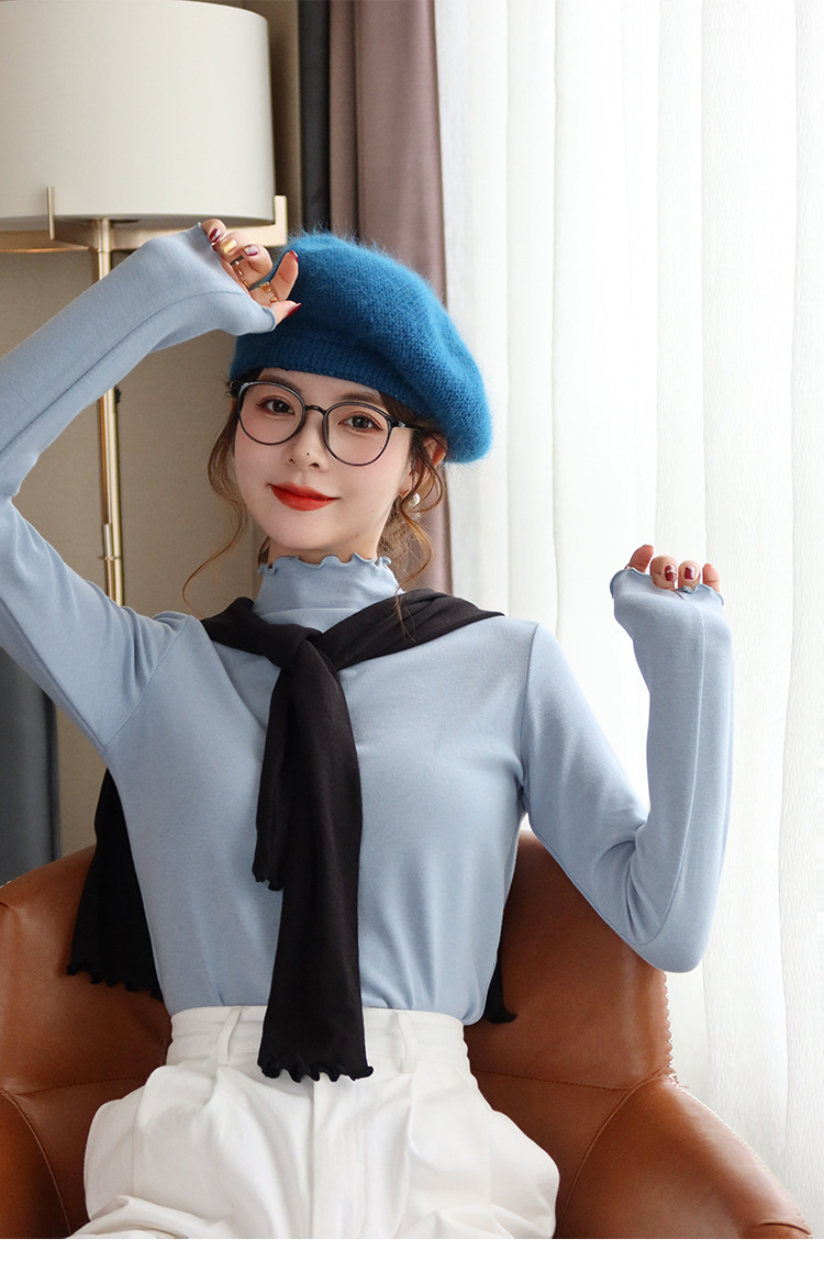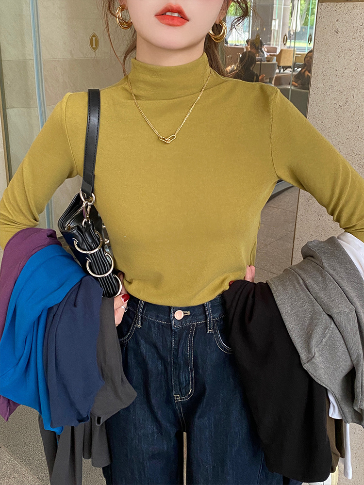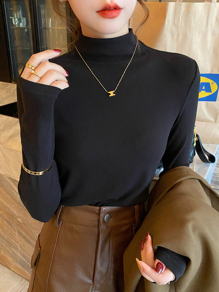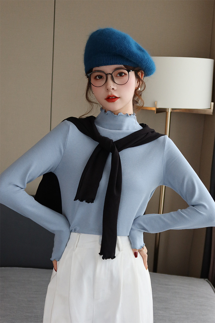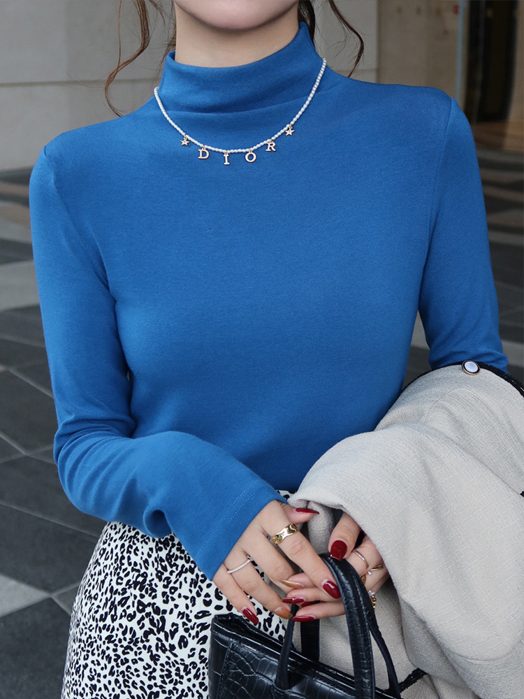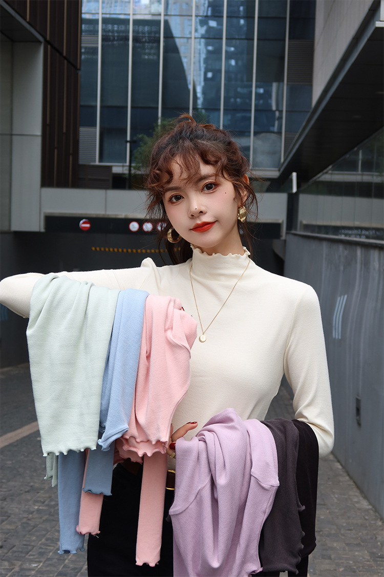 여성용 이너웨어 가을 겨울 하프 터틀넥 2025년 신상 고급스러운 러플 스타일 슬림핏 탑