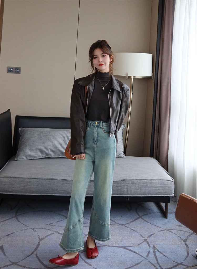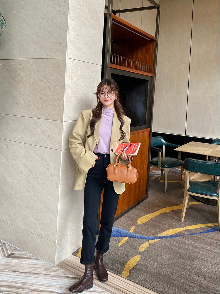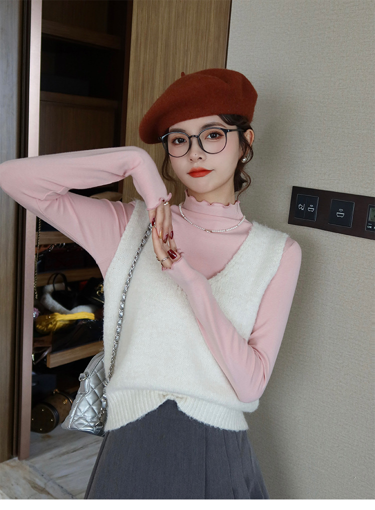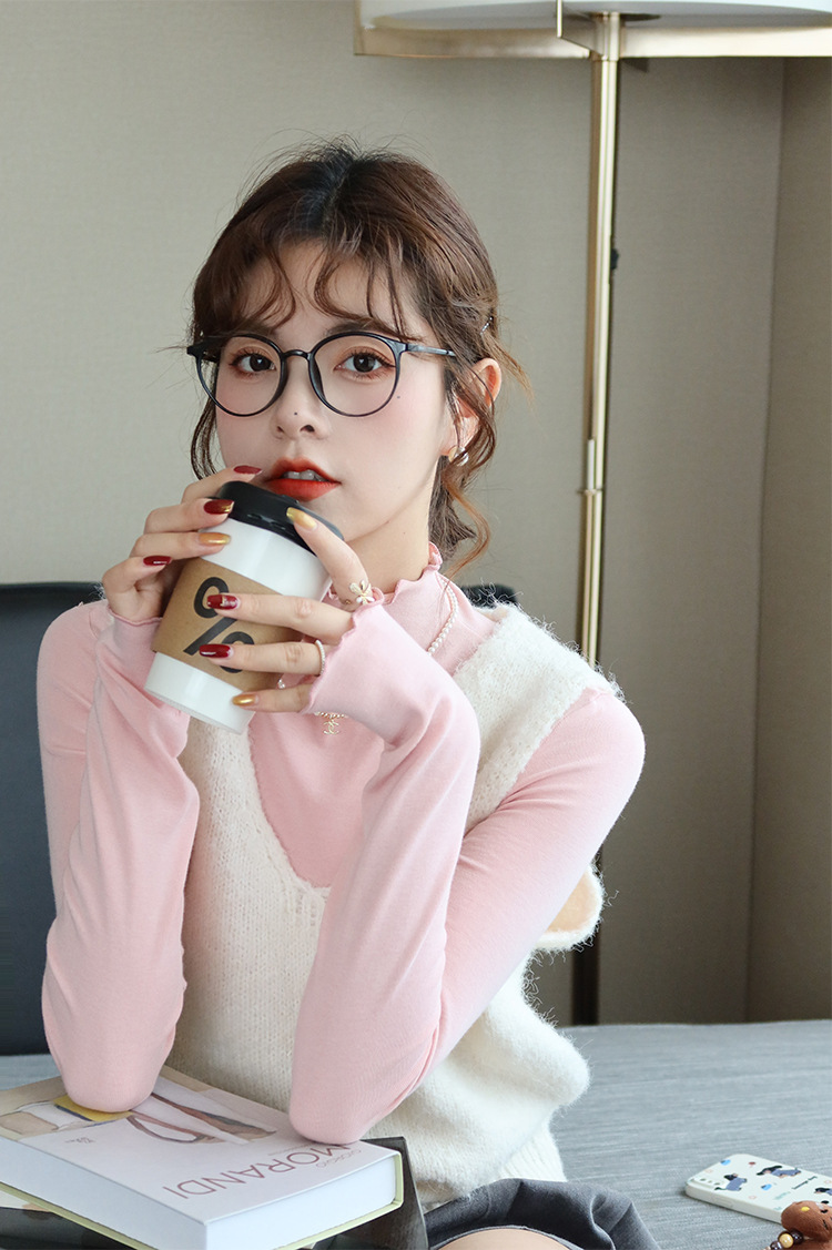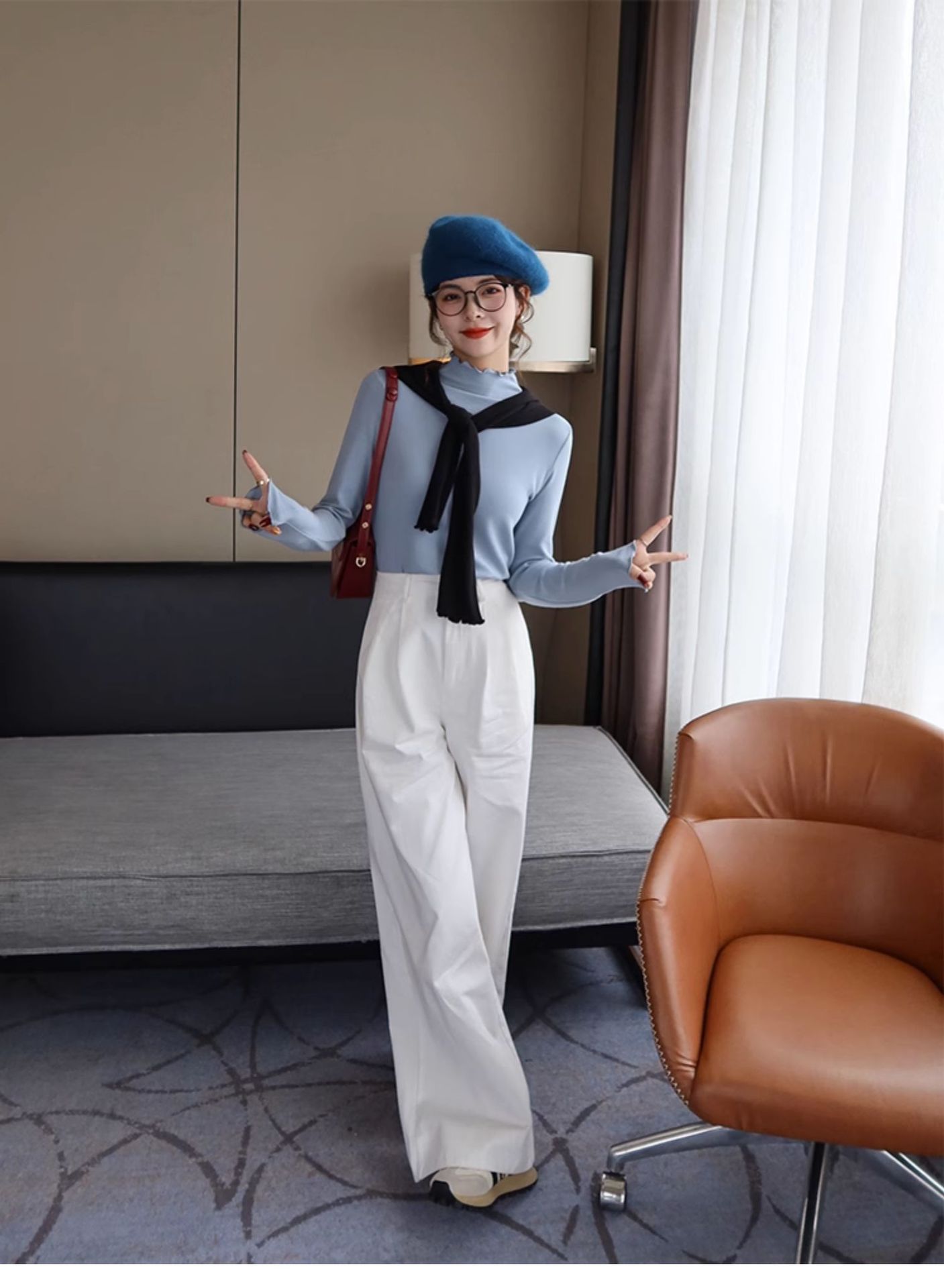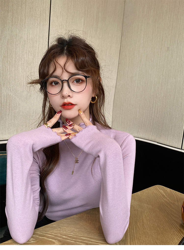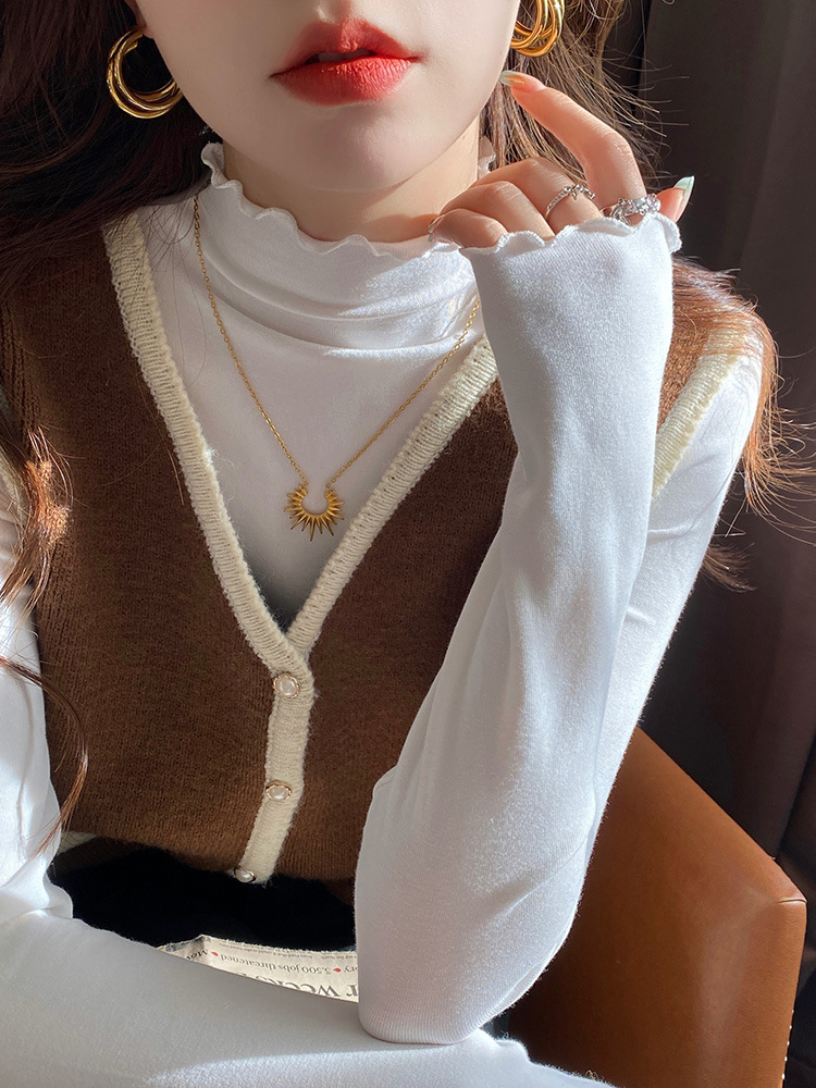 여성용 이너웨어 가을 겨울 하프 터틀넥 2025년 신상 고급스러운 러플 스타일 슬림핏 탑