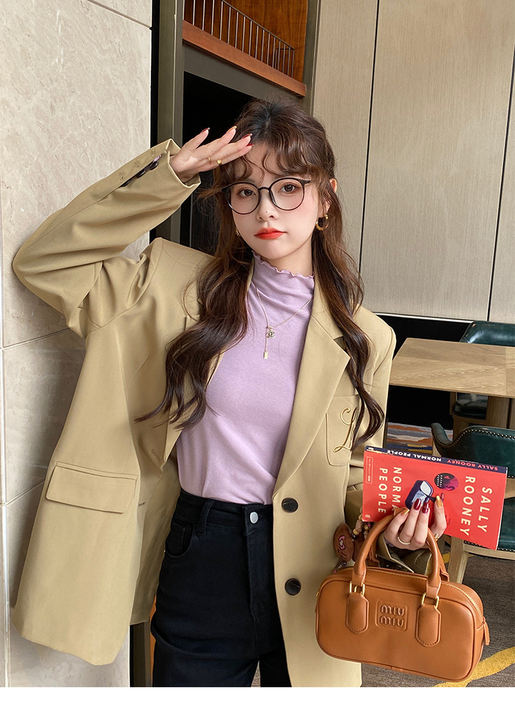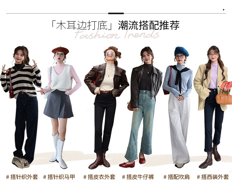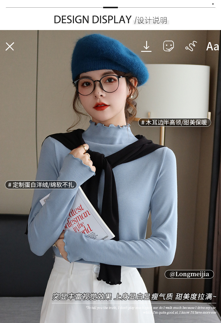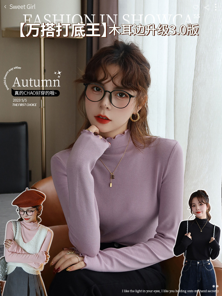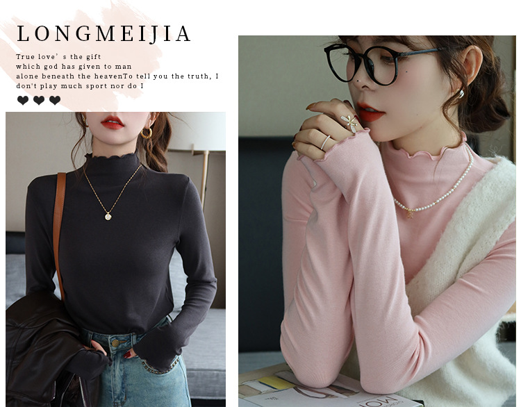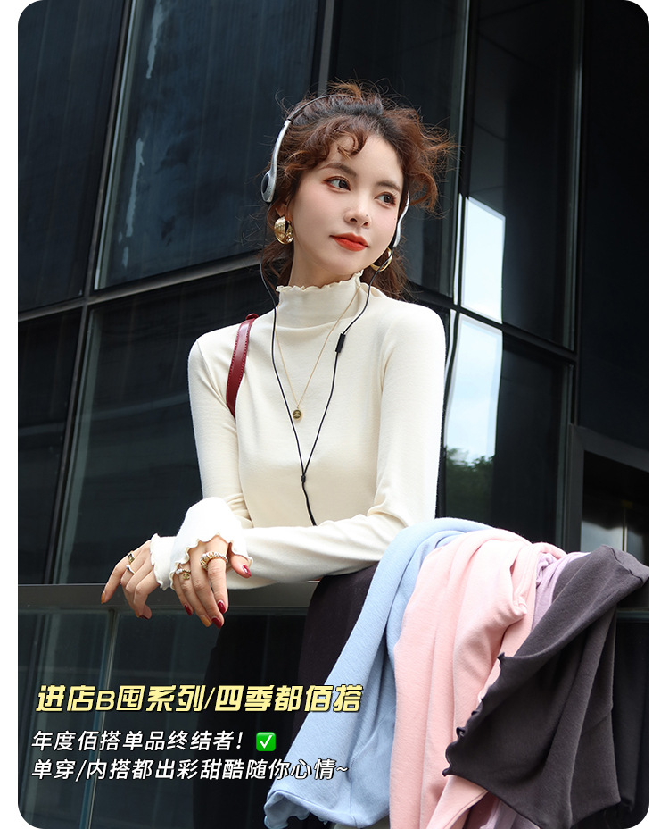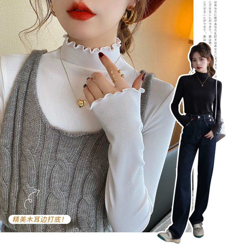 여성용 이너웨어 가을 겨울 하프 터틀넥 2025년 신상 고급스러운 러플 스타일 슬림핏 탑스토어 가기