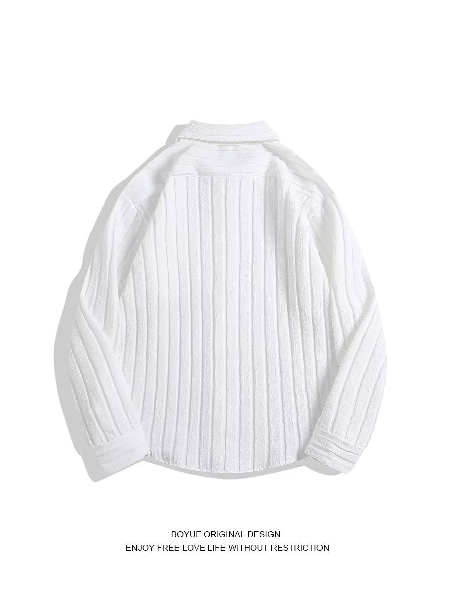 주름 줄무늬 레트로 긴팔 셔츠 남자의 단색 유행 옷깃 재킷 하이 엔드 릴 탑