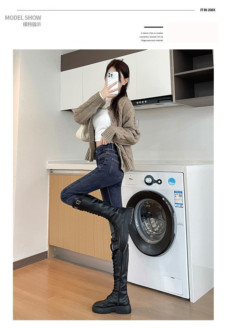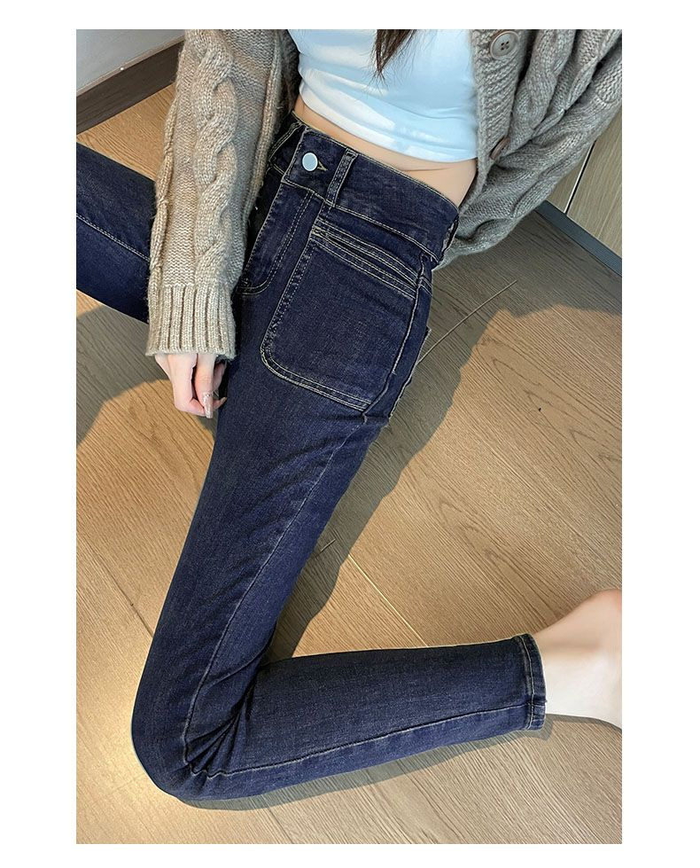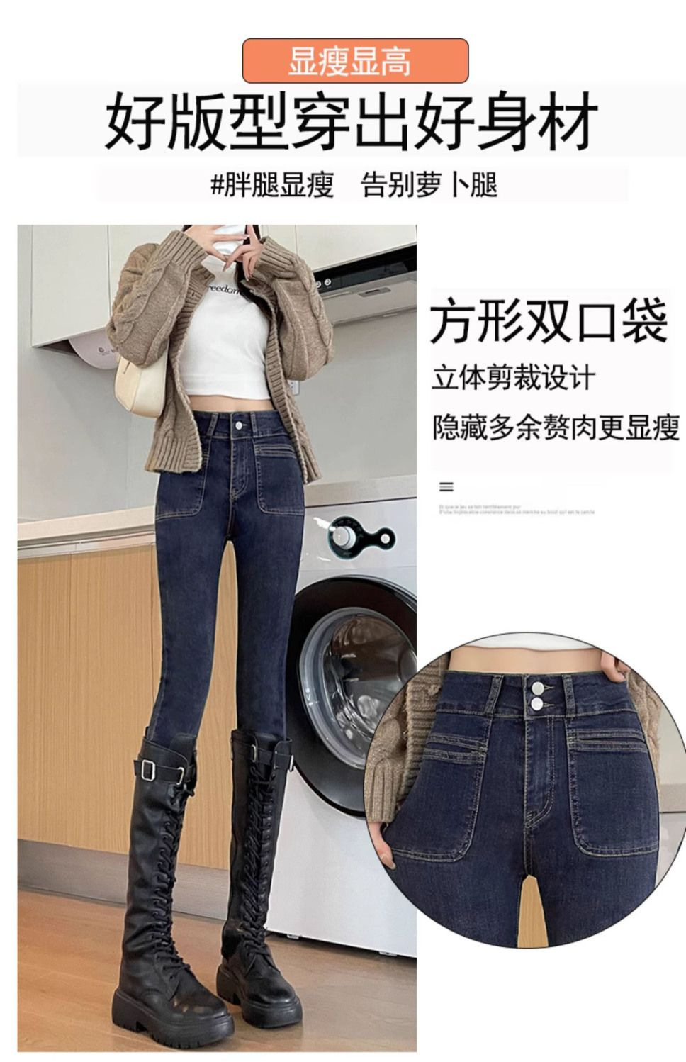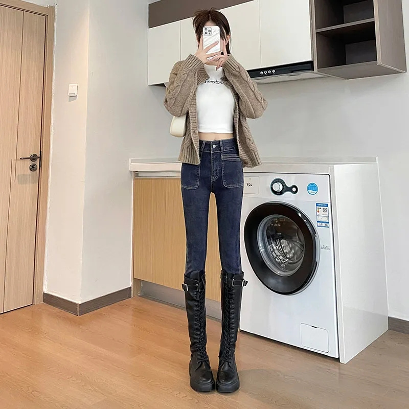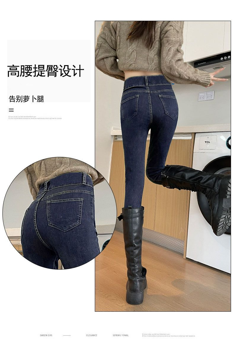 블루 연필 바지 트렌드 2024 새로운 높은 허리 청바지 여성의 꽉 작은 발 슬림 핏 슬림 핏 패션스토어 가기