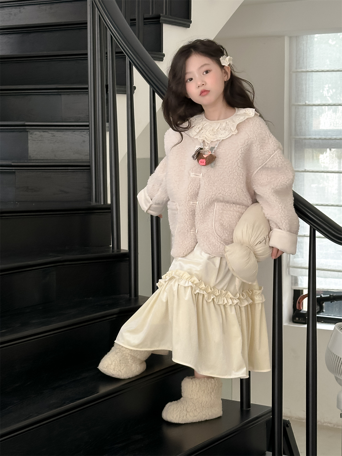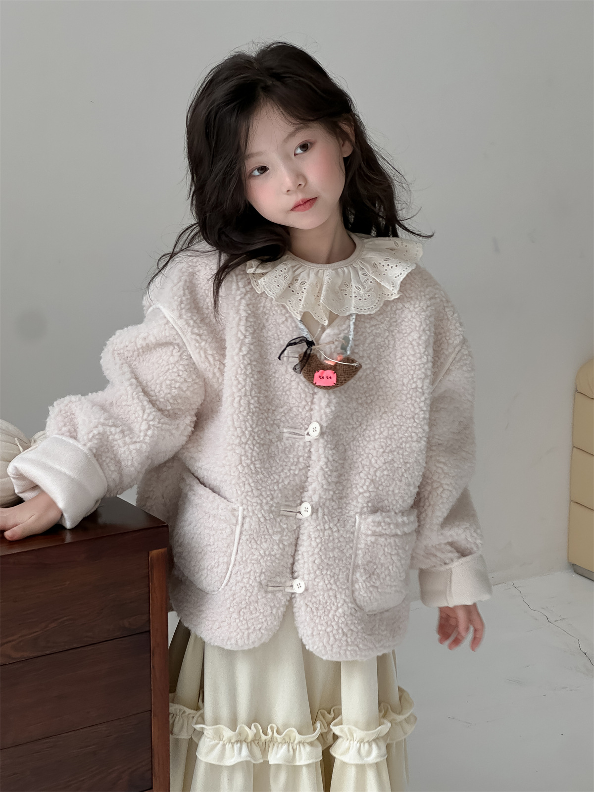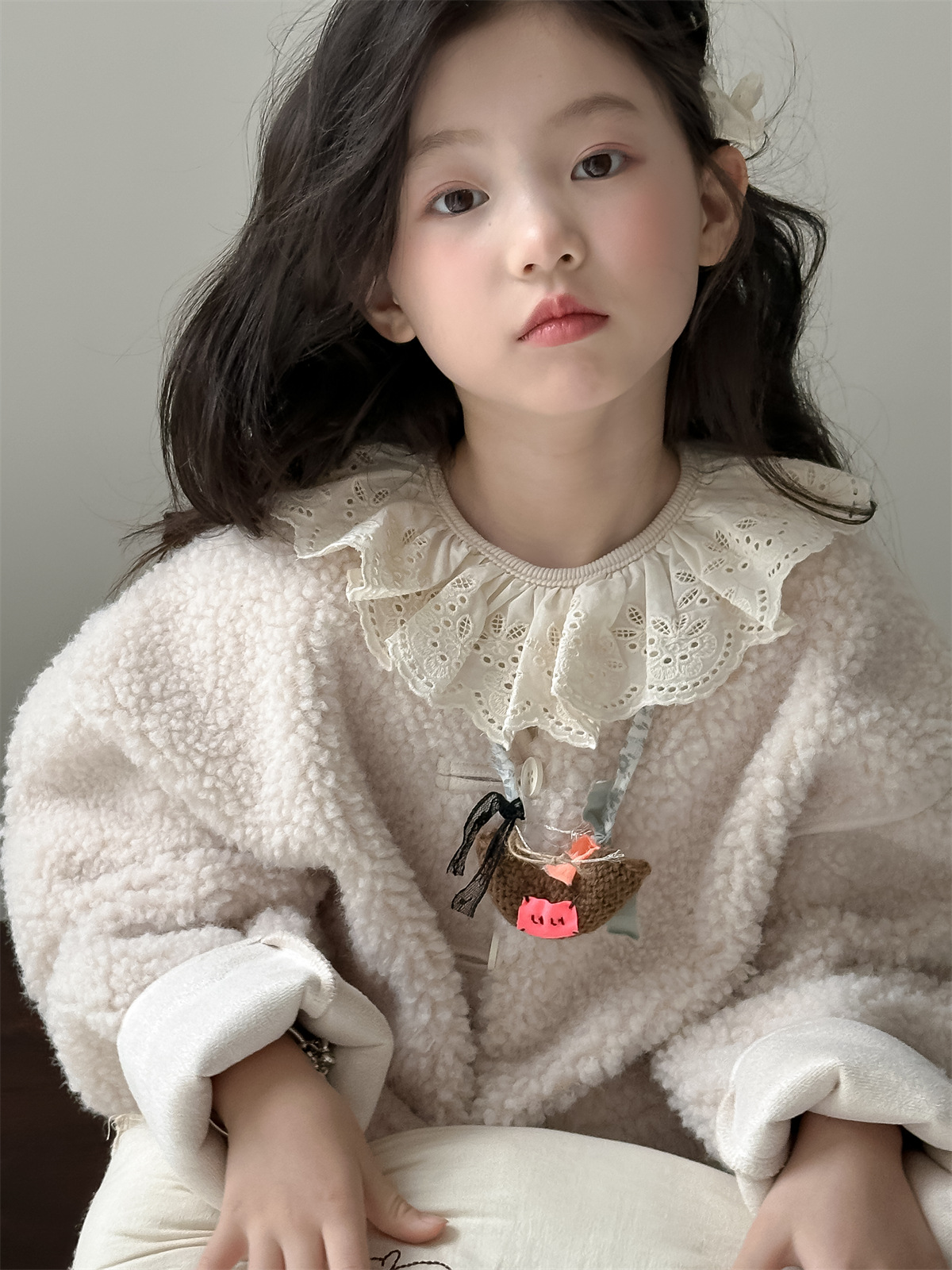 꽃과 한국 2024 새로운 겨울 소녀 마오 마오 코트 큰면 따뜻한 유행 코트 조수스토어 가기