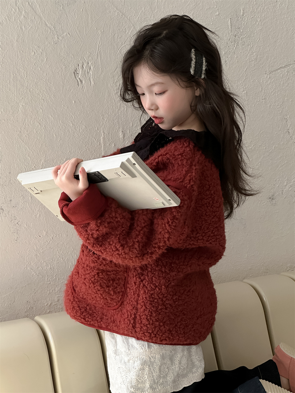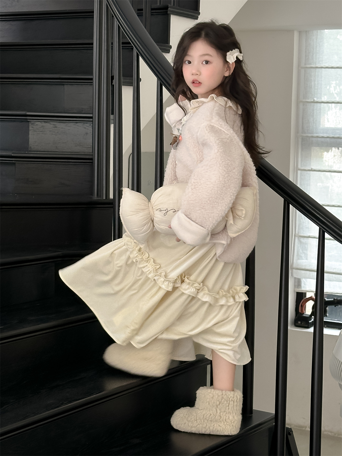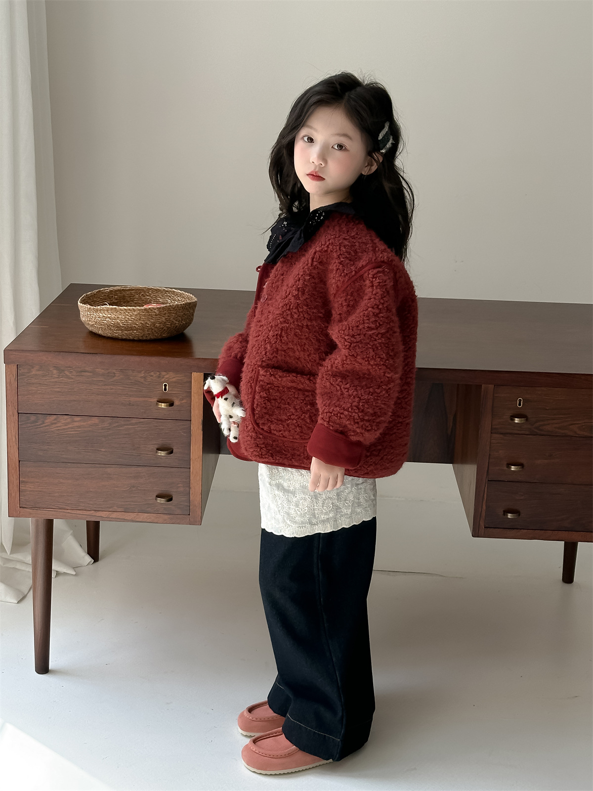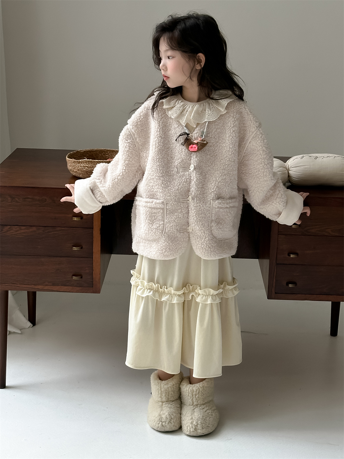 꽃과 한국 2024 새로운 겨울 소녀 마오 마오 코트 큰면 따뜻한 유행 코트 조수스토어 가기