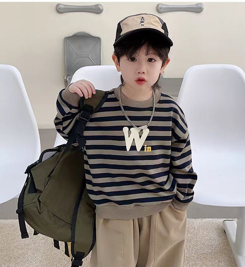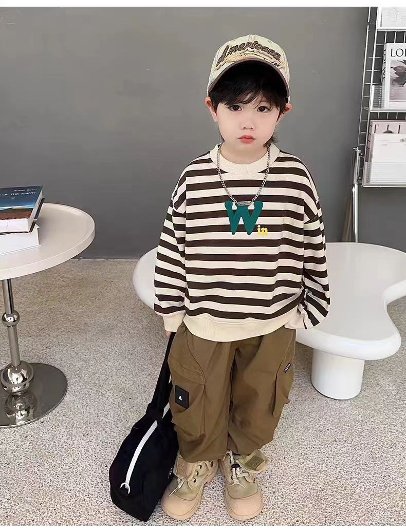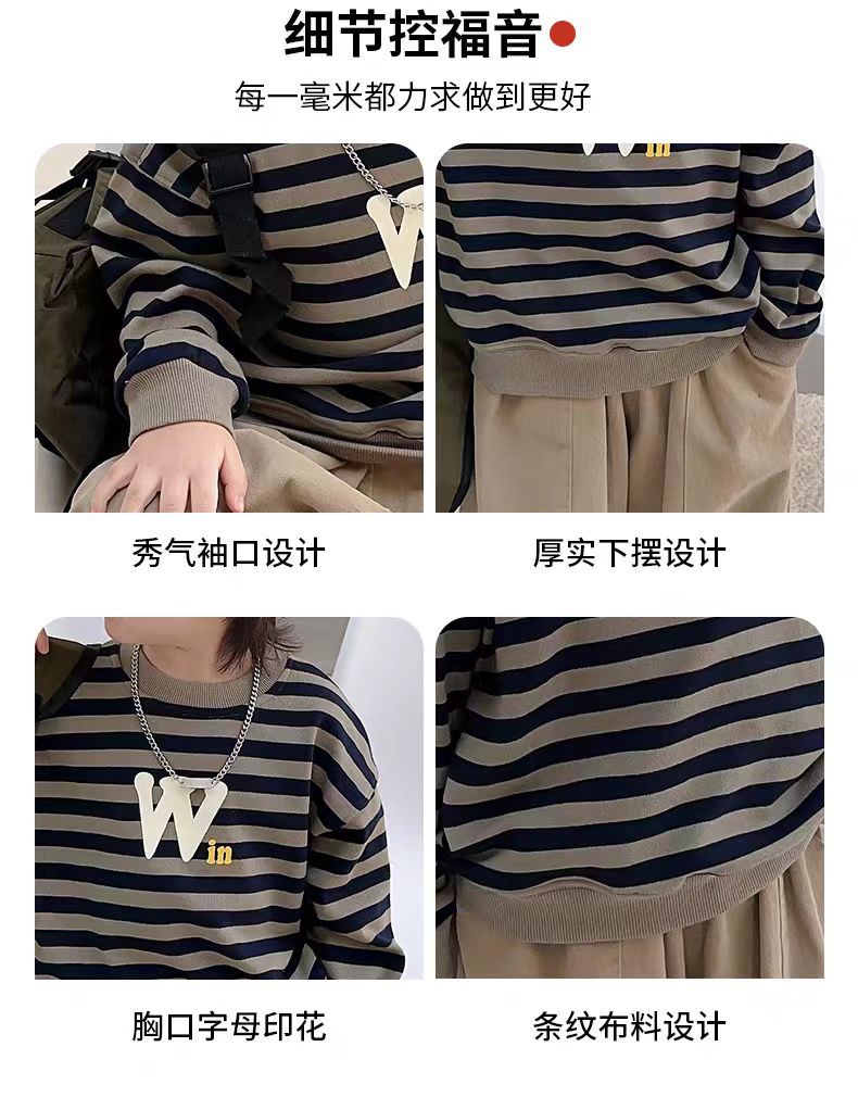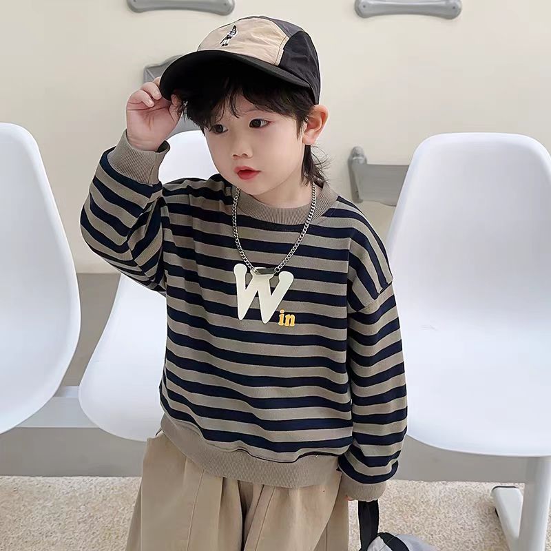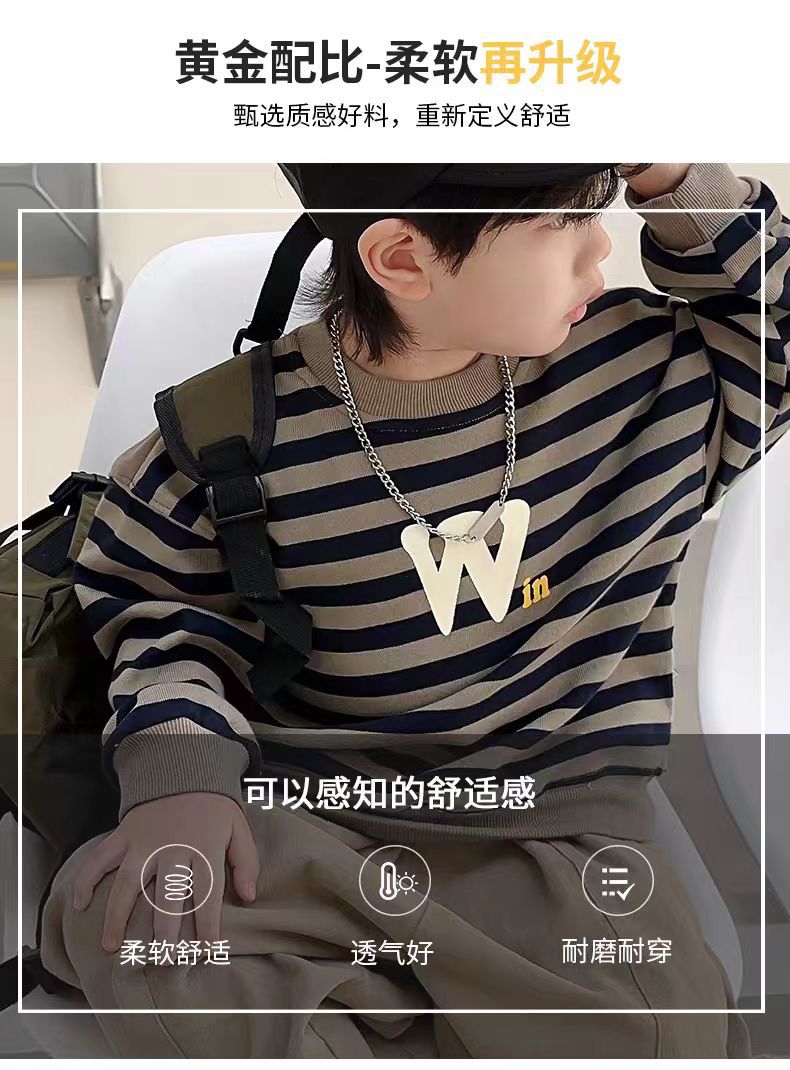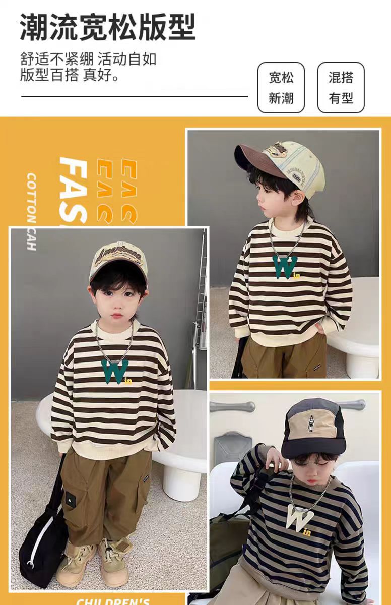 남학생 운동복 2024 년 봄과 가을 새로운 어린이 가을 긴팔 티셔츠 줄무늬 옷 소년 잘 생긴 최고 트렌디스토어 가기