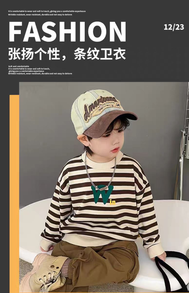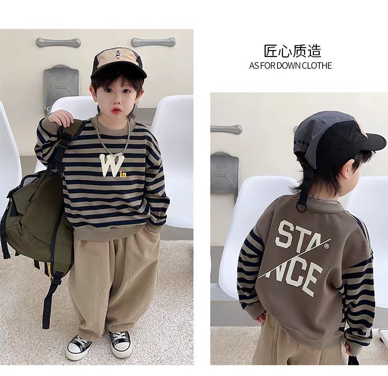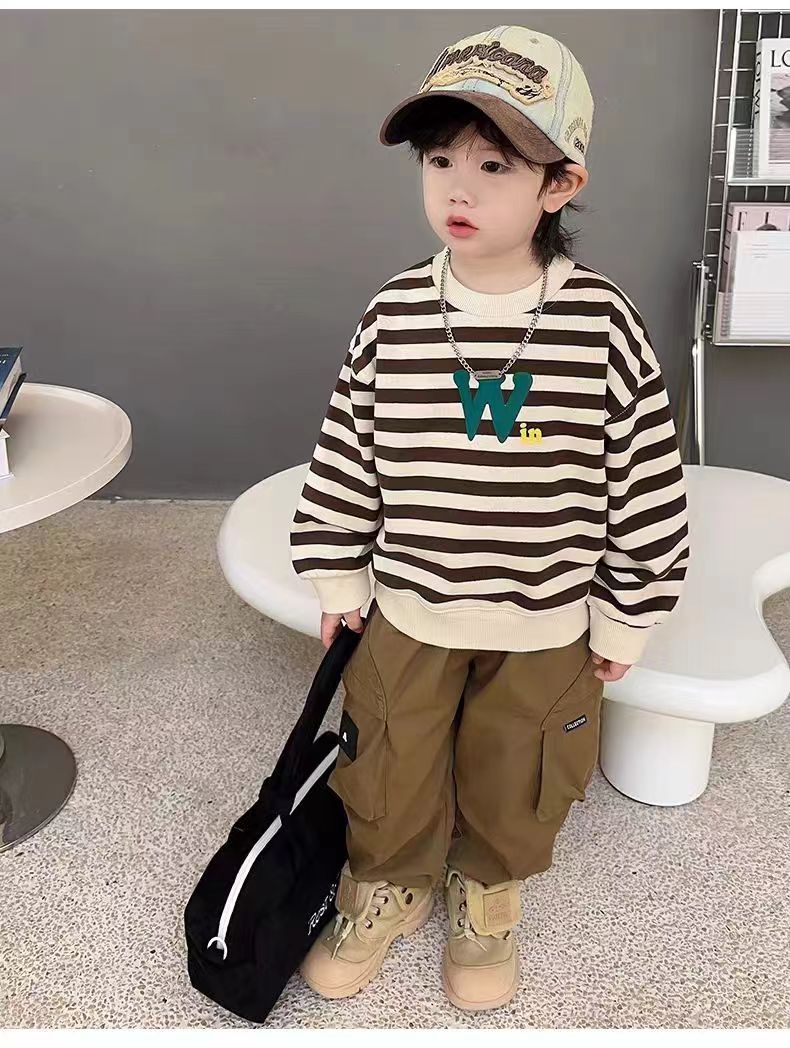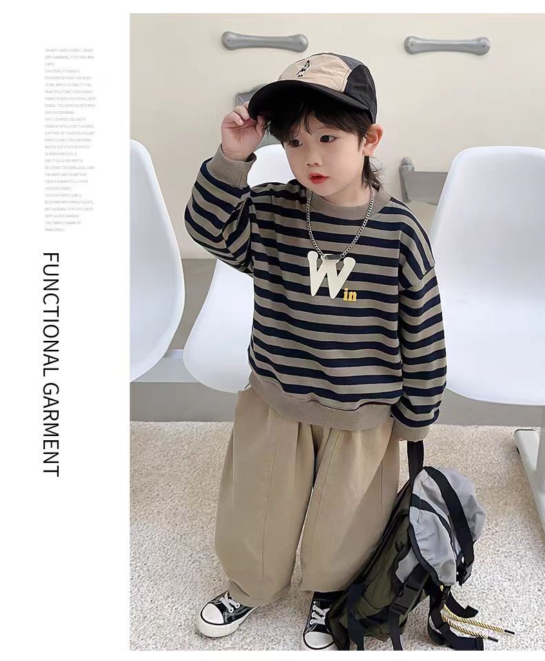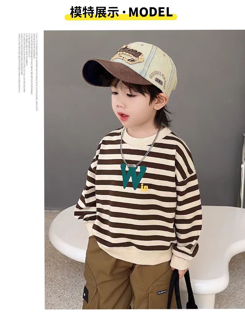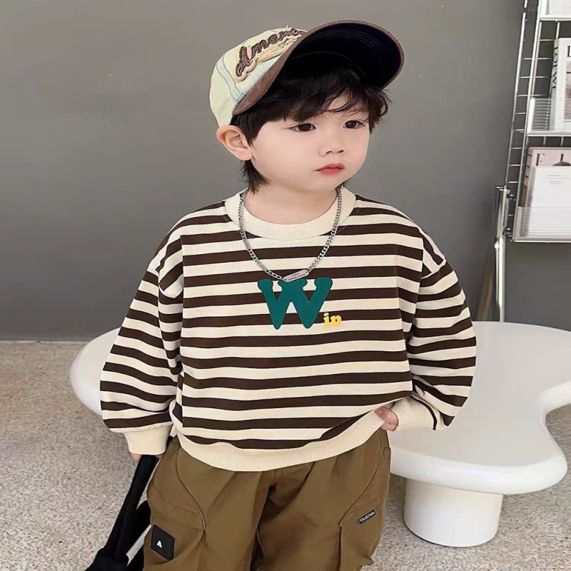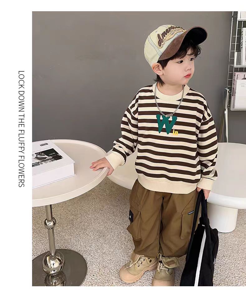 남학생 운동복 2024 년 봄과 가을 새로운 어린이 가을 긴팔 티셔츠 줄무늬 옷 소년 잘 생긴 최고 트렌디스토어 가기
