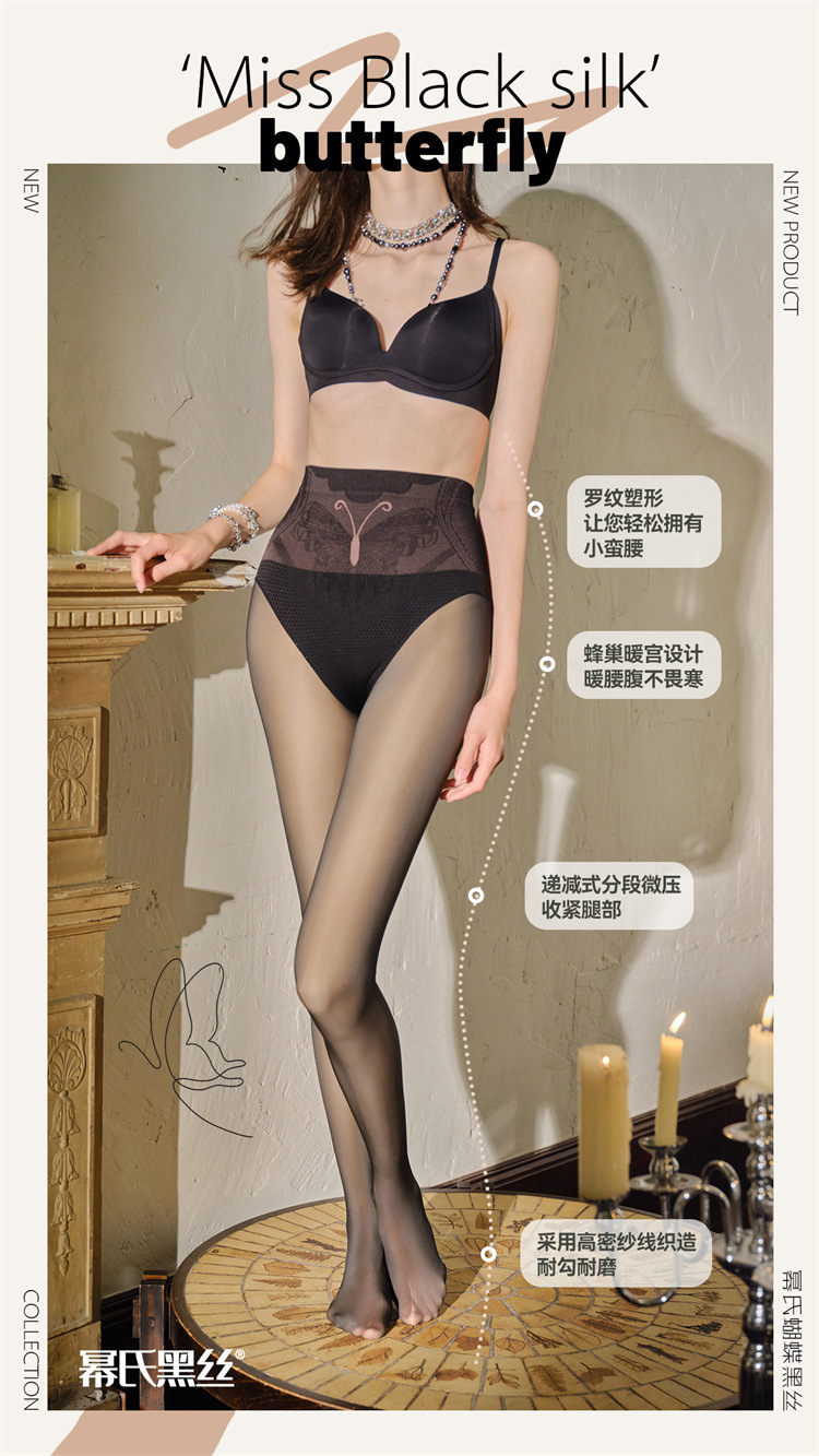 마이시 블랙 실크 팬티스타킹 200g 나비 양말 섹시한 블랙 투명 레그 웨어 레깅스 8 쉐이핑 힙업