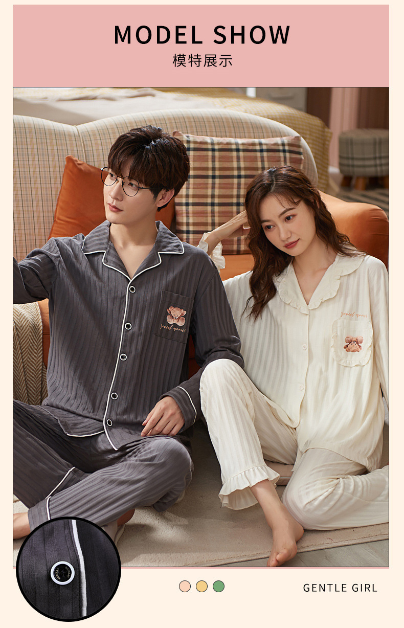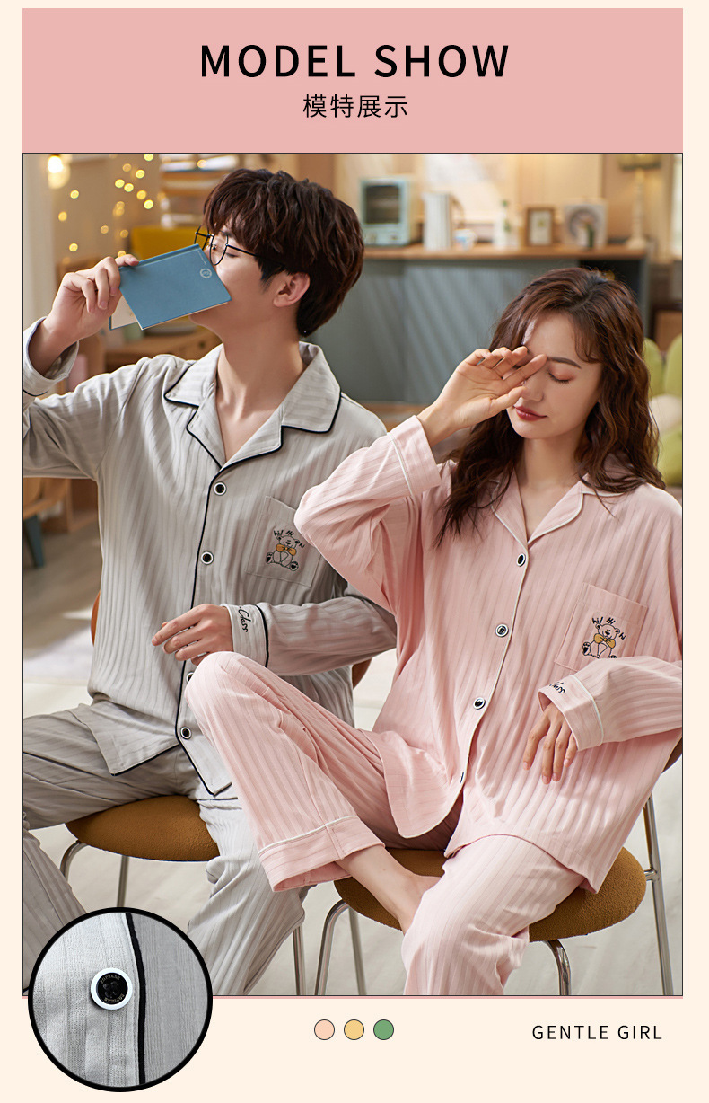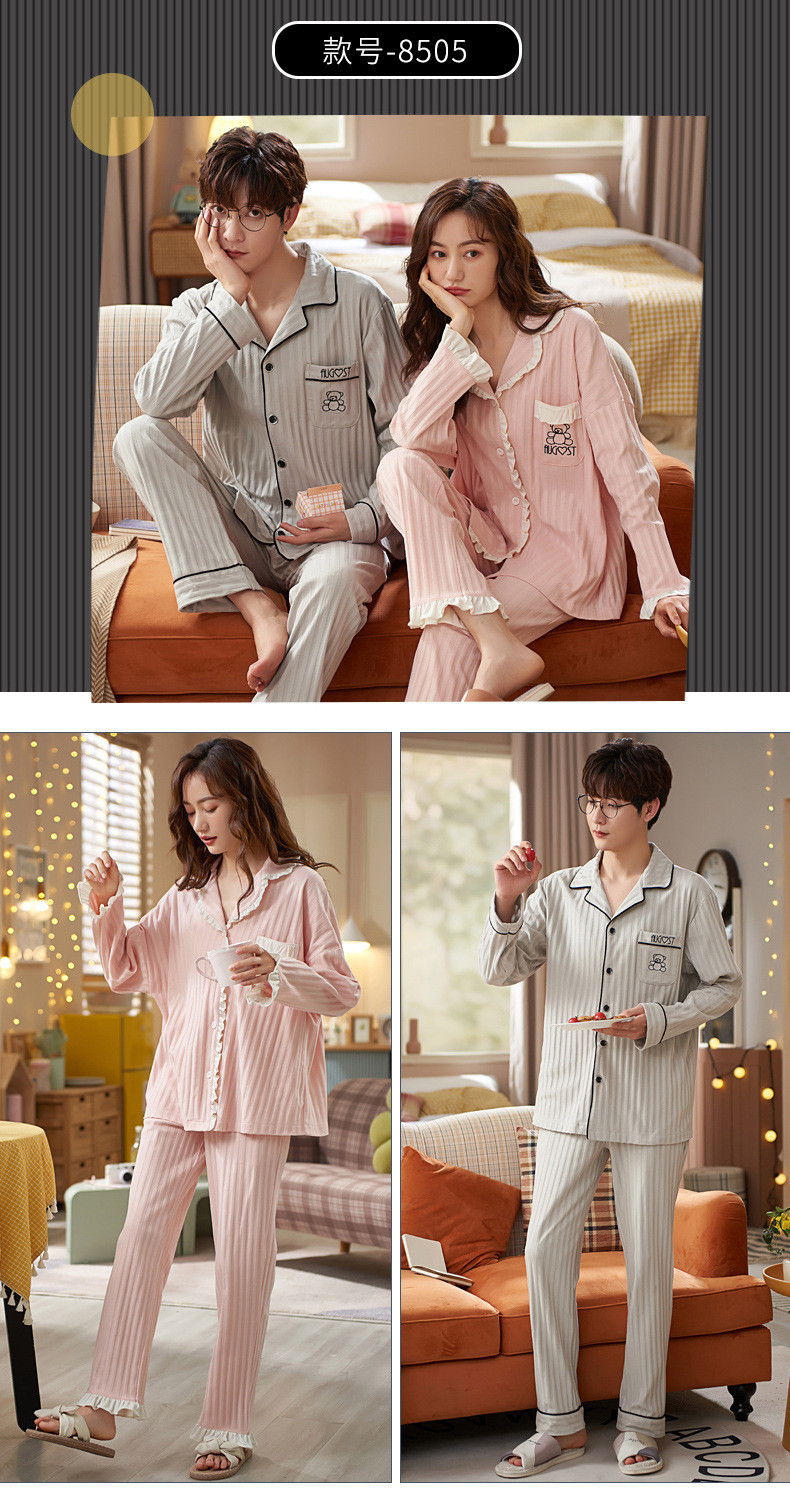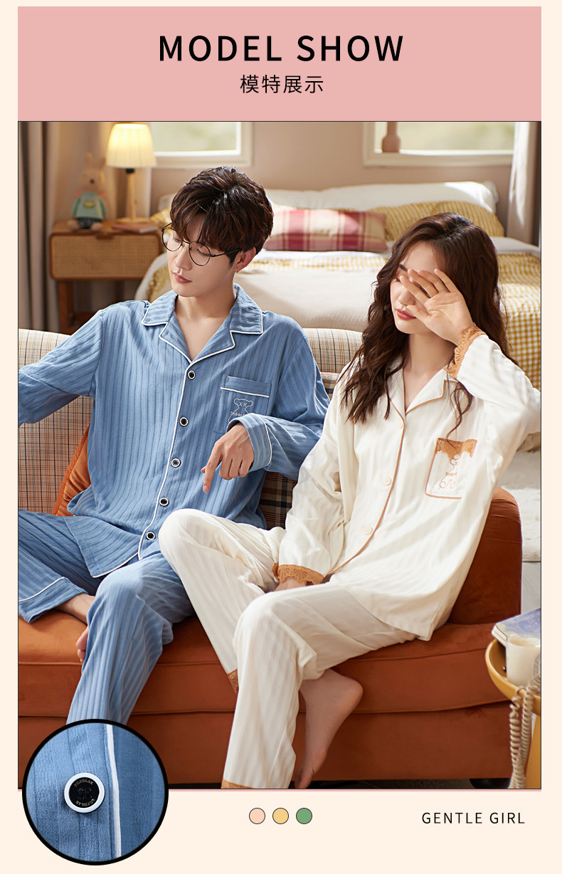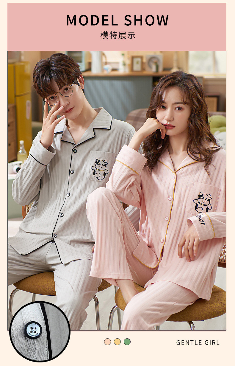 커플의 긴 소매 잠옷 면화 의류 카디건 옷깃 남녀 귀여운 플러스 사이즈 여성의 봄과 가을 가정 옷스토어 가기