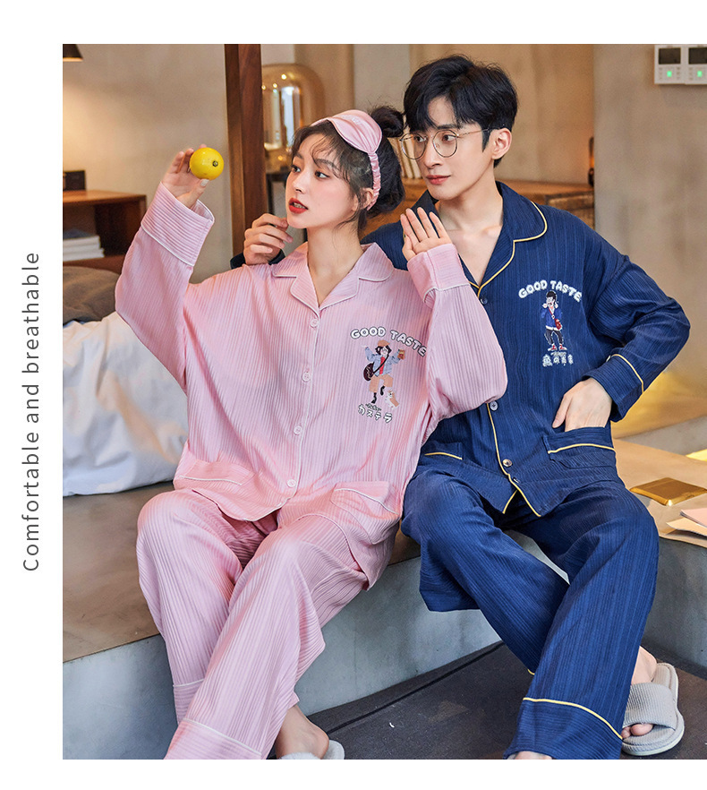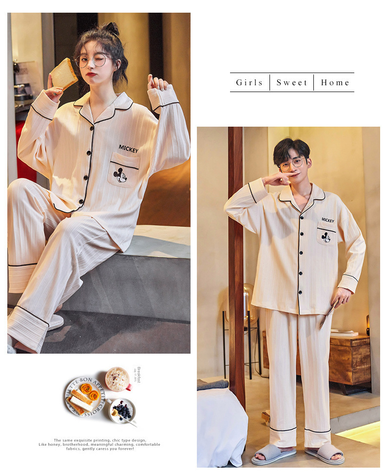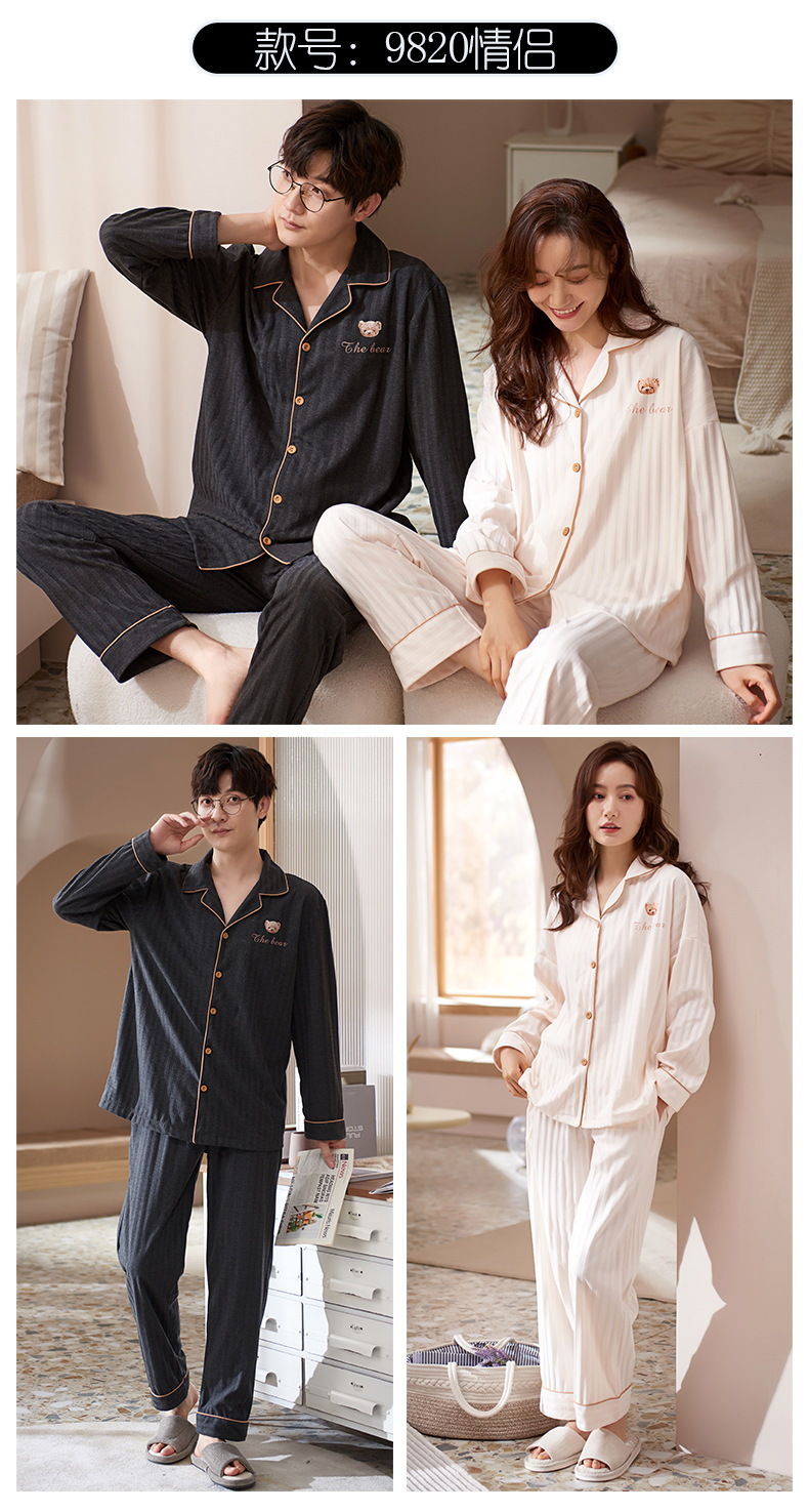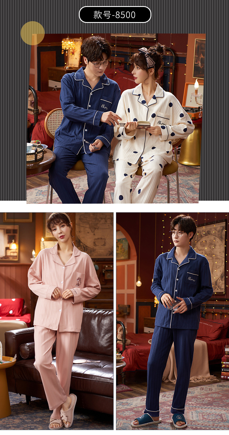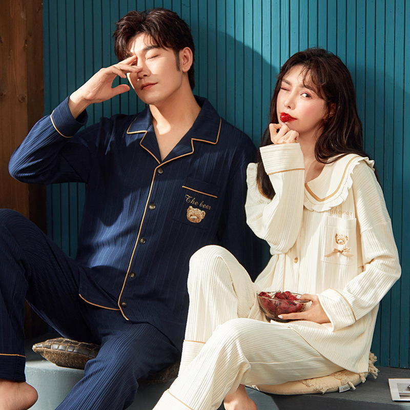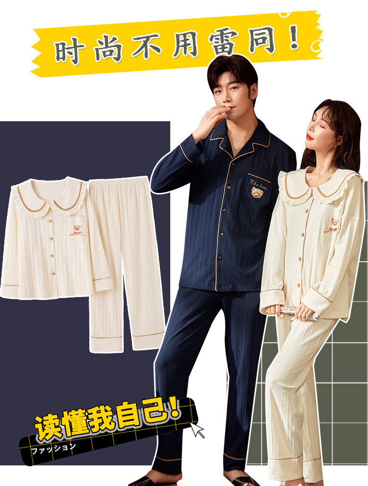 커플의 긴 소매 잠옷 면화 의류 카디건 옷깃 남녀 귀여운 플러스 사이즈 여성의 봄과 가을 가정 옷스토어 가기
