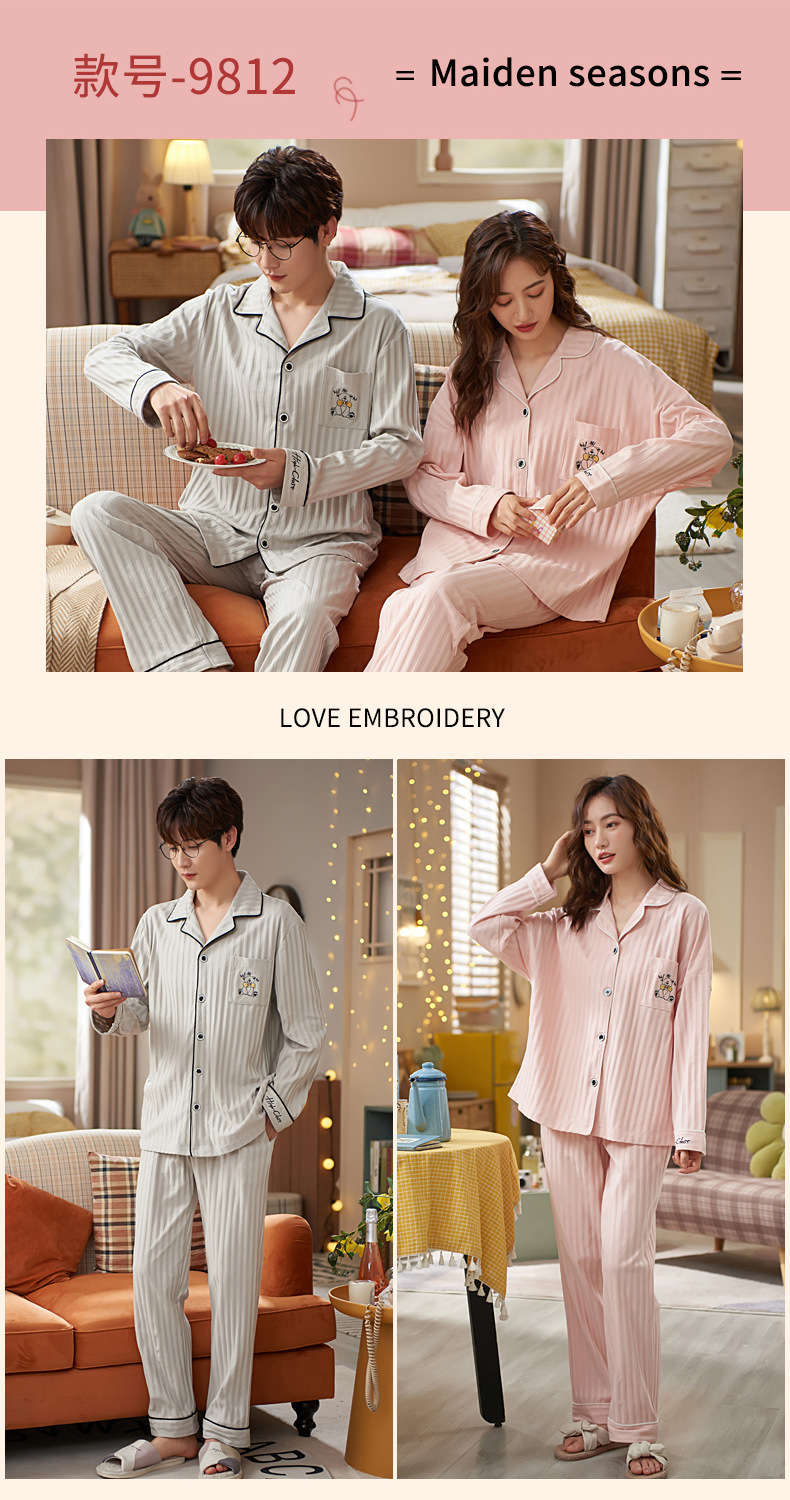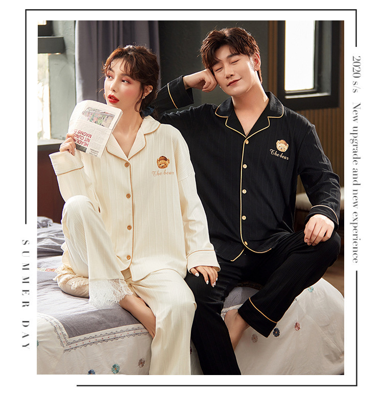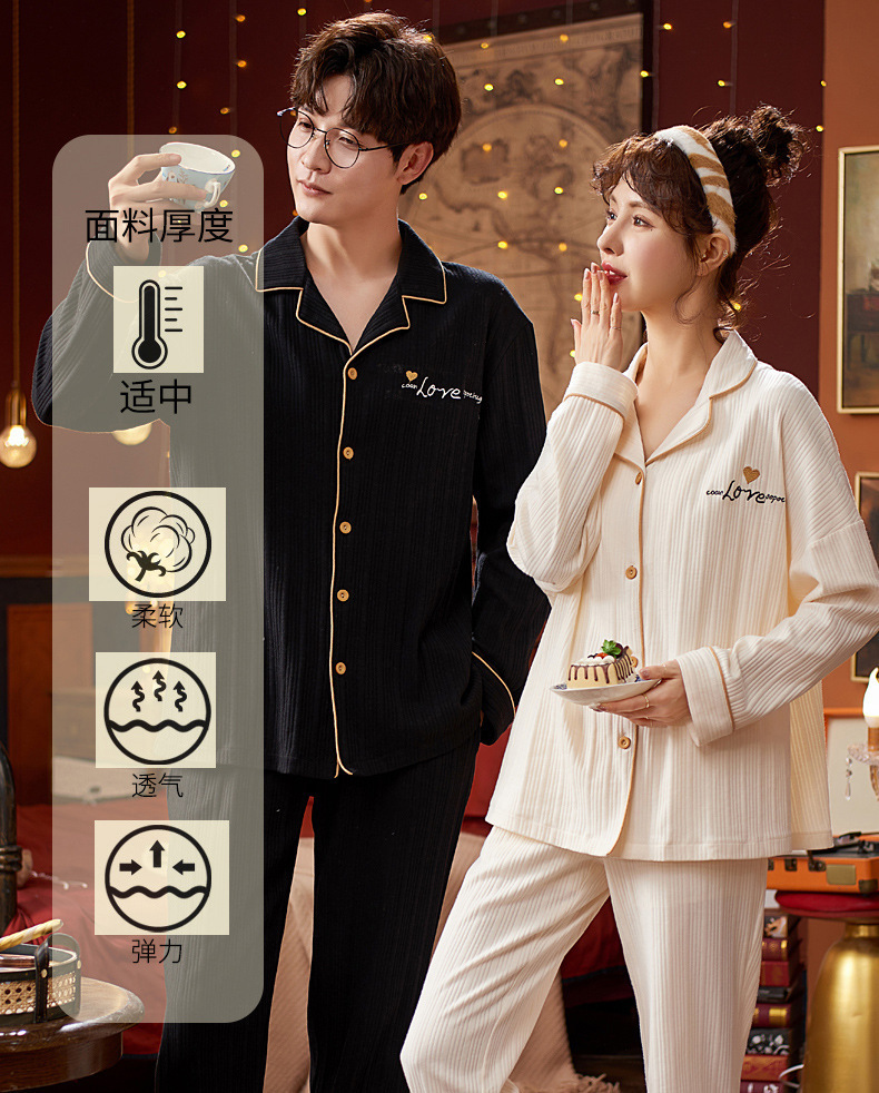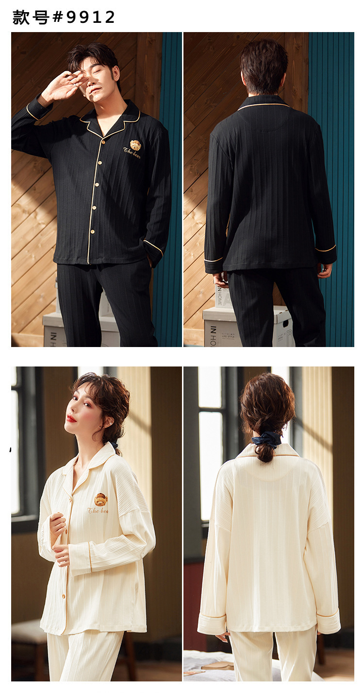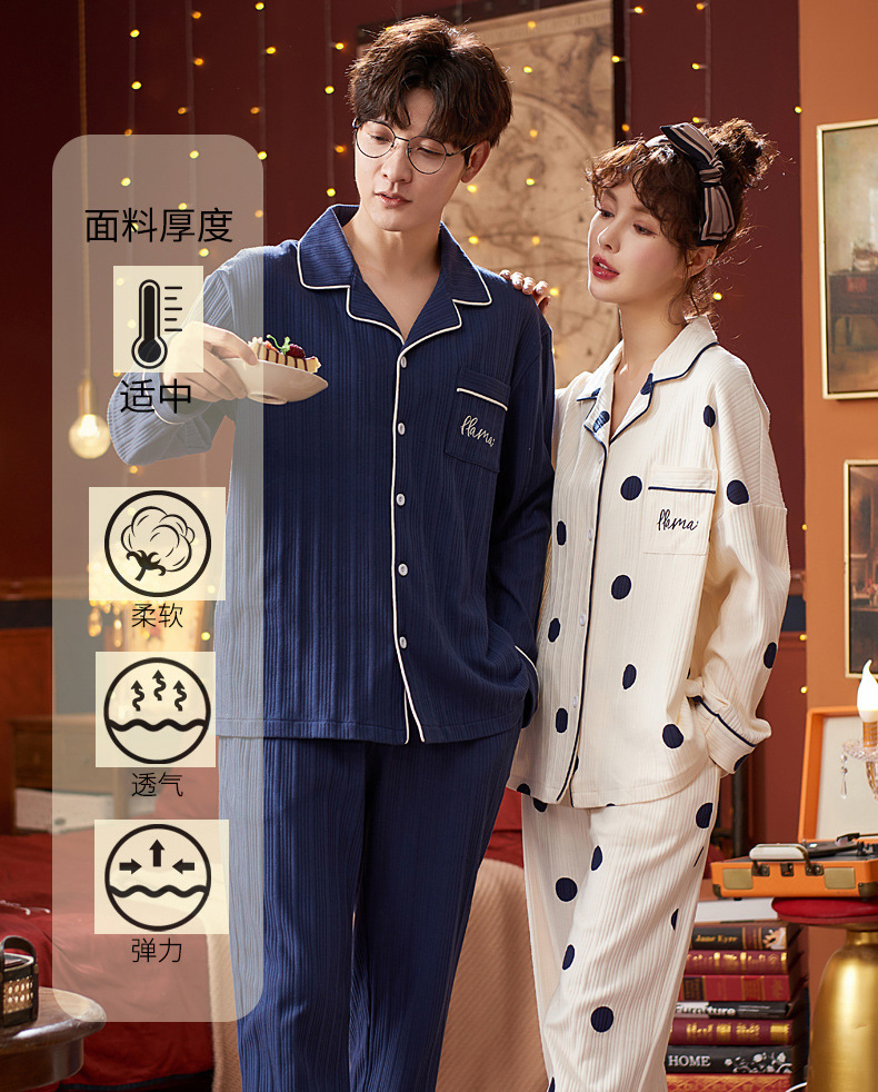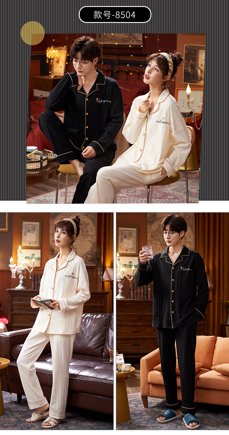 커플의 긴 소매 잠옷 면화 의류 카디건 옷깃 남녀 귀여운 플러스 사이즈 여성의 봄과 가을 가정 옷스토어 가기