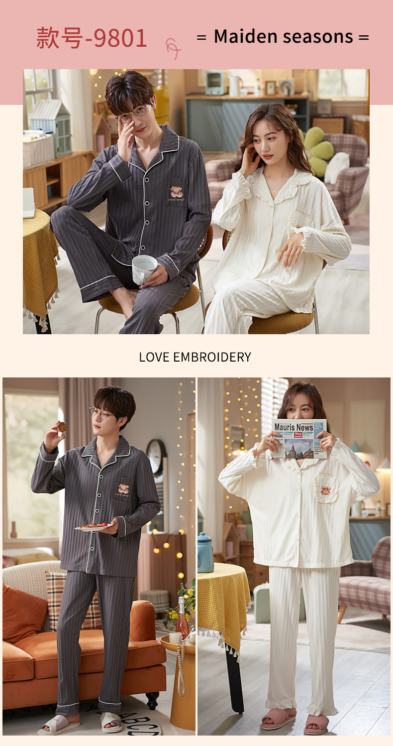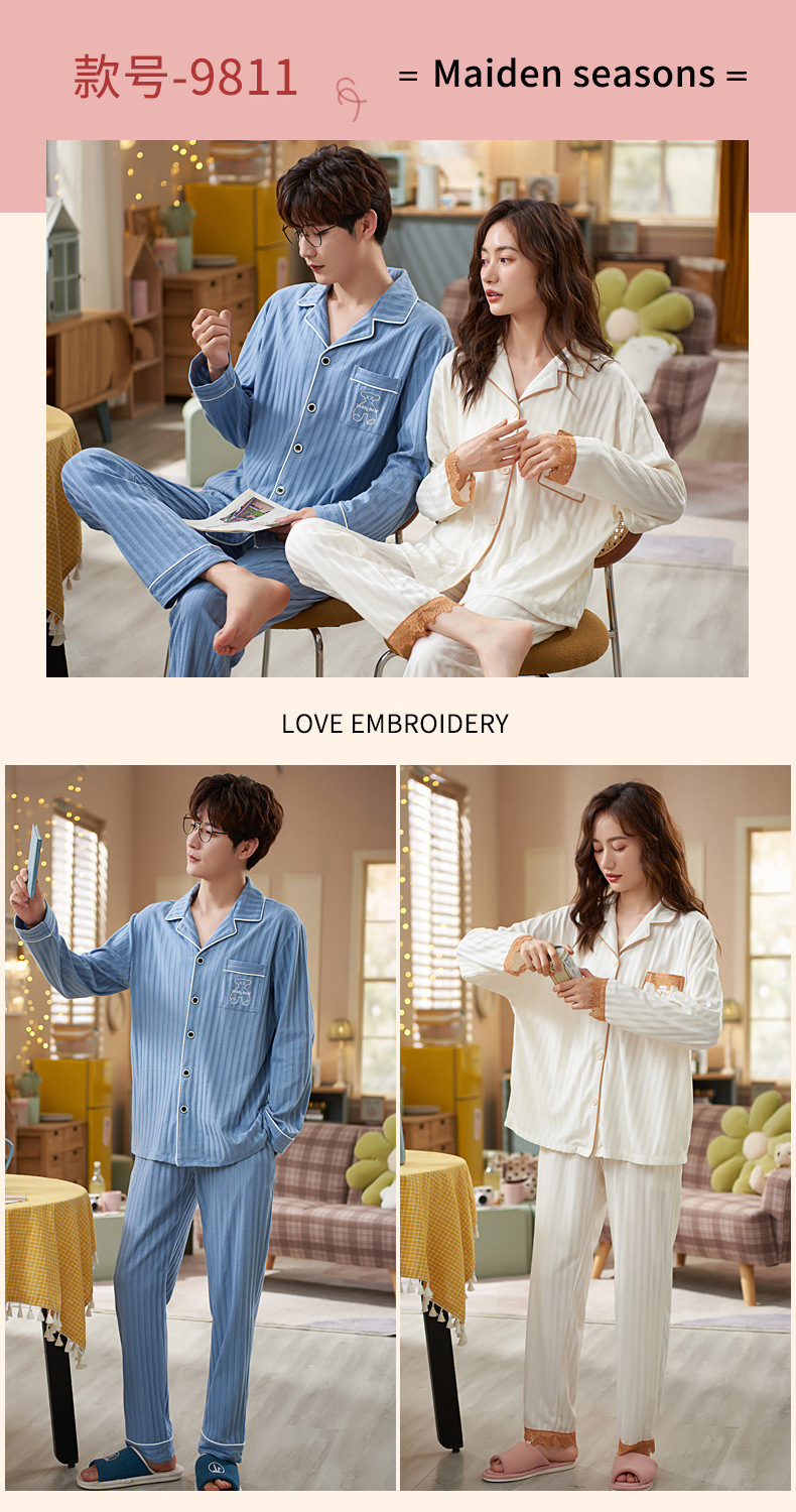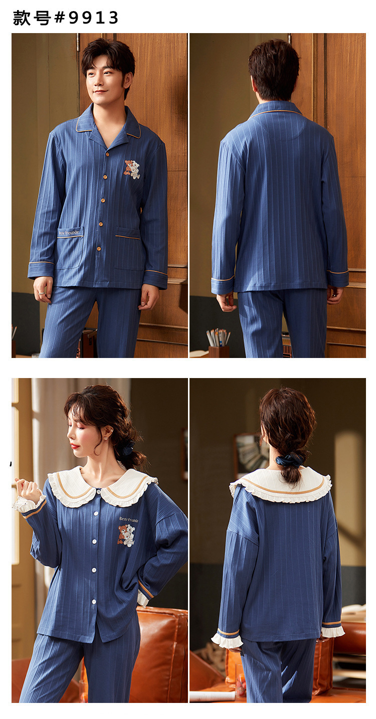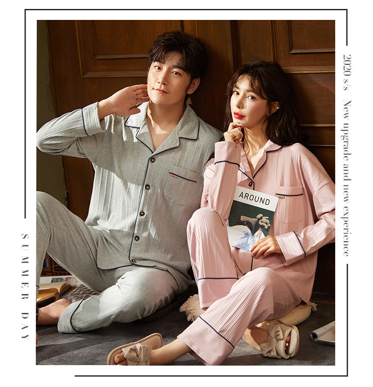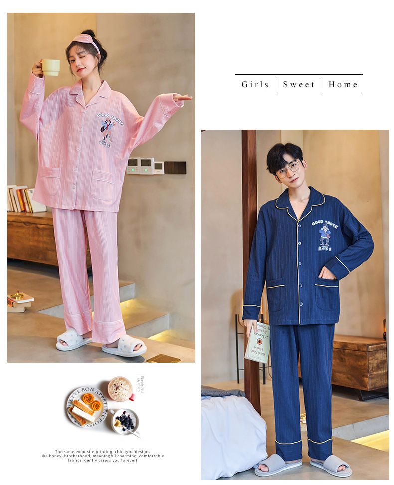 커플의 긴 소매 잠옷 면화 의류 카디건 옷깃 남녀 귀여운 플러스 사이즈 여성의 봄과 가을 가정 옷