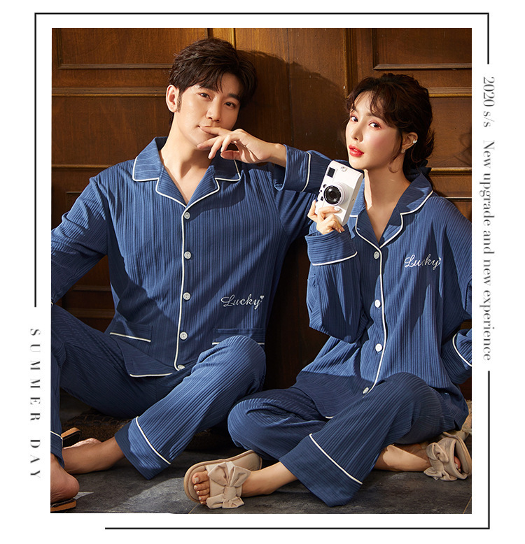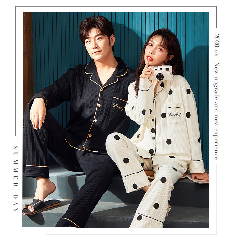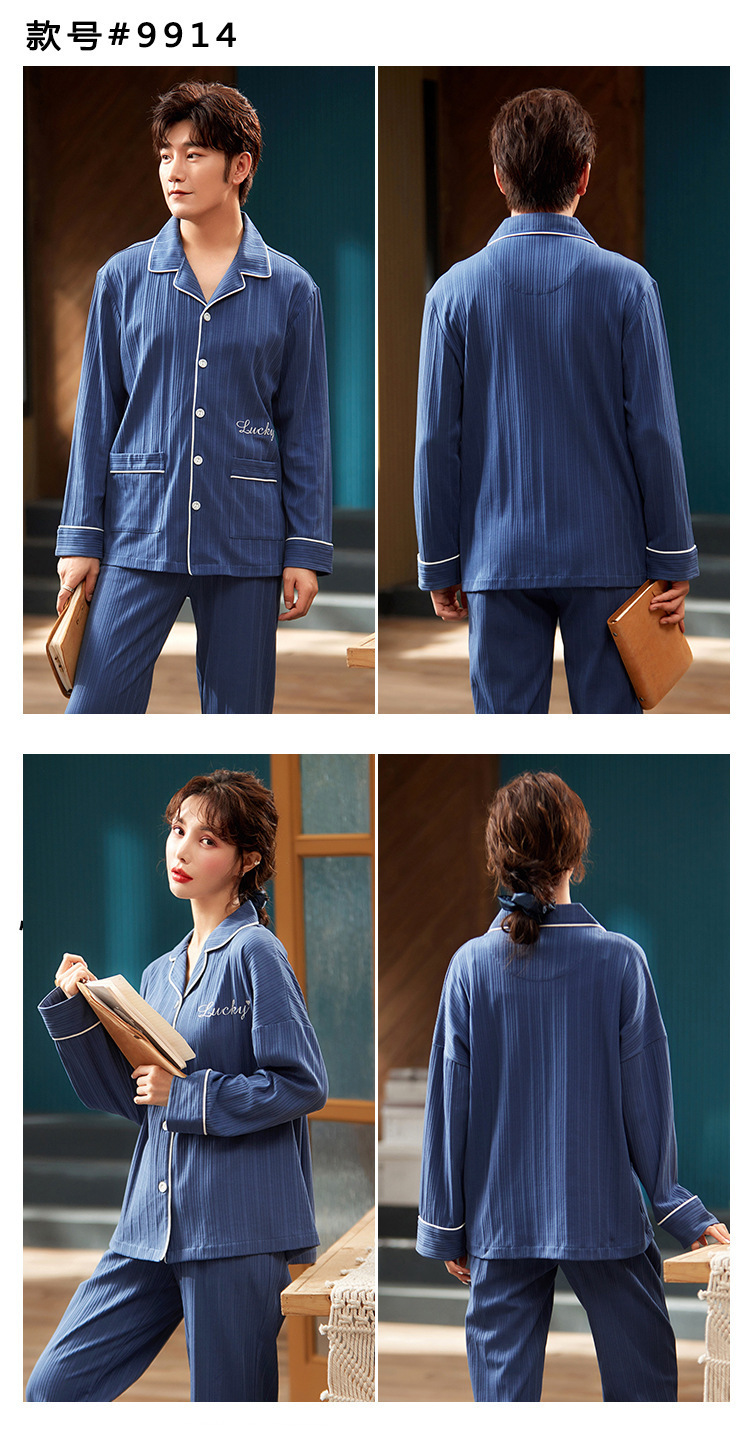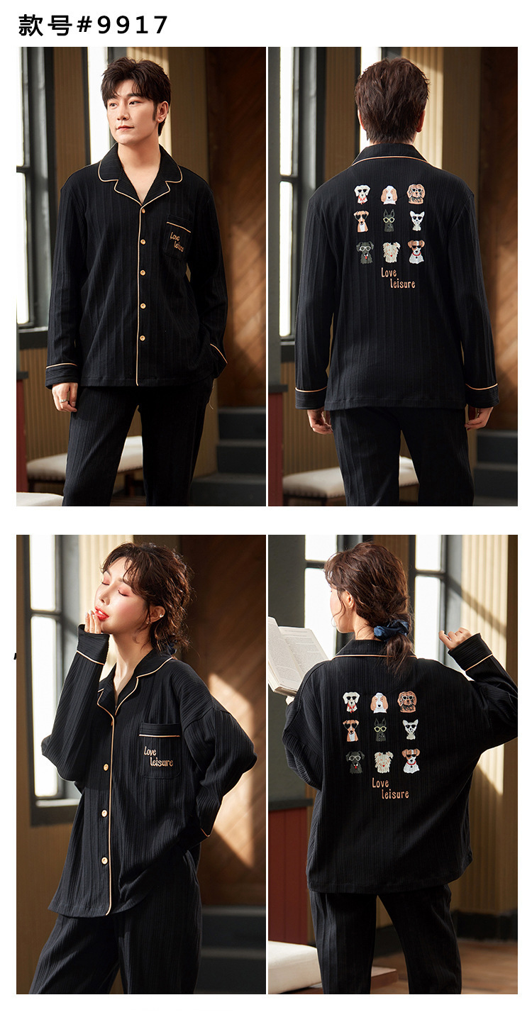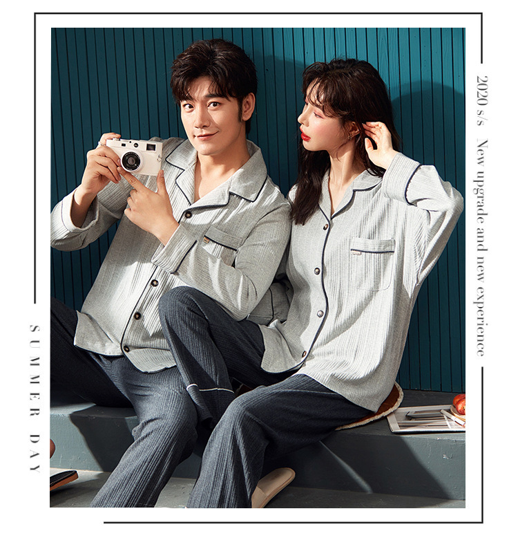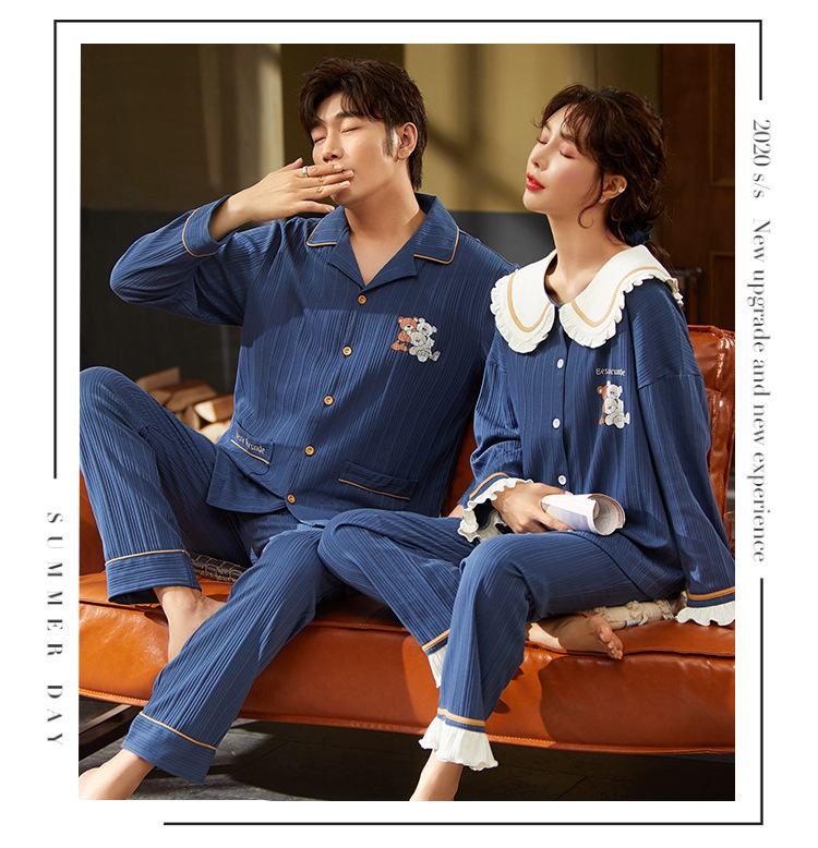 커플의 긴 소매 잠옷 면화 의류 카디건 옷깃 남녀 귀여운 플러스 사이즈 여성의 봄과 가을 가정 옷