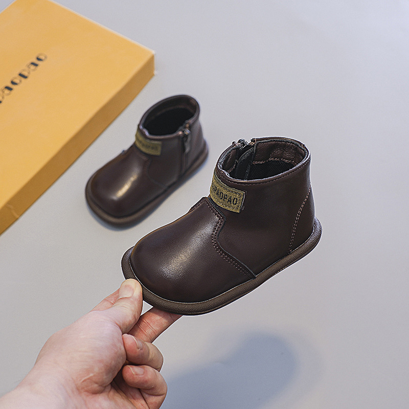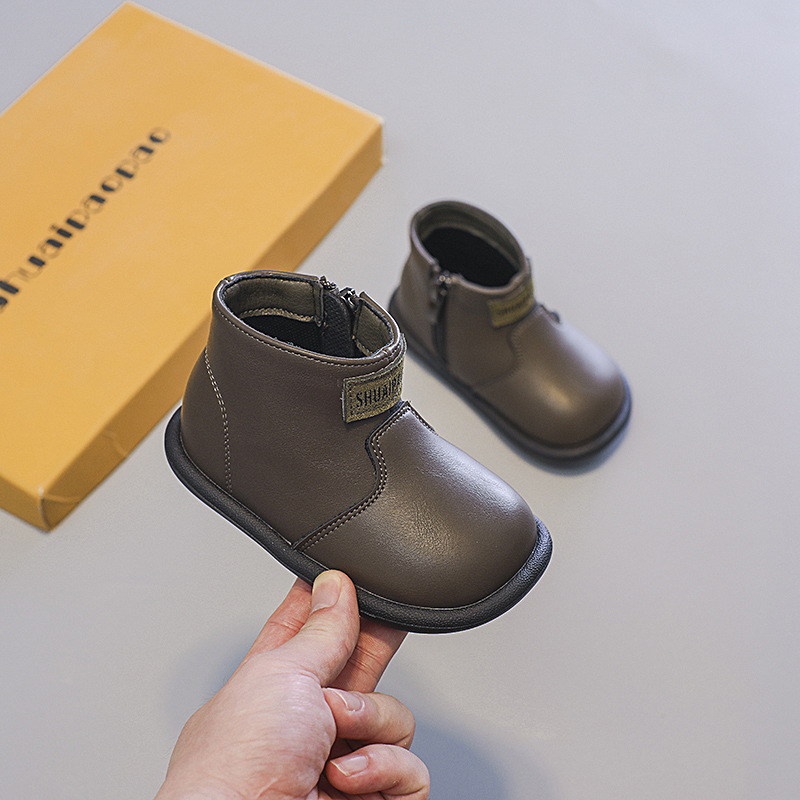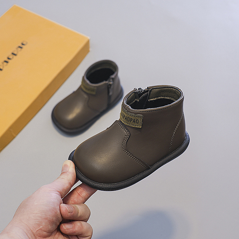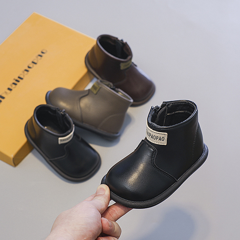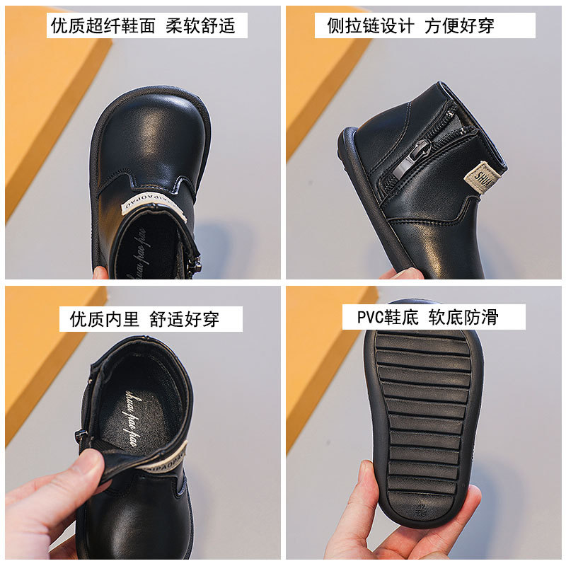 영국 스타일 어린이 캐주얼 간단한 사이드 지퍼 작은 가죽 부츠 새로운 스타일 소년과 소녀 경량 편안한 소프트 하단 올 매치 싱글 핀 부츠
